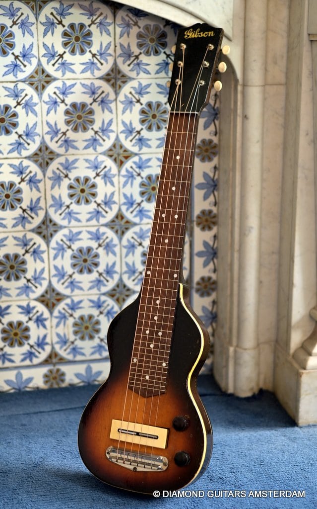 Pretty Gibson EH-100 Lap Steel guitar with the praised Bar pickup with cream plastic bobbin. Full functioning old lady delivering classic slide notes and much more.