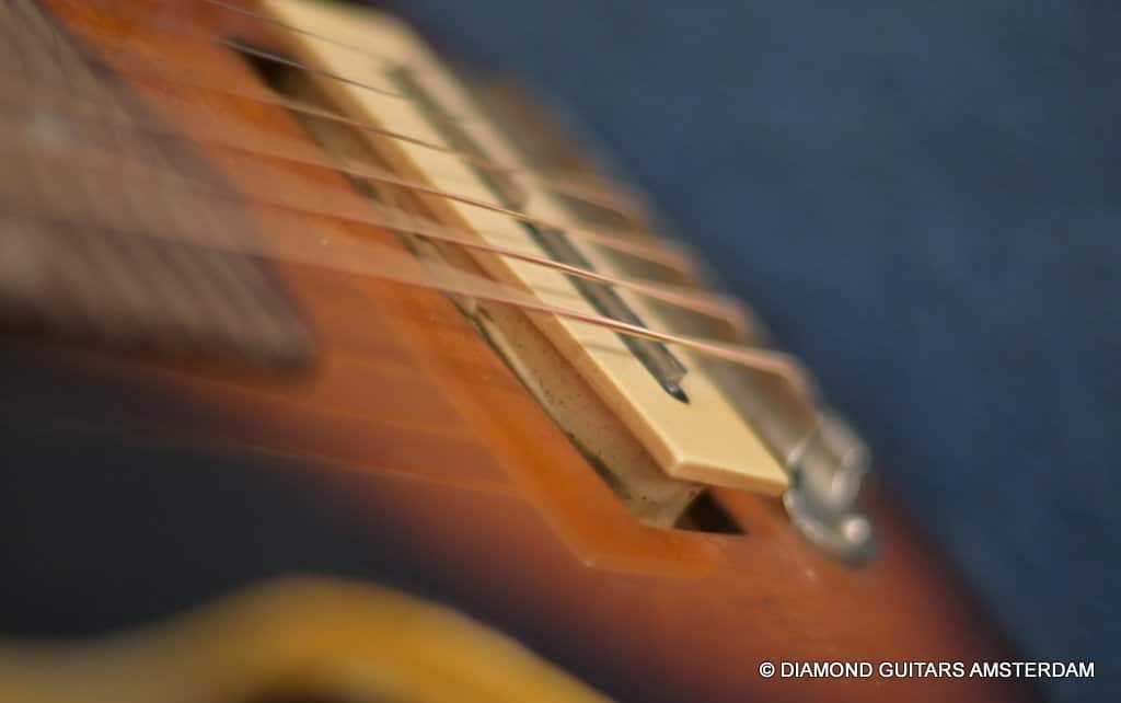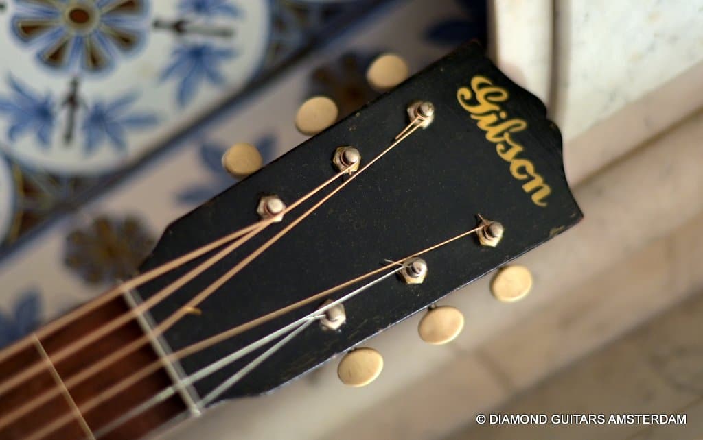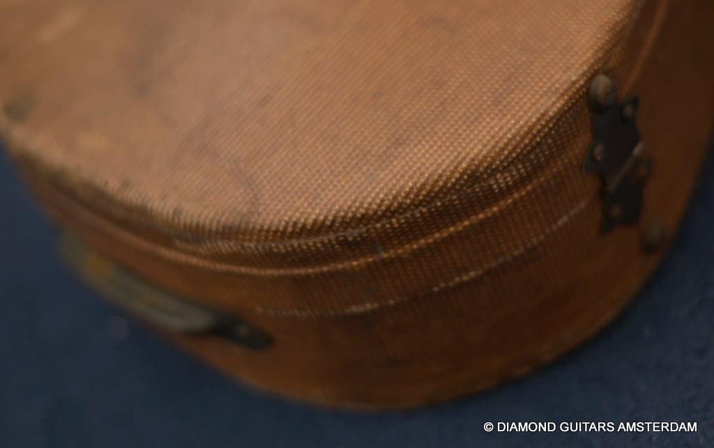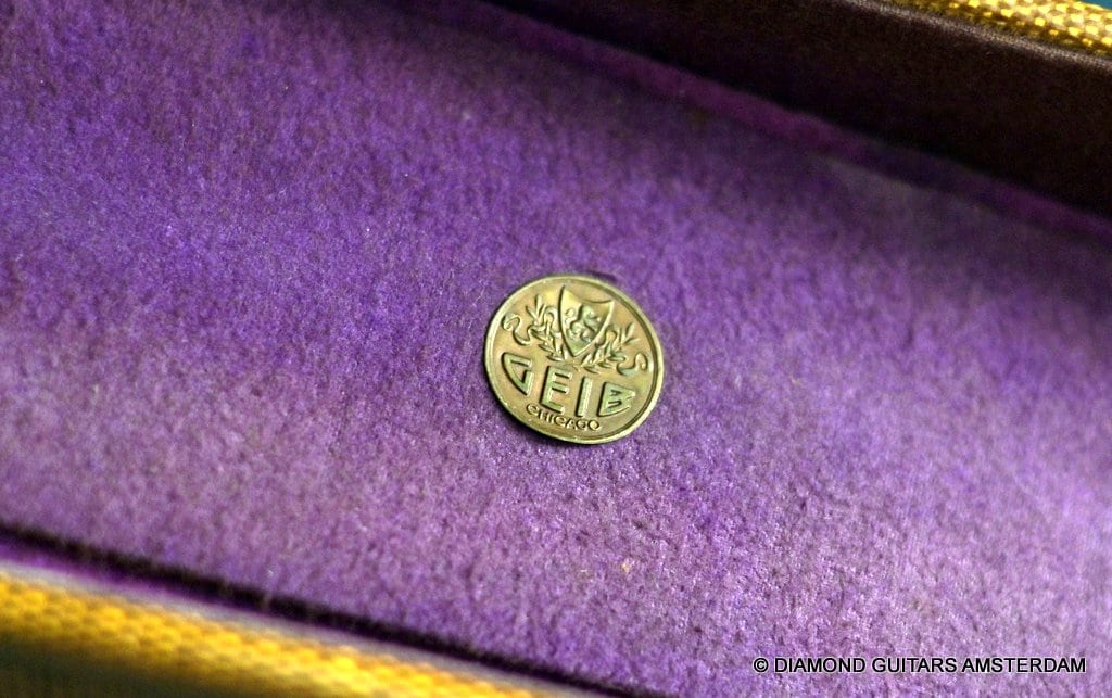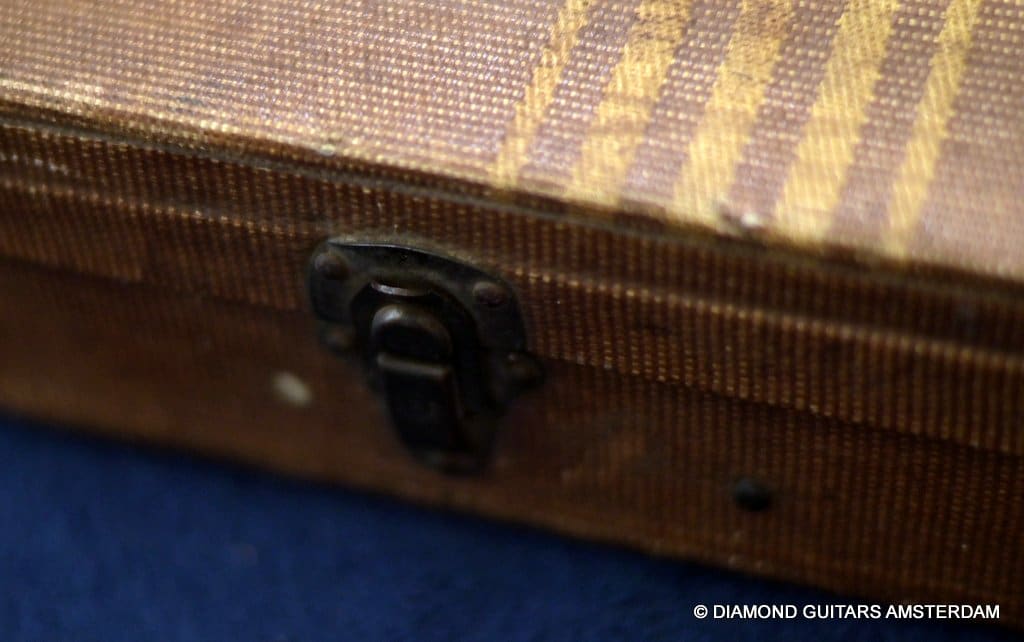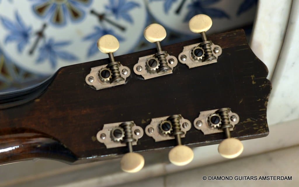 This sweet Gibson EH-100 Lap Steel Guitar or ‘Hawaiian’ guitar the first electric stringed instrument and hit the market just a few years before Les Paul and Charlie Christian modified their instruments. Gibson stated that this Lap Steel ‘had the quality and tone that players have dreamed about, but have never been able to find in an electric guitar before’, while highlighting ‘its great sustaining power’. The Gibson logo is cut-out of metal and mounted onto a solid cast piece. Original Grove open back tuners work great. More info on Gibson Lap Steels HERE