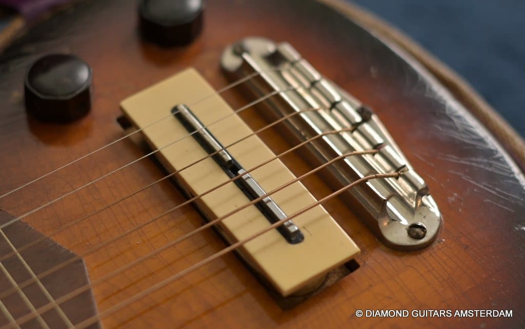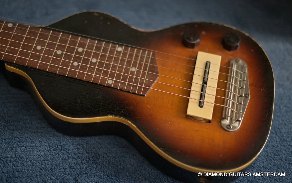 The earliest documented performance with an electrically amplified guitar was in 1932, by Gage Brewer. The Lap Steel, Dobro and Pedal Steel guitar are associated most closely with Hawaiian music, country music and bluegrass, though some players have used them in rock music, jazz, blues, and other musical genres. Go check out John Paul Jones HERE, and Davil Gilmoure HERE. And be sure not to miss the phenomenal LAPSTEELATOR. Back in the days the original retail price was…100 USD. She shows lots of marks that tell stories of her travels. One would say aged to perfection. Here technical condition is great and she sound sweet.