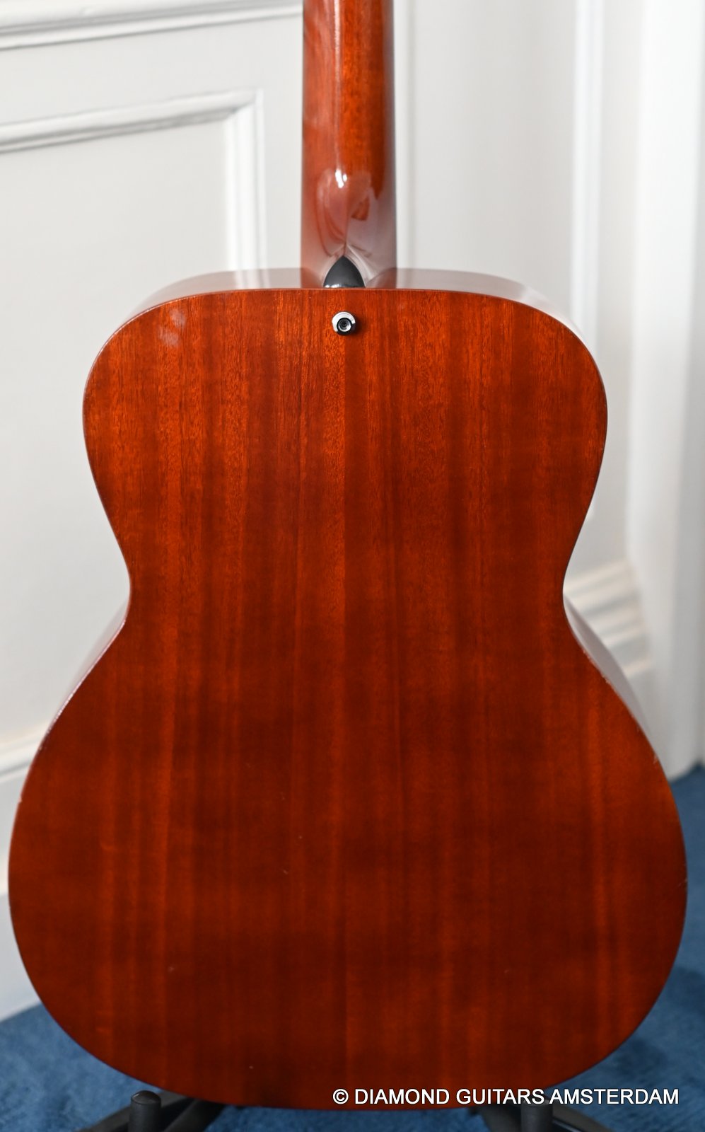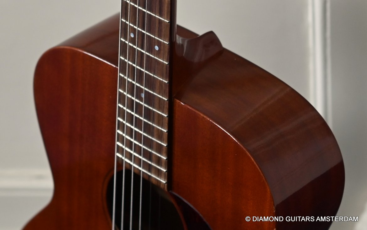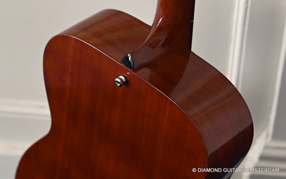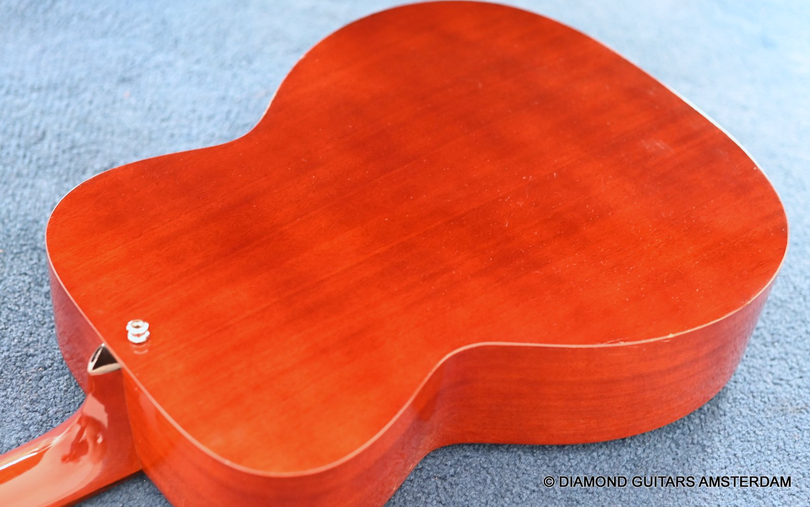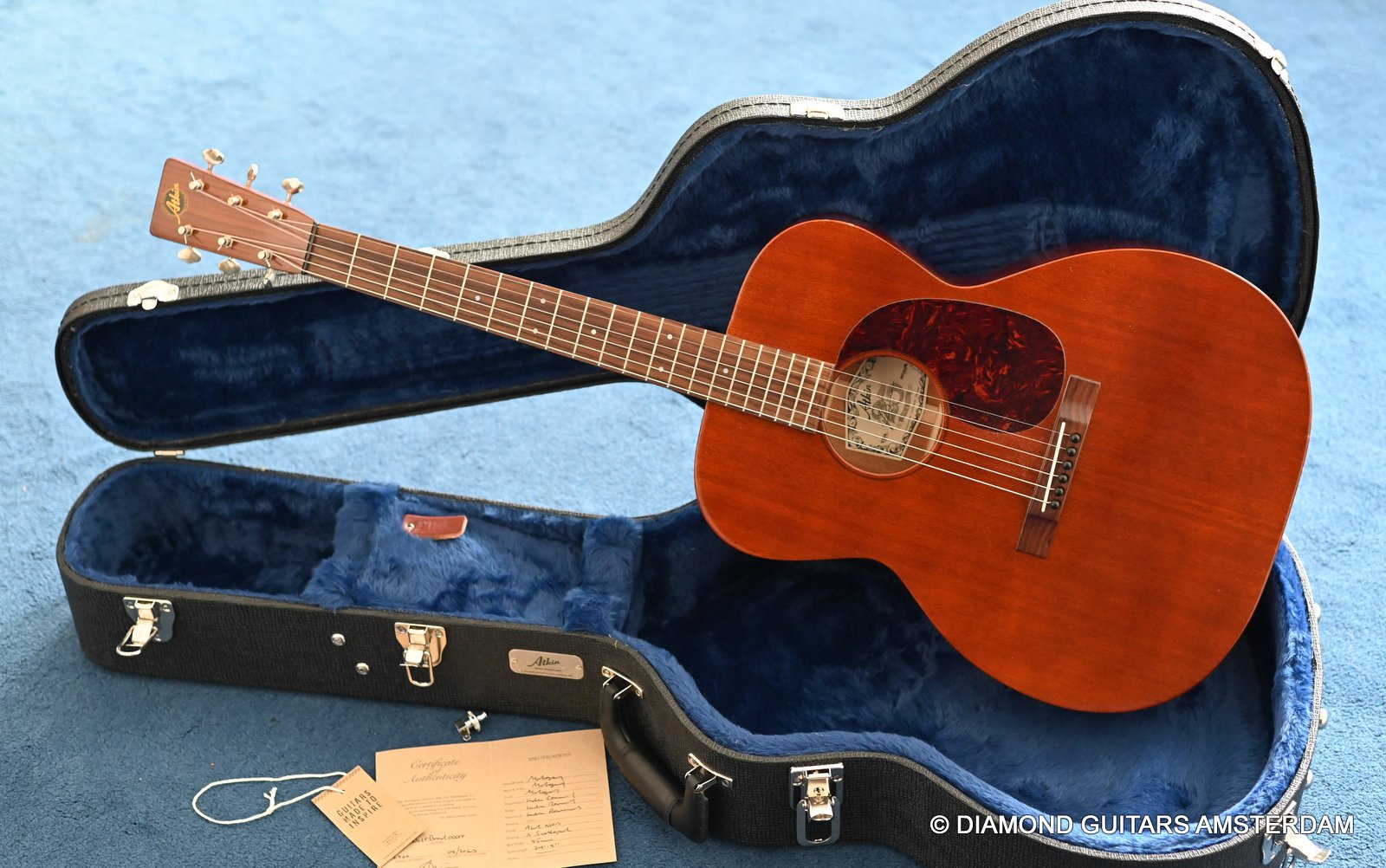 Alastair Atkin takes ‘vintage-inspired’ to the next level. The main inspiration for these guitars are the lightweight, characterful depression-era guitars of the 1930s – names such as Kalamazoo, Recording King, Cromwell, and Kel Kroyden will spring to mind for fans of such instruments. She is build with solid Mahogany with a lightweight scalloped bracing, giving the player a full, rich and dry voice that embodies those ever sought-after pre-war tones. Atkin’s OOO-14 is a classic embodiment of the ideas at play with a triple-O: small enough to be comfortable and articulate enough for finger-picking, yet big enough to deliver the projection and low end required for a well-rounded overall sound; especially important for strummed passages. A classic, vintage-inspired all-rounder. This guitar is in excellent condition.