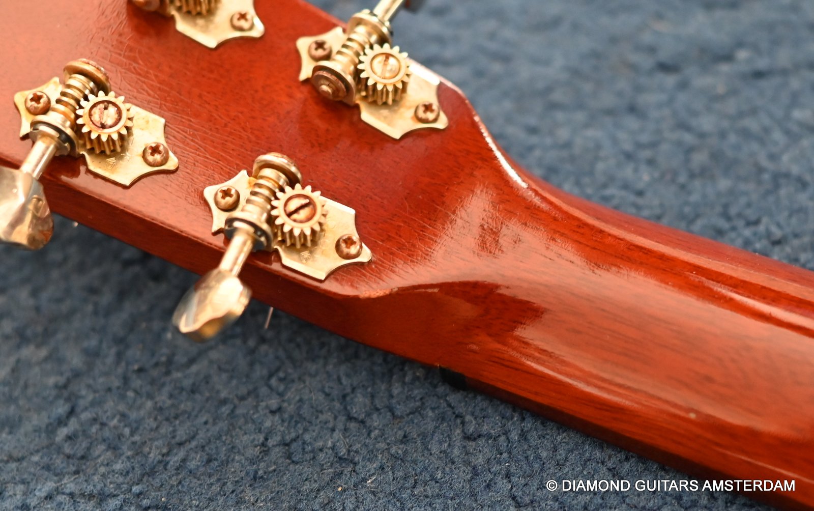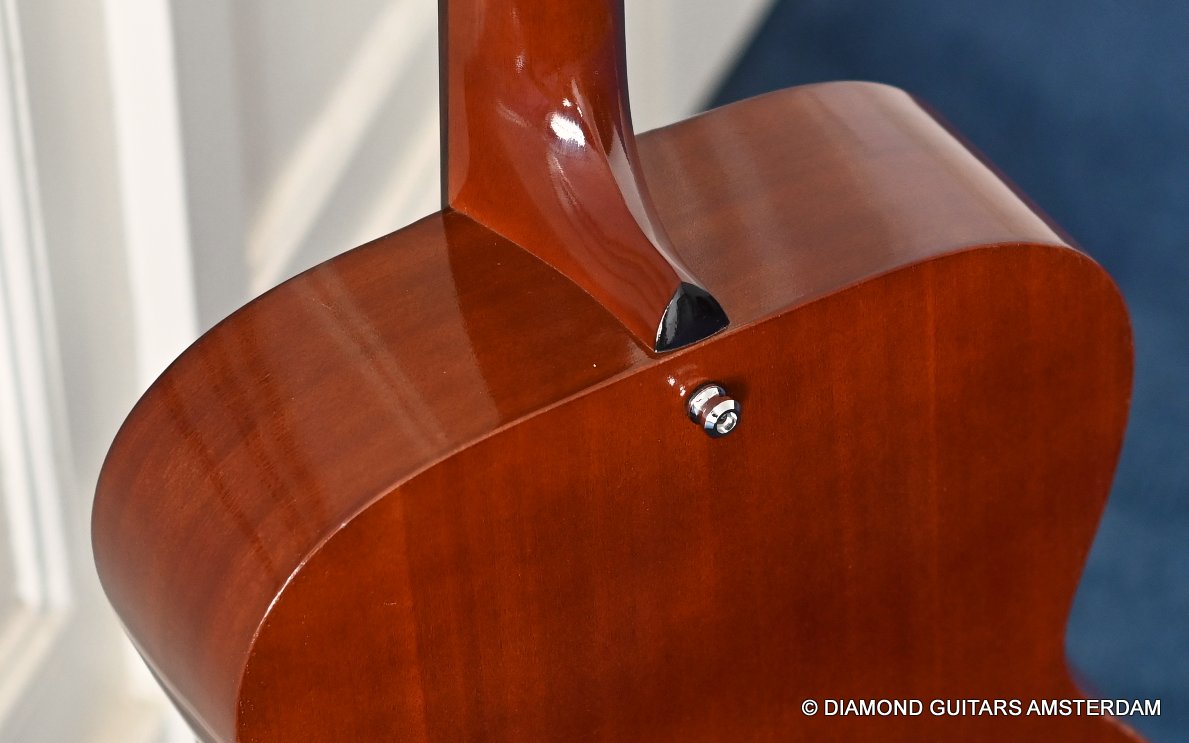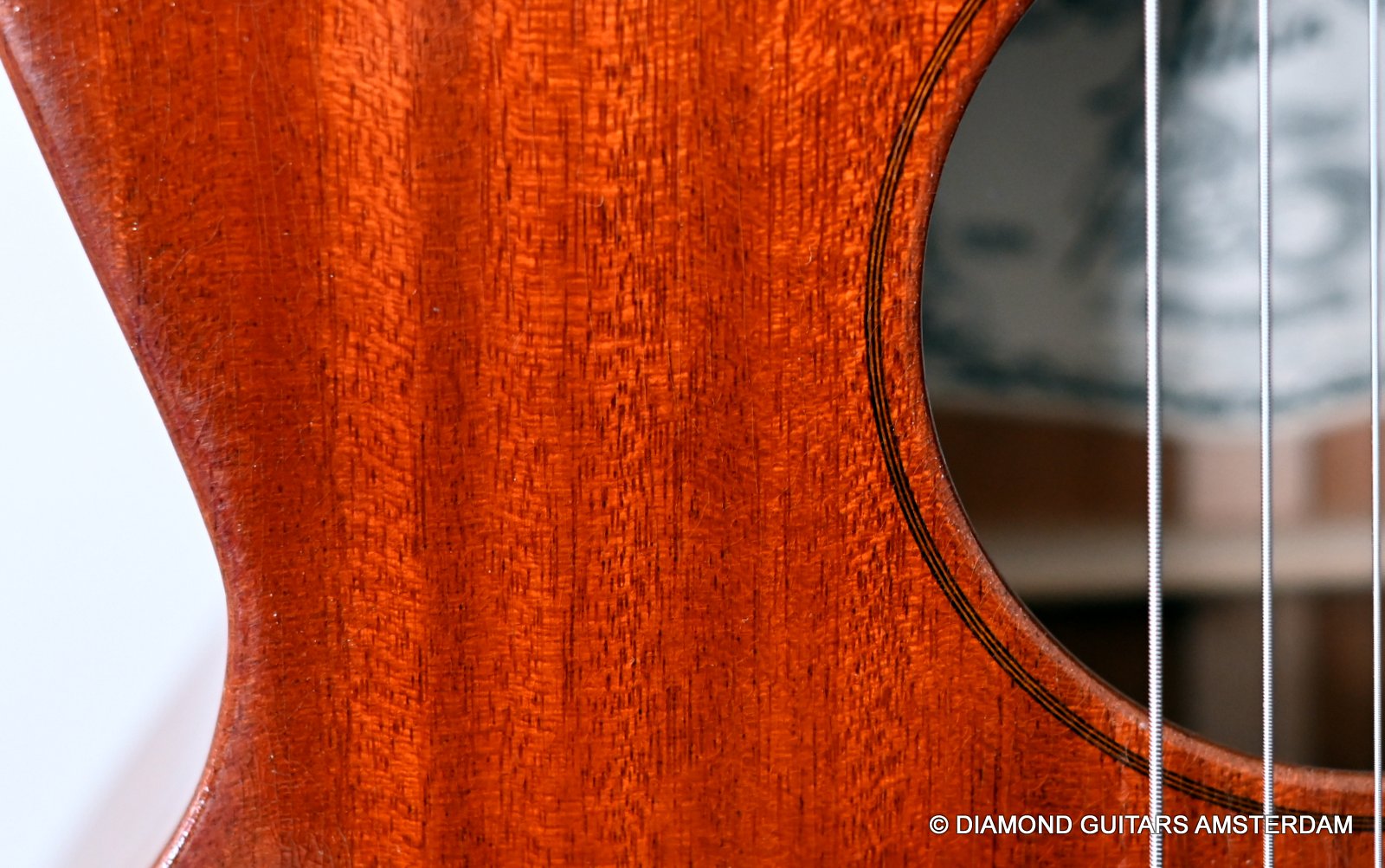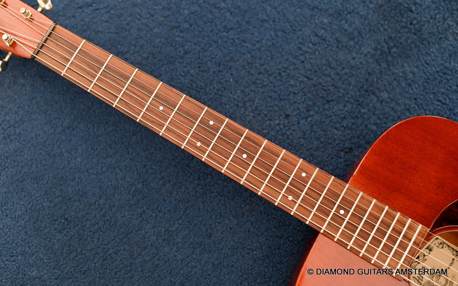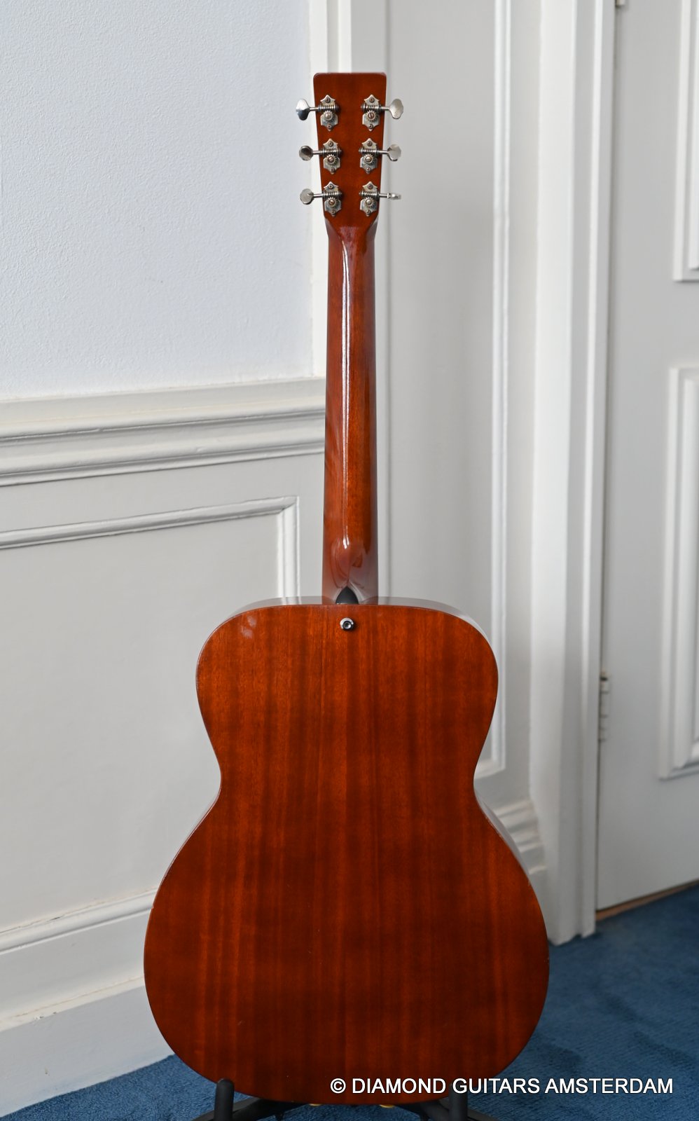 Alastair Atkin takes ‘vintage-inspired’ to the next level. The main inspiration for these guitars are the lightweight, characterful depression-era guitars of the 1930s – names such as Kalamazoo, Recording King, Cromwell, and Kel Kroyden will spring to mind for fans of such instruments. She is build with solid Mahogany with a lightweight scalloped bracing, giving the player a full, rich and dry voice that embodies those ever sought-after pre-war tones. Atkin’s OOO-14 is a classic embodiment of the ideas at play with a triple-O: small enough to be comfortable and articulate enough for finger-picking, yet big enough to deliver the projection and low end required for a well-rounded overall sound; especially important for strummed passages. A classic, vintage-inspired all-rounder. This guitar is in excellent condition.