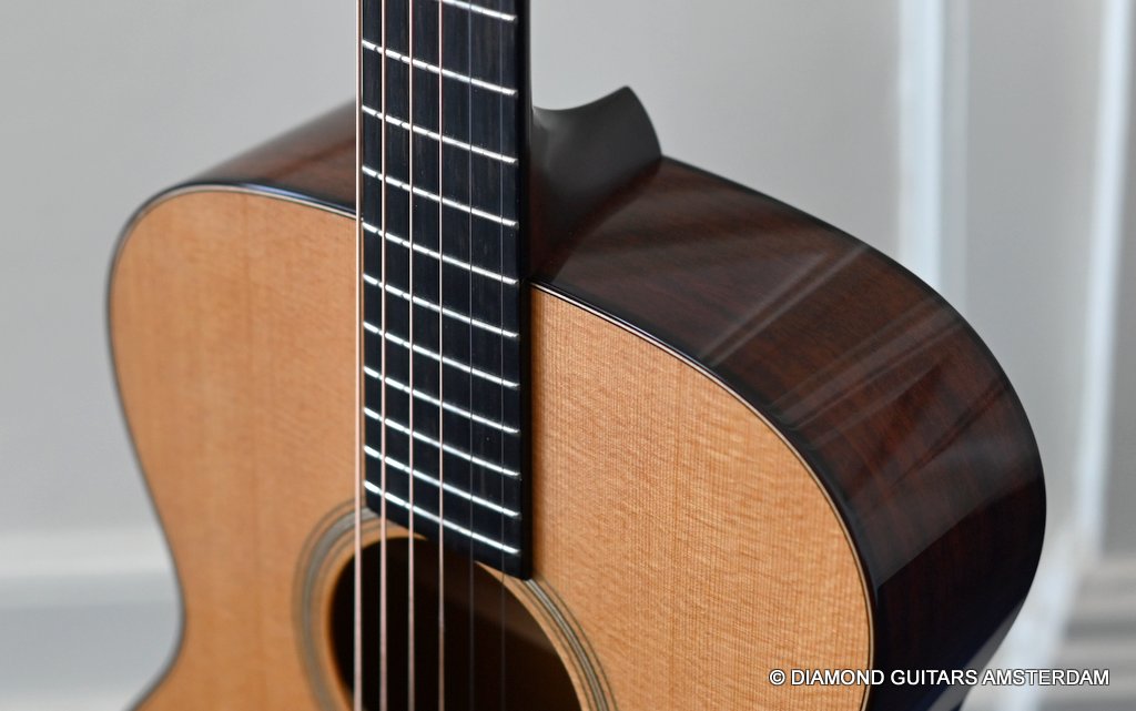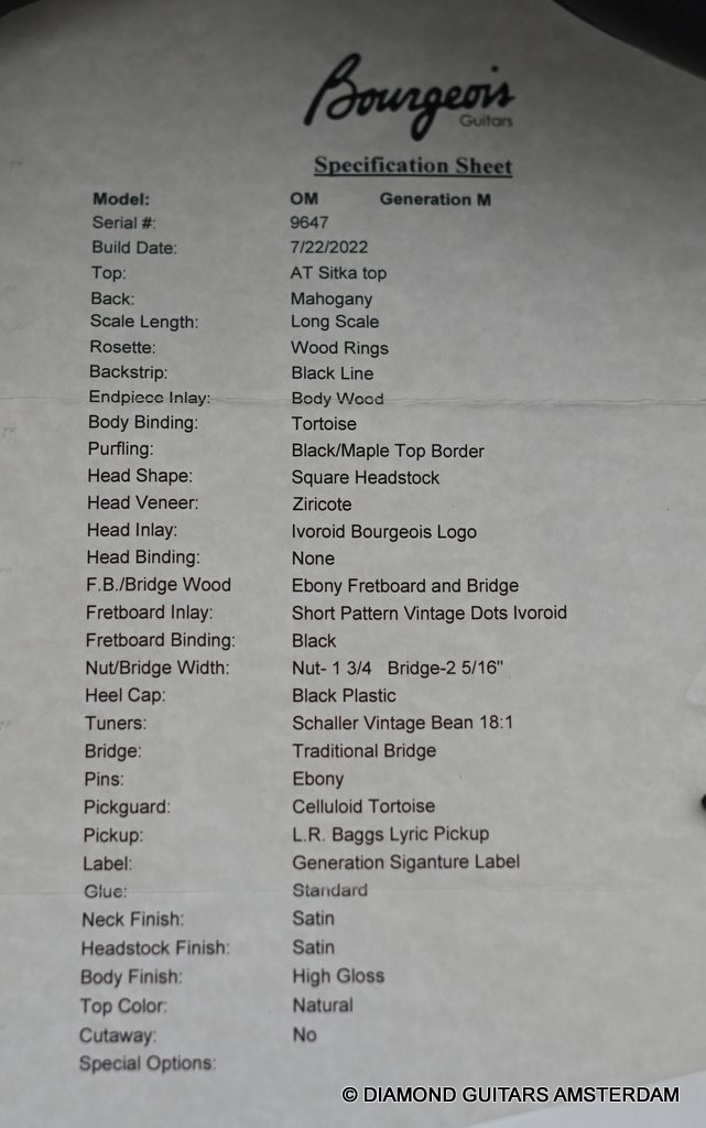 While the specs for this Bourgeois OM Generation/M is fairly standard across the board, you are getting a top-tier guitar. As part of the Professional Series, the Generation models came equipped with a premium aged-tone Sitka Spruce top, Honduran Mahogany back and sides and Schaller tuning machines. The decorative volute was deleted to save cost. The Professional series started at 4,849 USD in 2021 which was quite lower than the Heirloom series which started at 5.649.