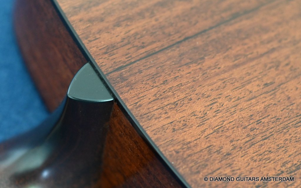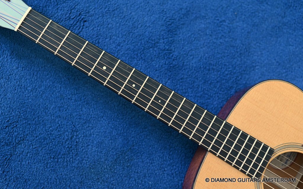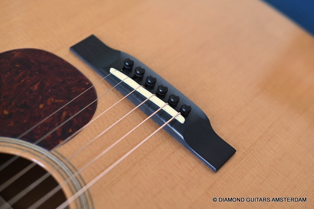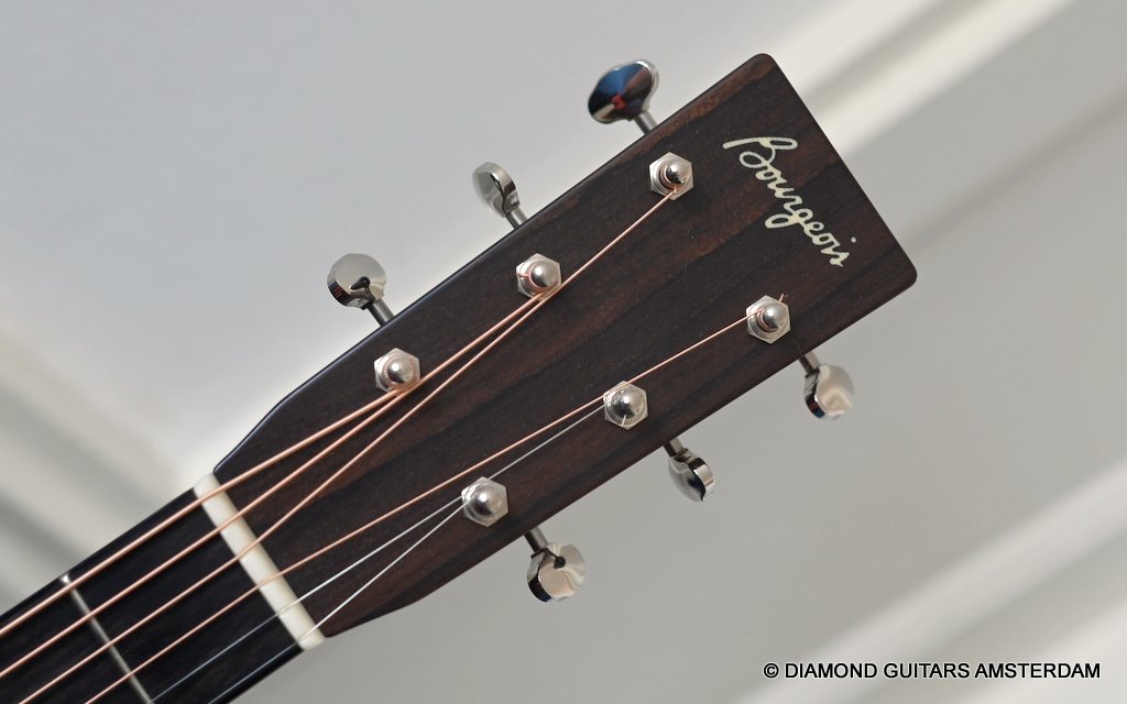 You will, however, still find an Ebony bridge and fingerboard common to Dana’s guitars. The back braces have been redesigned, so they are narrower and taller, which allows the back a little more freedom to move. This is are also the first Bourgeois acoustics to have a nice satin finish, as opposed to the fully buffed out shiny guitars Bourgeois fans are used to. This produces a softer, more natural look that also helps keep the cost lower since fewer man-hours are spent finishing the guitar to a perfect sheen. Listen to Dana explain the idea behind this concept HERE.