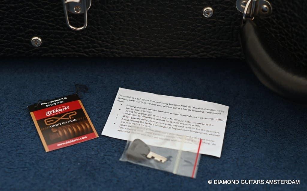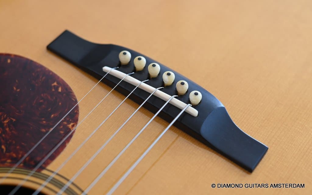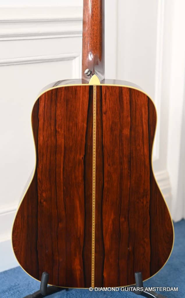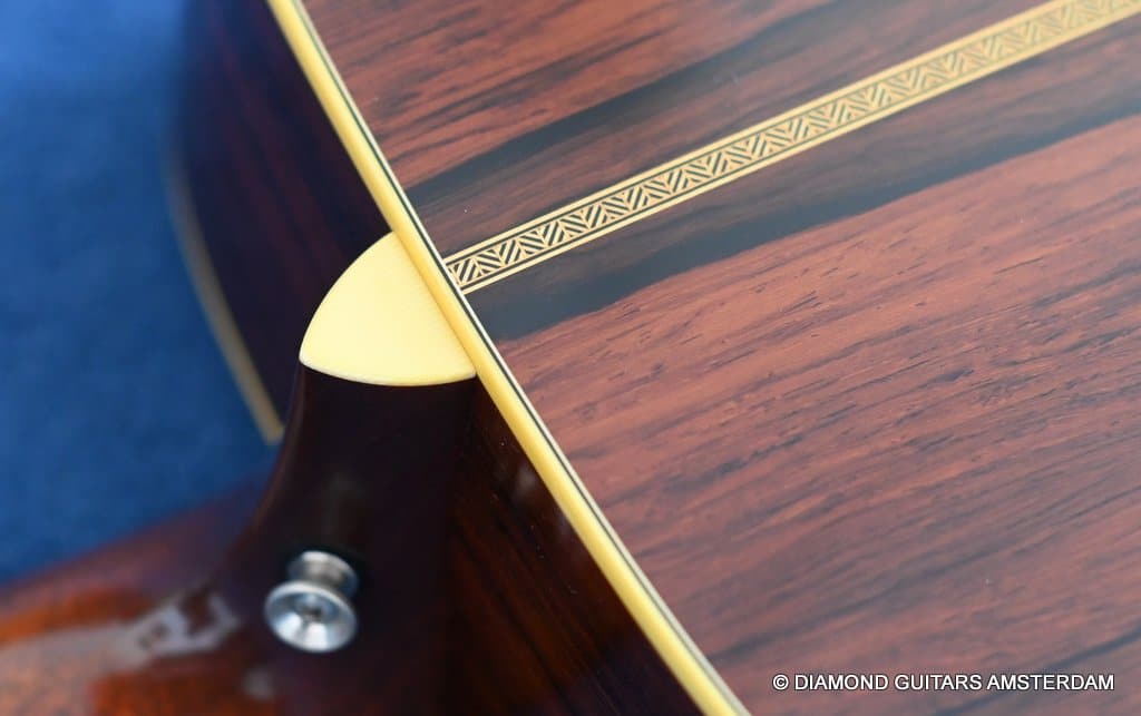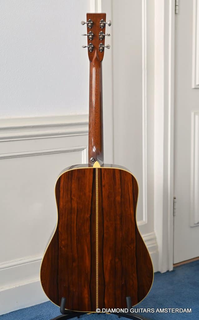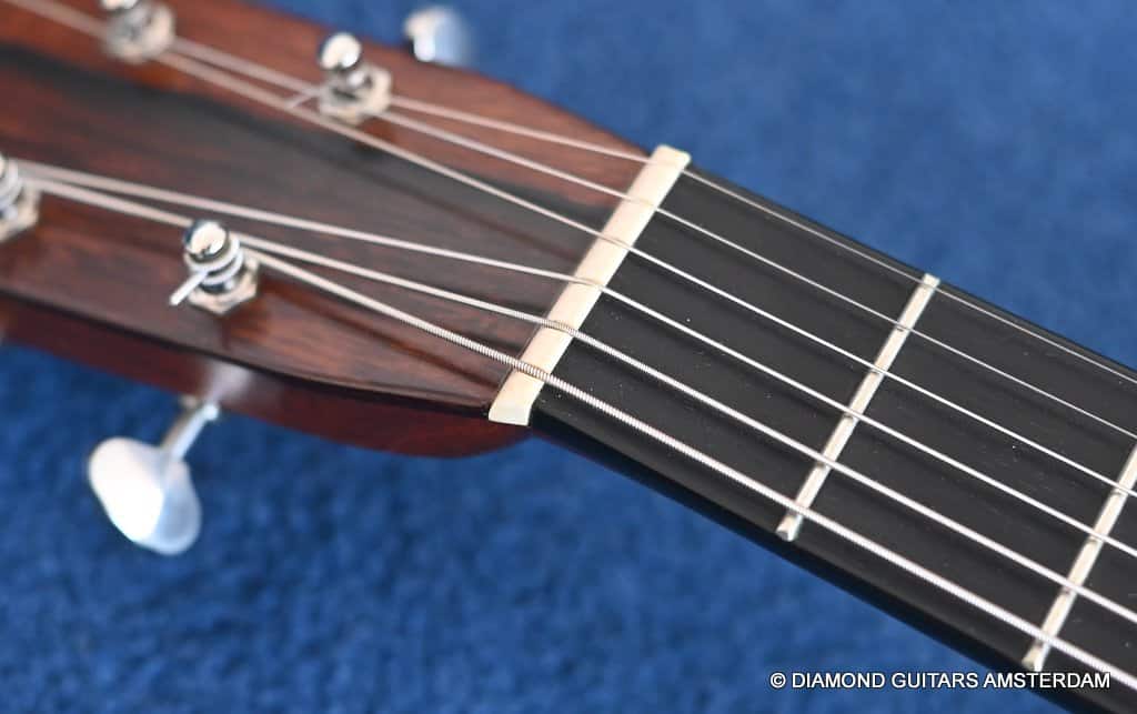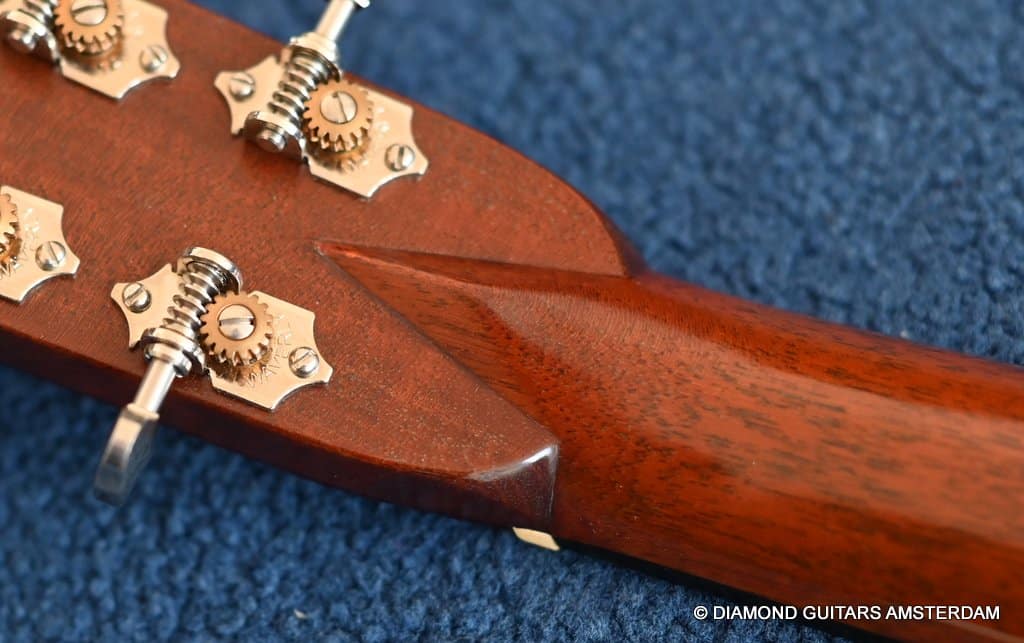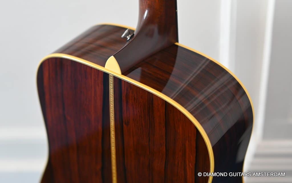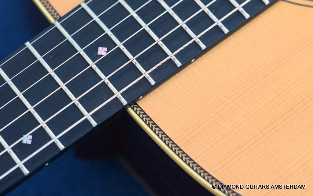Playing this guitar is like picking on a pre-war D-28. It’s a fantastic reproduction of that classic dreadnought everyone is looking for. One welcome difference is the bolt-on neck which means no expensive neck resets down the road. This guitar is in excellent condition, with no dings or scratchers. Only some minor fret wear. This only two-owner guitar has been very well looked after. Listen to a sound sample here: