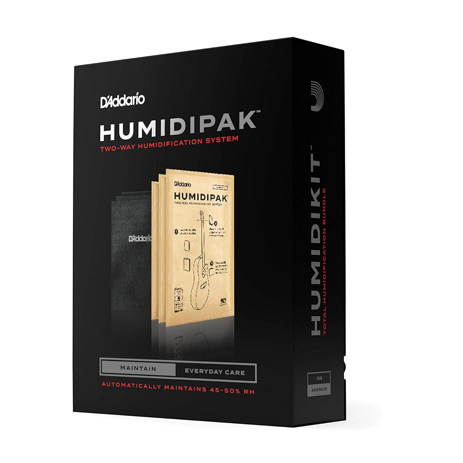 The D’Addario PW-HPK-01 Humidipak is the only maintenance free, two-way humidity control system for guitar. It automatically maintains the optimal 45-50% relative humidity level within your instrument case, eliminating the guesswork and potential mess related to refilling a humidifier. Unlike refillable humidifiers, the Humidipak system provides true “two-way” purified humidity control by adding and removing moisture on demand. No more manual adjustments based on seasonal changes, geographic locations, temperature, or other factors. The Humidipak Kit comes with 3 Humidipaks and a soft mesh pouch that will not harm your instrument’s finish. Humidipaks last between 2 and 6 months and should always be kept in a sealed environment like a hard-shell case. Once the Humidipaks become firm, discard, and replace using the 3 refills that come in the Humidipak Replacement Pack (PW-HPRP-03).