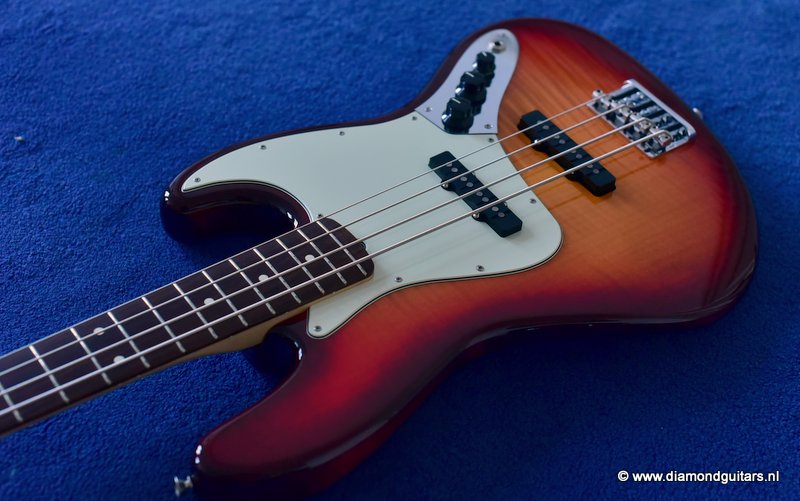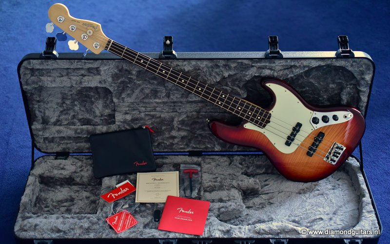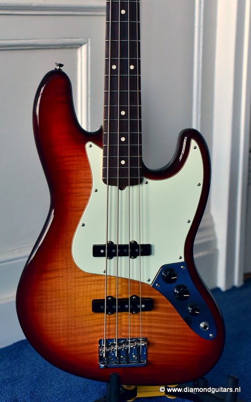 This is a super cool Fender Jazz Bass American Professional Limited Edition FMT. She combines the features of the Professional model with a figured Maple top. Only 300 of these were build.