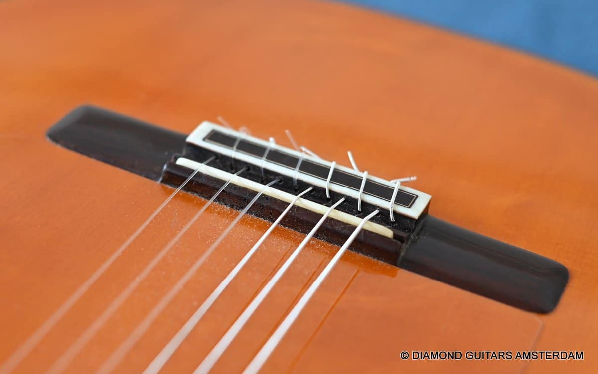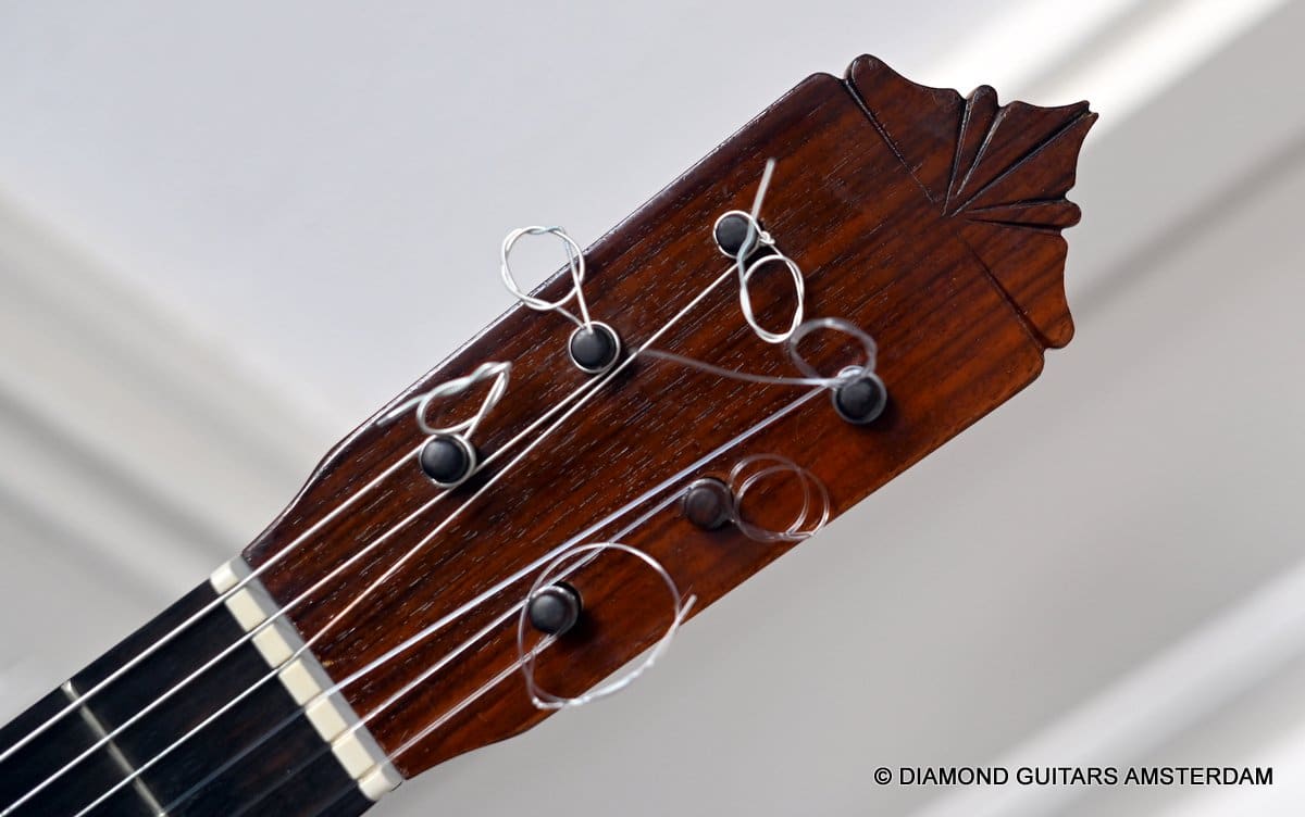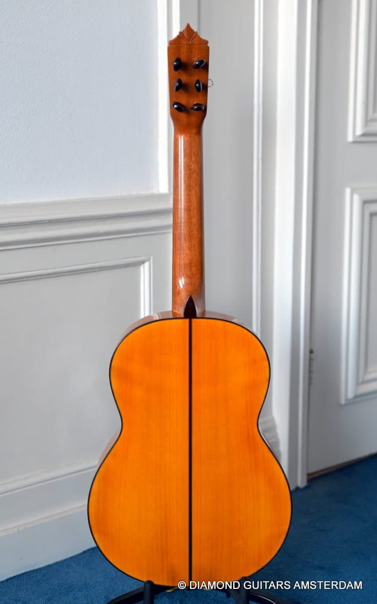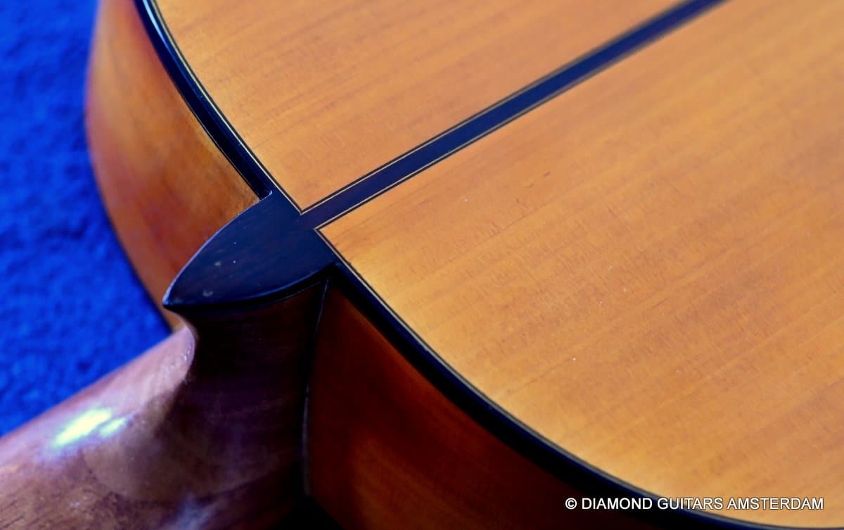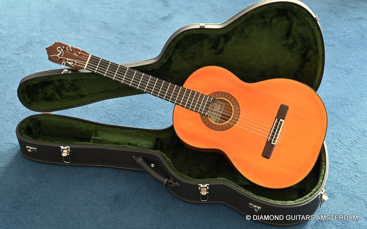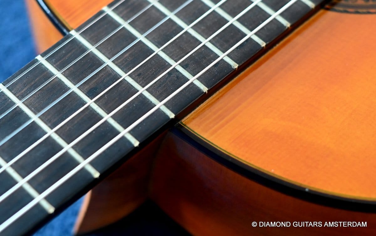 The woods used in this guitar are of an extraordinary quality. The top is mastergrade German Spruce and the back and sides are made of beautiful Cypress. A classic recipe in the best flamenco tradition. Gerundino Hijo succeeded in making a voluminous and dynamic flamenco guitar. This guitar stands out due to its extreme lightness (only 1.2 kg – 2.69lb) and its flamenco timbre. She is the perfect guitar to accompany the singing and dancing. The condition is excellent and original, without any cracks or repairs whatsoever. Current retail price is 4.800 Euro. Listen to a sound sample of the Gerundino Hijo played by Alberto Fernández Romàn