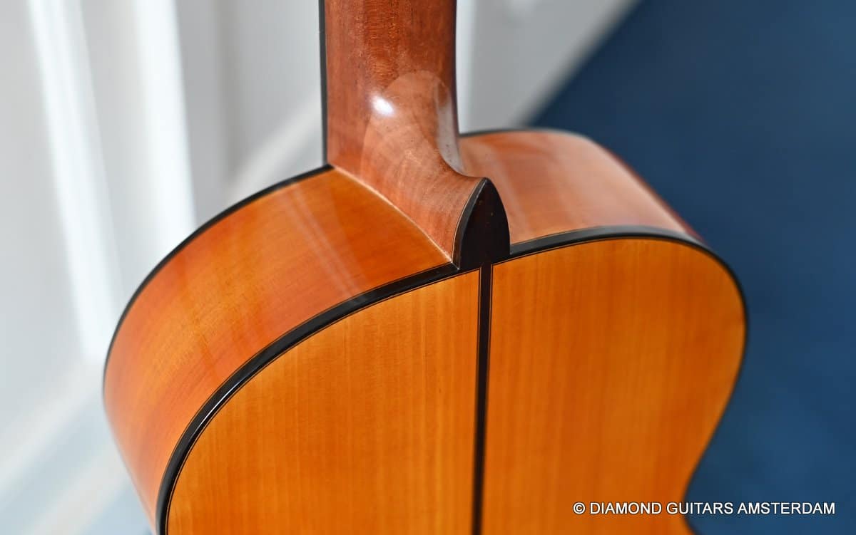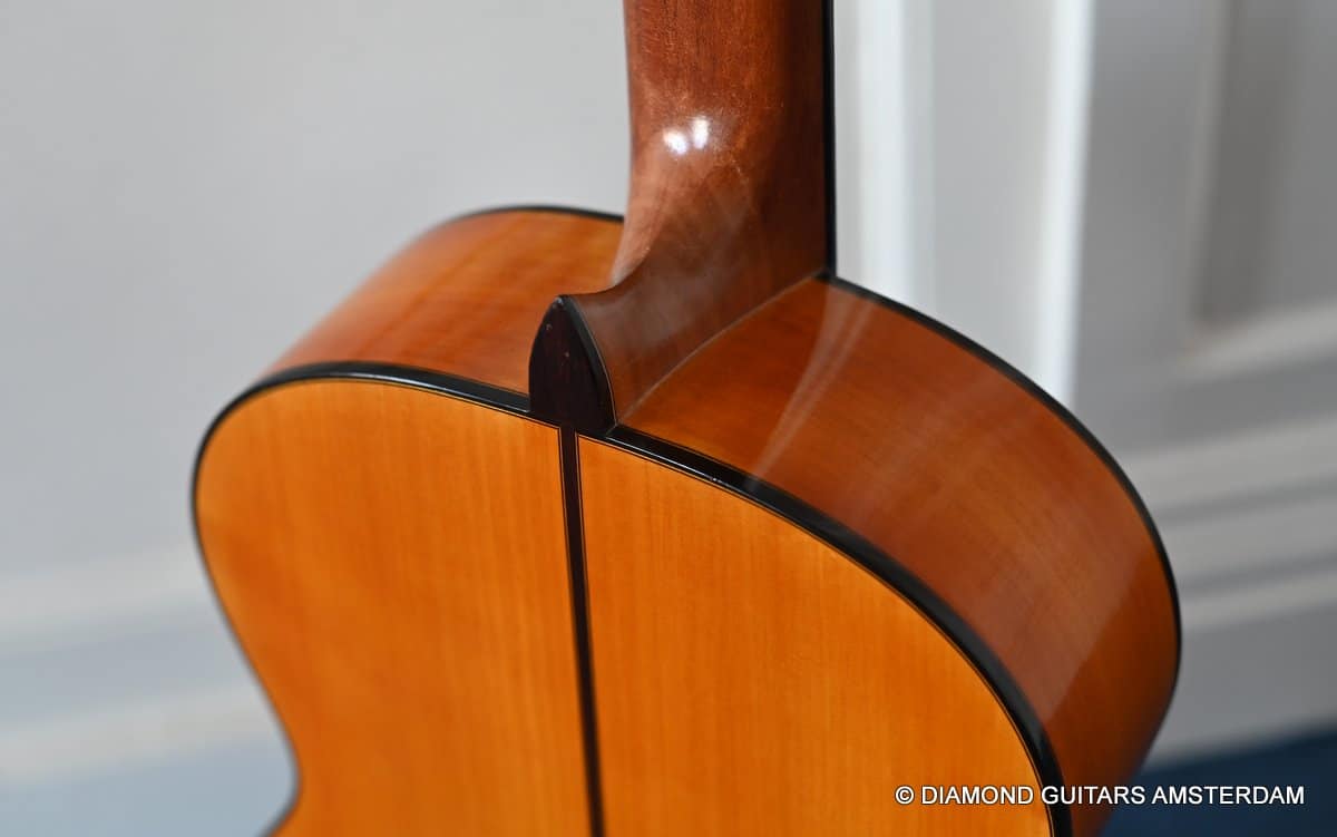 This 2015 Gerundino Hijo Blanca was build by luthier Gerundino Fernández Llamas, son of the great maker Gerundino Fernández. Born in 1974 in Almería, he started helping his father with guitar making since he was really young. He helped with tasks such as sanding woods, put pawns, glue bottoms and tops. He also knows his woods as he was educated by his uncle Eladio Fernández in spotting, cutting and selecting the best woods for his father’s guitars. As a luthier he continues the family tradition, using the techniques, tools and woods inherited from his father.