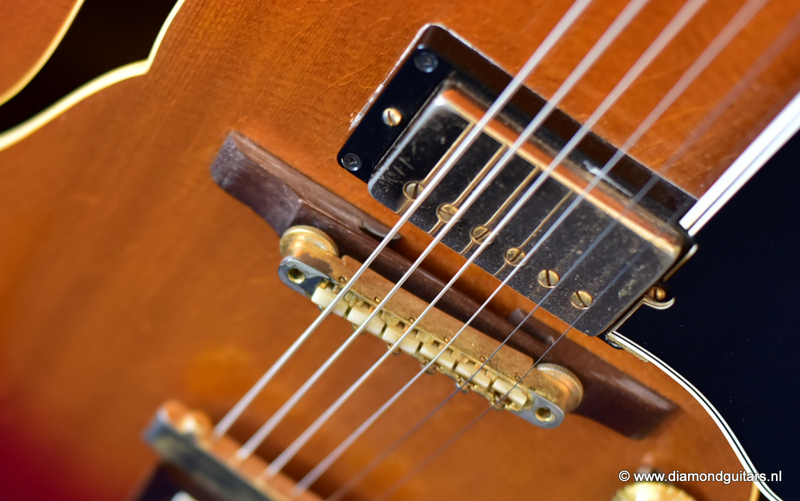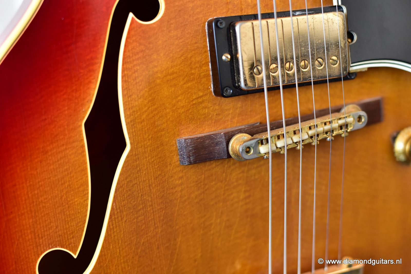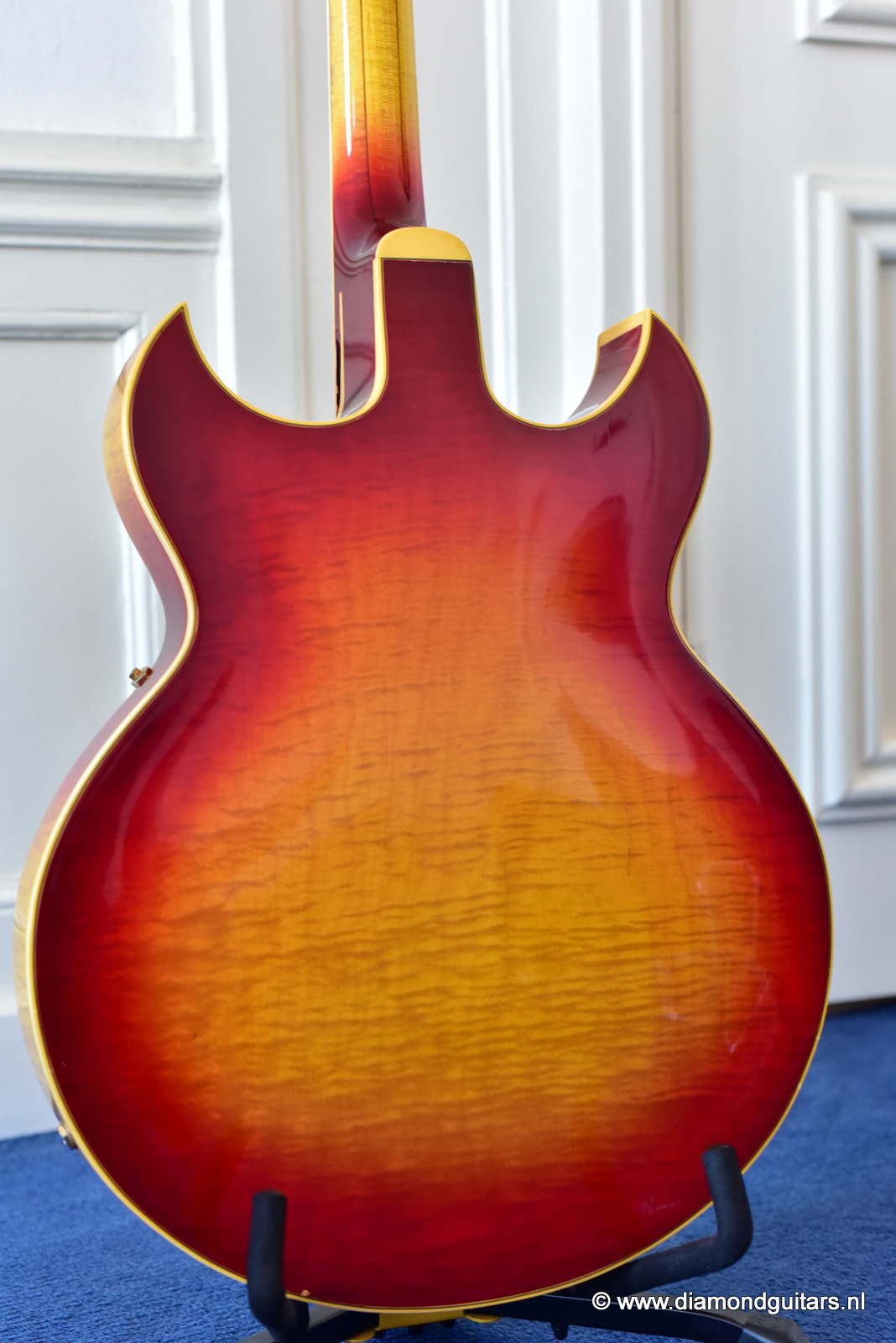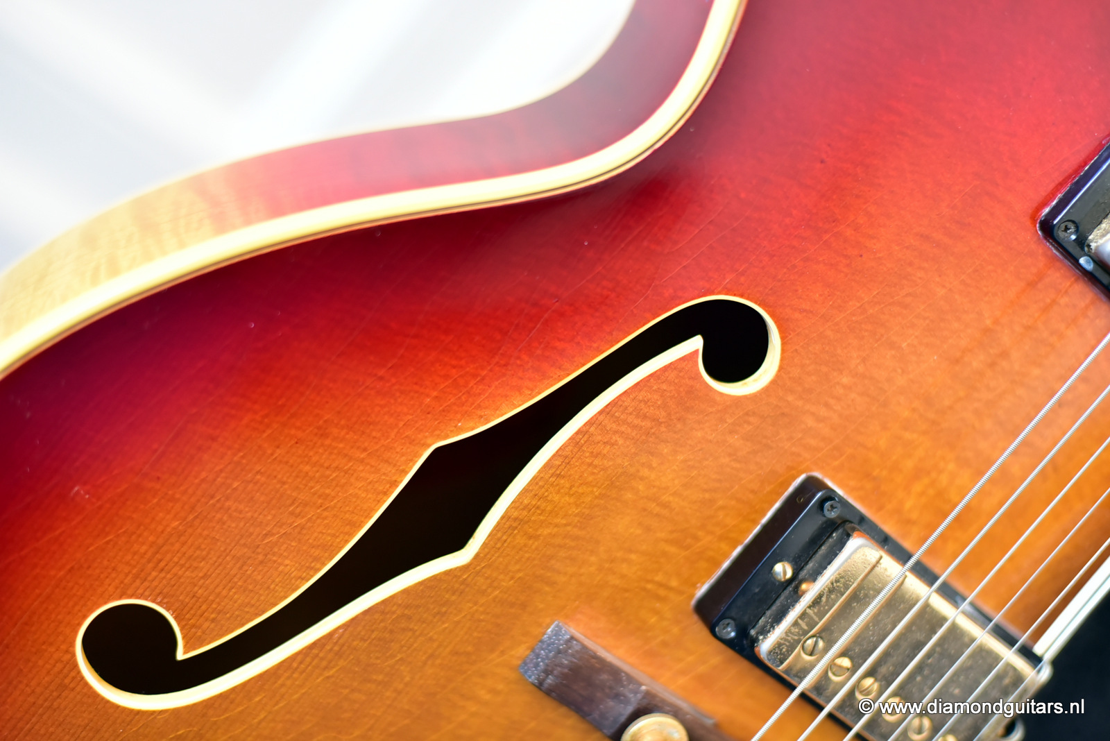 Former owners have treated her very good. The Cherry Sunburst finish is preserved well. She is in excelent condition for an 50 year old lady. This fretboard has been re-fretted and serviced by master luthier Peter De Smed (www.pdsguitars.nl). Excellent and very smooth playability and good for another 50 years of dedicated service. Electronics are good and the sound is…awesome! Only 740 of these guitars were built until 1973.