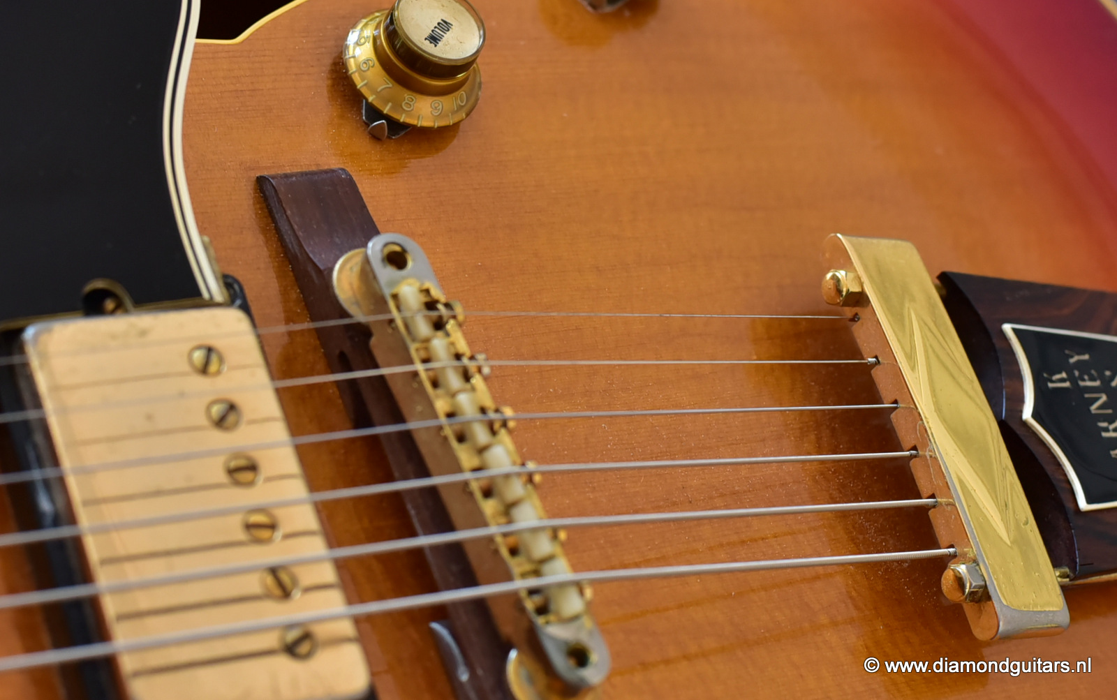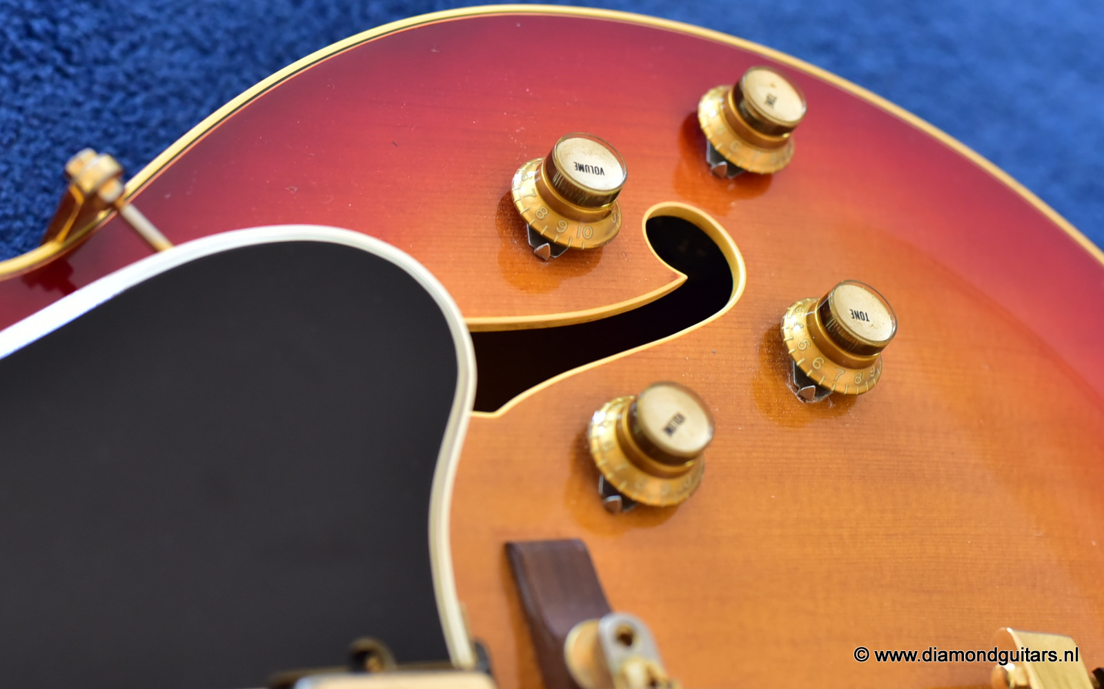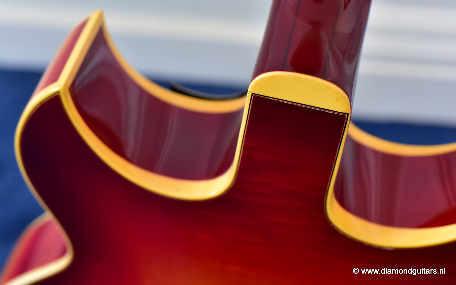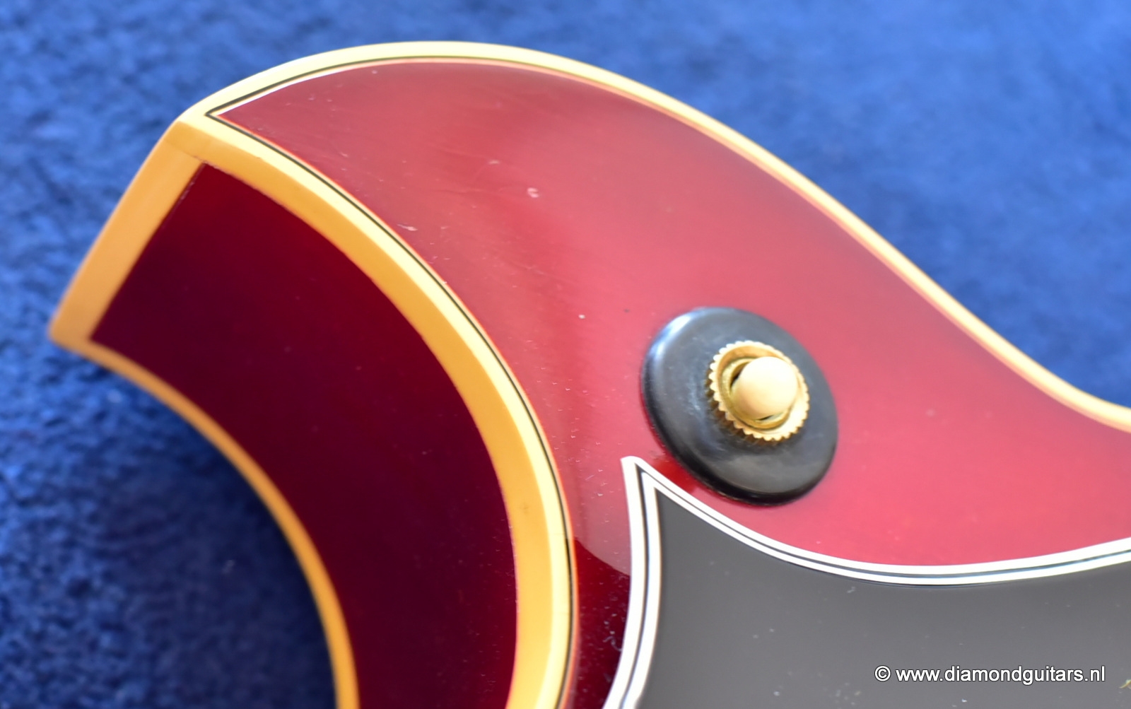 Former owners have treated her very good. The Cherry Sunburst finish is preserved well. She is in excelent condition for an 50 year old lady. This fretboard has been re-fretted and serviced by master luthier Peter De Smed (www.pdsguitars.nl). Excellent and very smooth playability and good for another 50 years of dedicated service. Electronics are good and the sound is…awesome! Only 740 of these guitars were built until 1973.