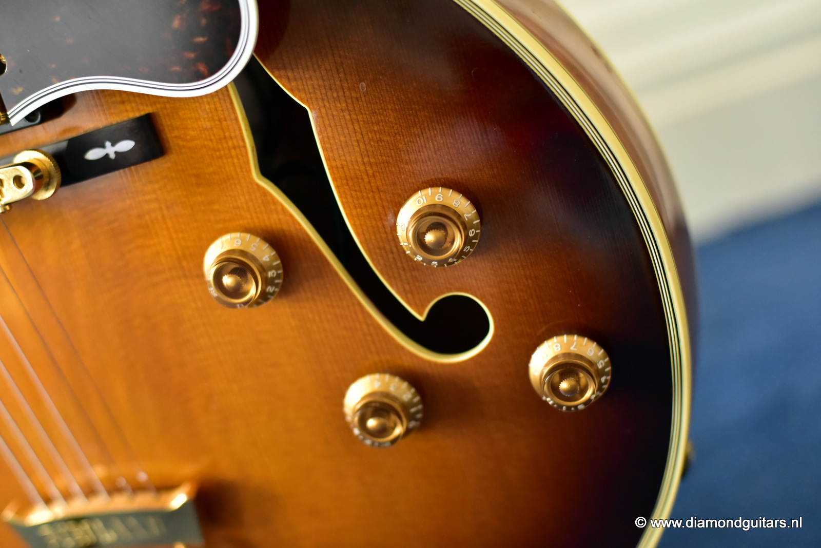 This Gibson Byrdland is pretty jazzer and a magnificent instrument for live performances and studio recording. Very nice and fat tones, check out the soundcloud demo. She is also in high excellent condition! Definately a rare find! The Byrdland is know for its short scale and and 22 frets to the body compared to most of the other big body’s that do with 20 frets. With its overall depth of 2¼-in – 57,3 mm, she is thinner than the L-5’s (3⅜” – 85.7 mm). Very comfortable to hold in any position.