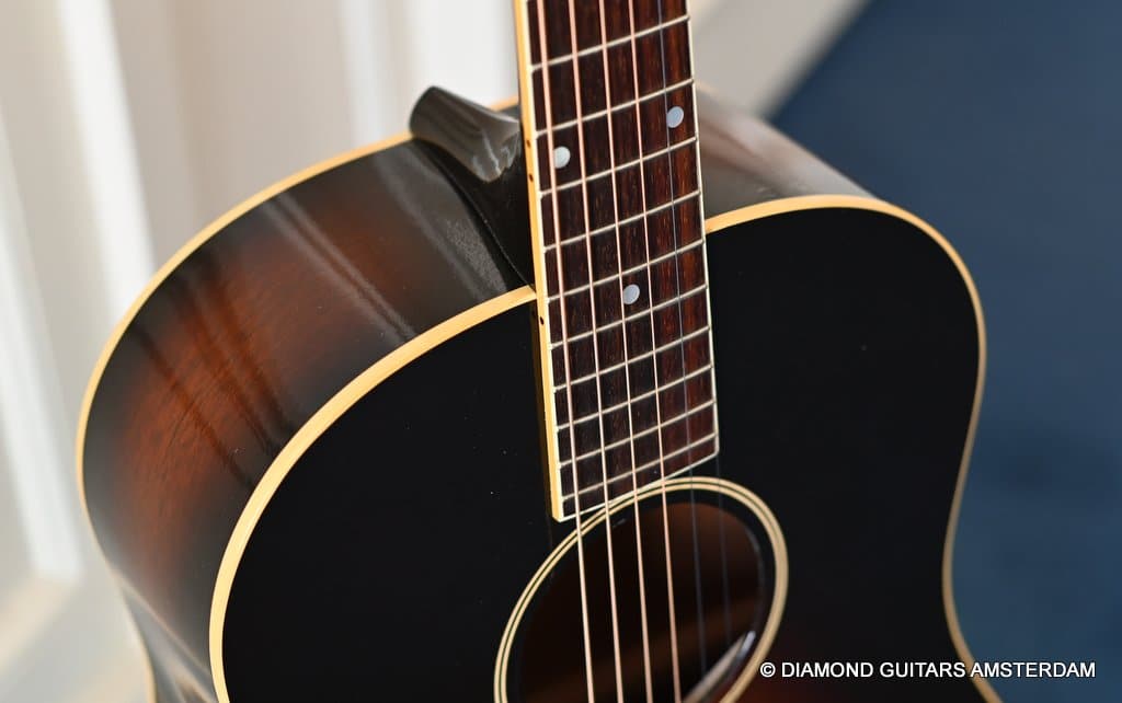 The Gibson Custom 1934 Jumbo is the guitar that started the legacy of Gibson Jumbo acoustics. When Gibson released the Jumbo in 1934, it was larger than any other guitar Gibson offered, and it made for a remarkable instrument. Only built for two production years, these rare instruments quickly became artist favorites and best represent the Gibson sound heard by world-renowned artists and collectors. Given the big body, it was a nice surprise how good she handles fingerstyle. And because of that body, she does really well handling heavy rhythm parts. This is a guitar that definitely will not get lost in the mix of a blue-grass or big loud country style performance