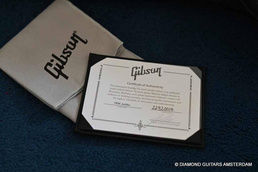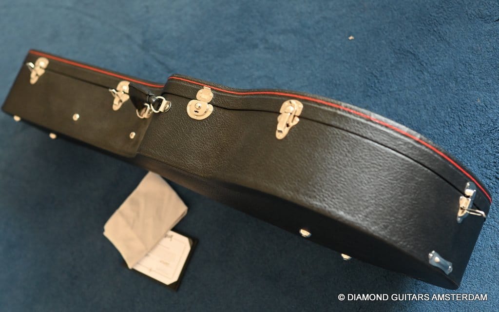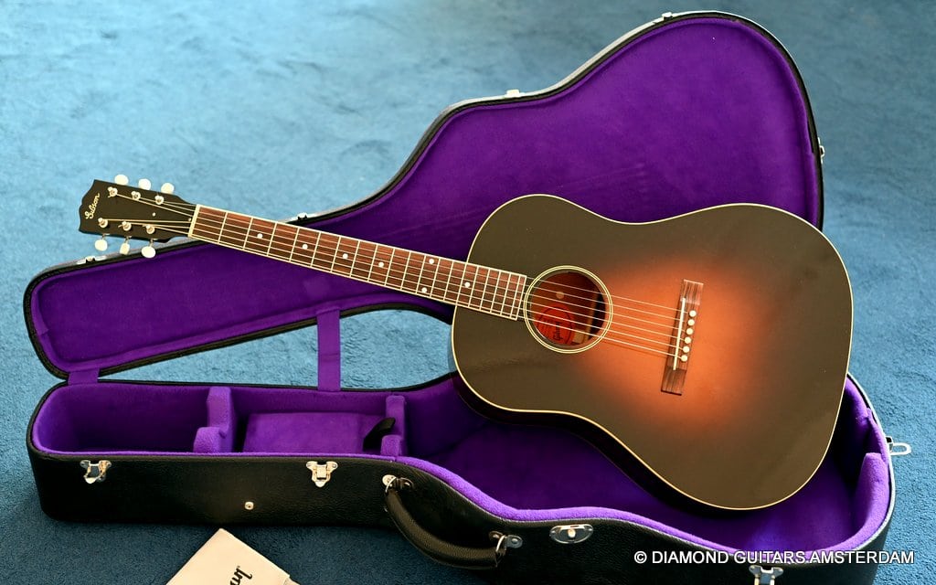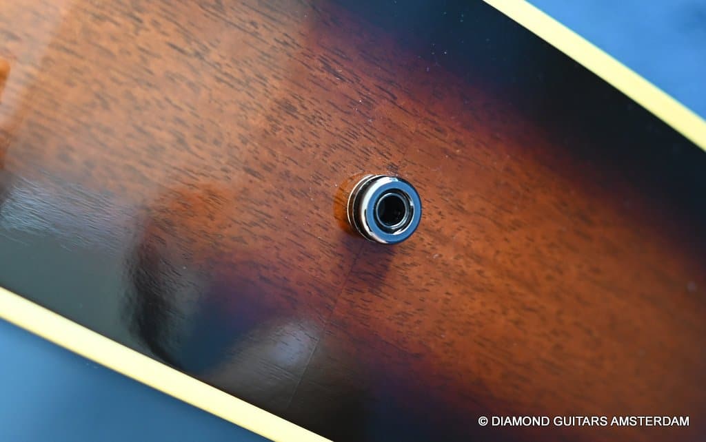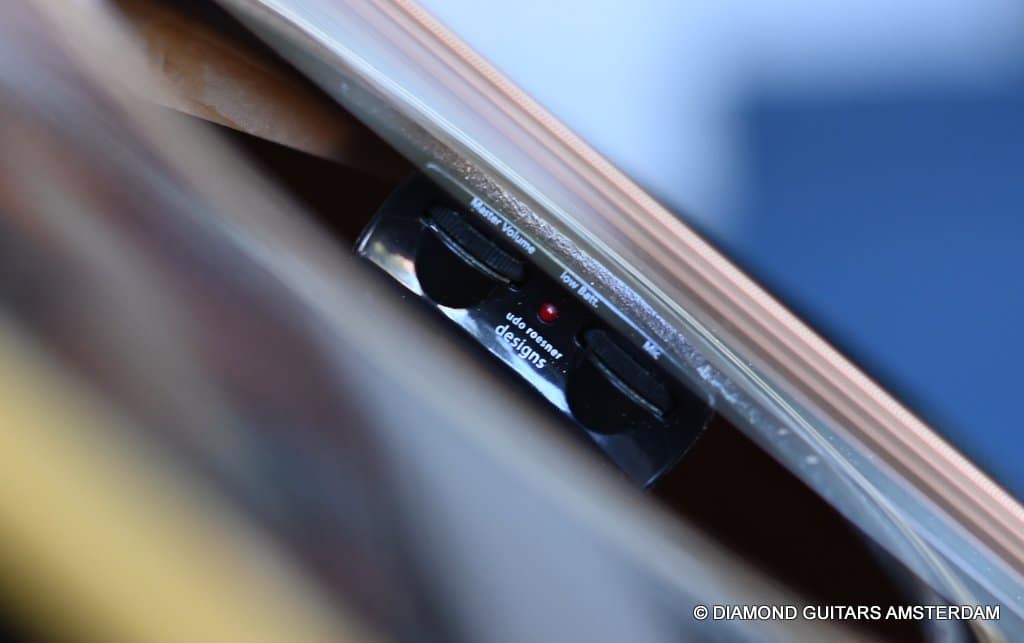 Thoughtfully recreated with a Thermally Aged Adirondack red spruce top, hot hide glue top bracing, Mahogany back and sides, traditional 25” scale length, and a historic-style V-neck profile, the Gibson Acoustic Custom Shop brought back a legend, the 1934 Jumbo, the original wooden cannon. We know it will inspire you to embark on all sorts of epic fretboard adventures! This one is equipped with a fantastic Udo Roesner Hash pickup system and offer a balanced and natural sound reproduction. Udo was the founder of AER Amps. After selling the company he focuses on high-end systems and developed this unique dual source end-pin piezo pickup and electret microphone system among for a natural and realistic sound reproduction. The Hash system comes with Volume and Blend control, plus a low battery indicator.