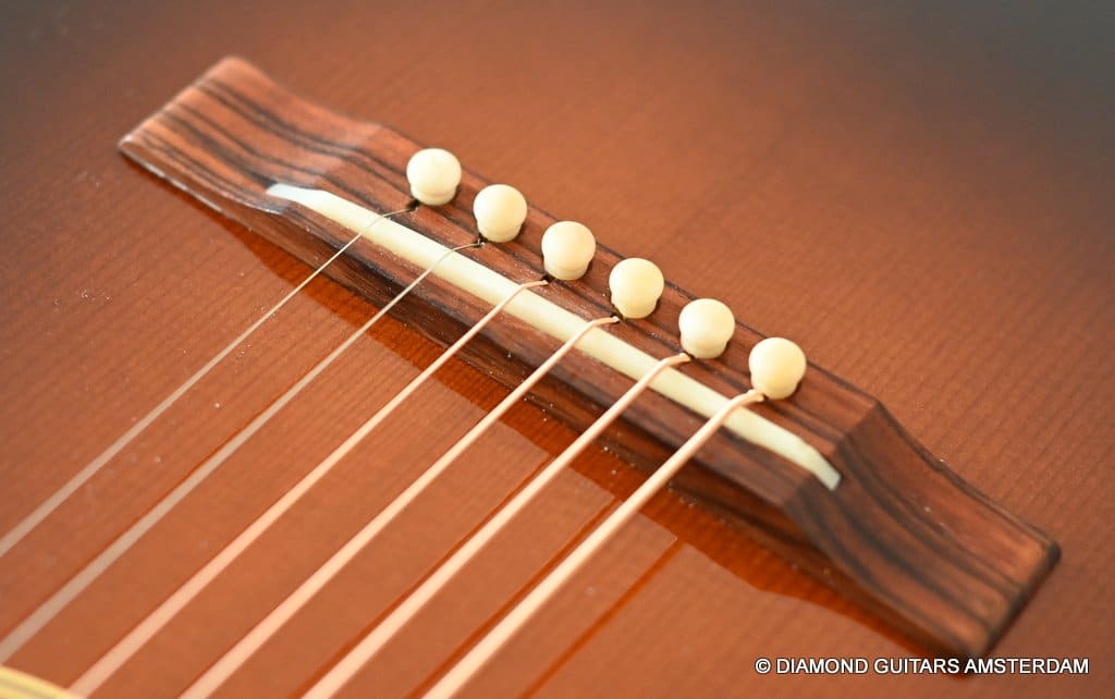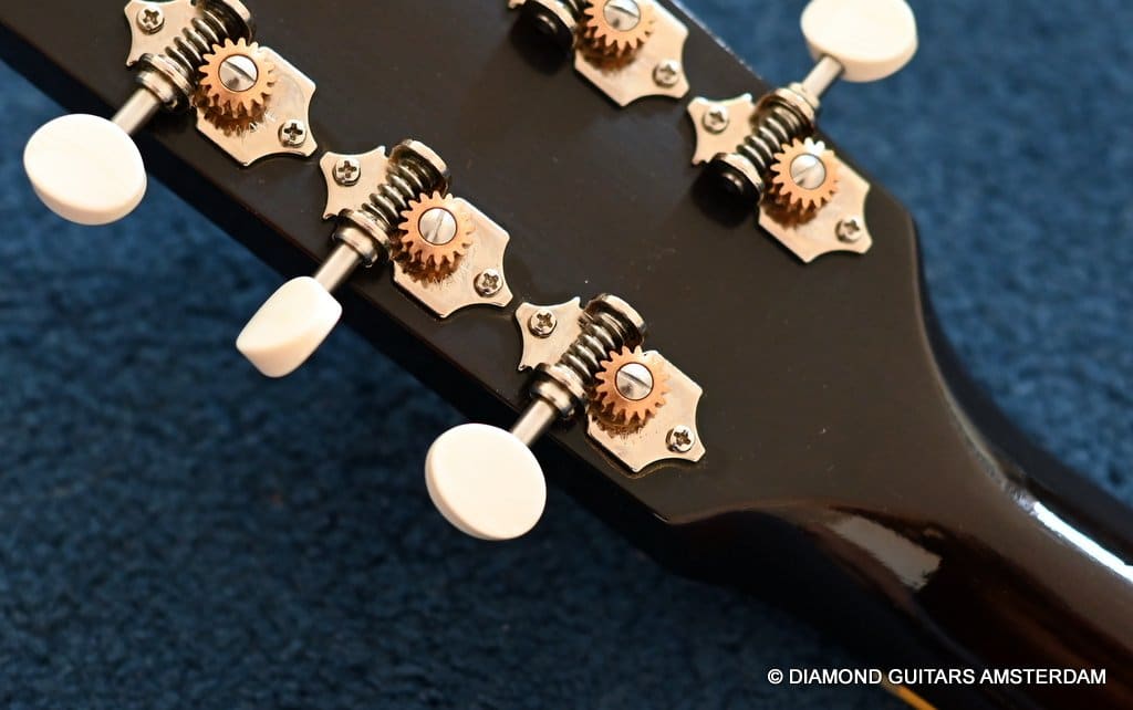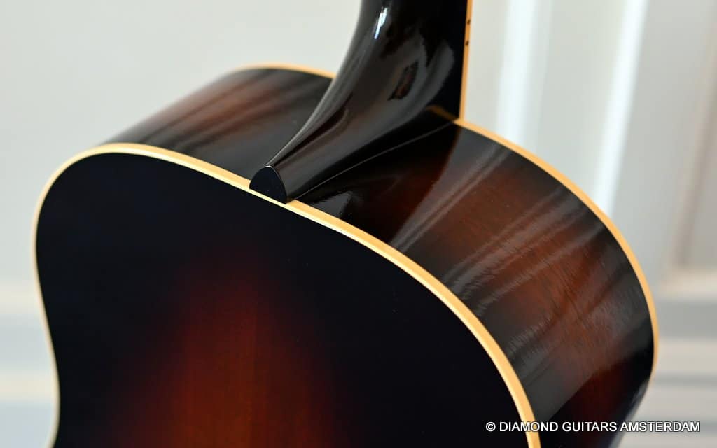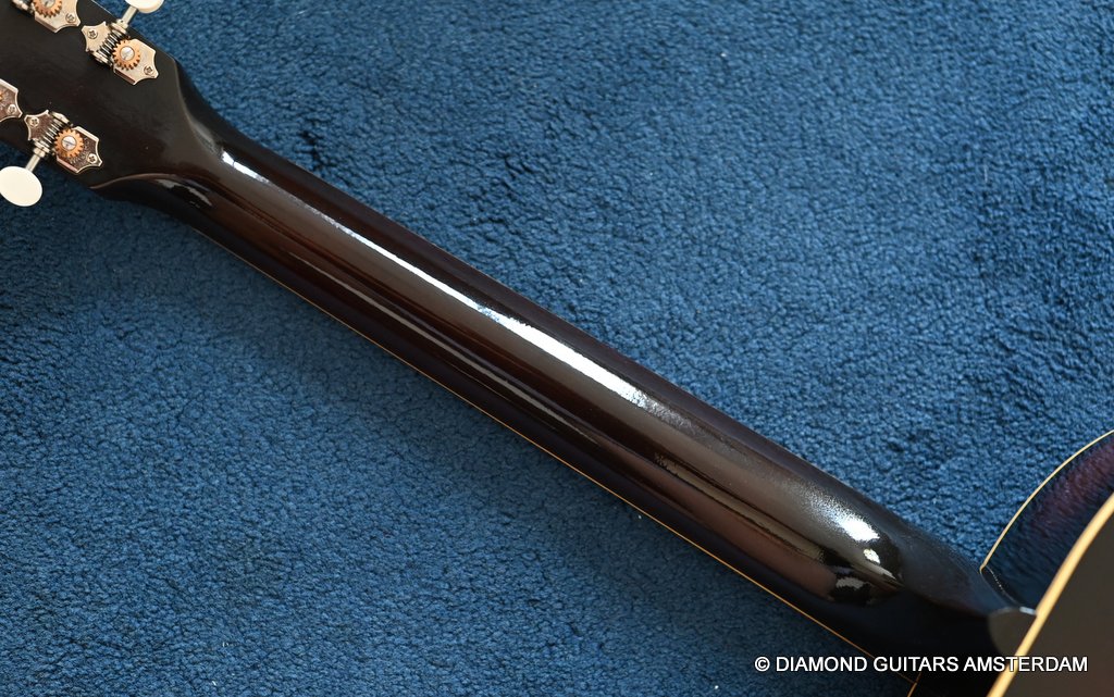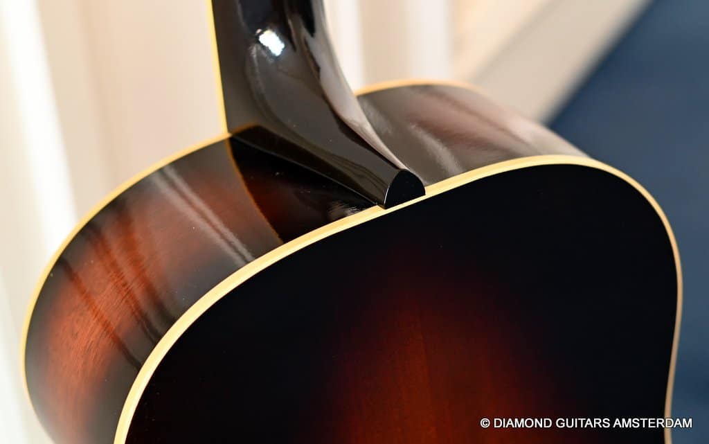 Thoughtfully recreated with a Thermally Aged Adirondack red spruce top, hot hide glue top bracing, Mahogany back and sides, traditional 25” scale length, and a historic-style V-neck profile, the Gibson Acoustic Custom Shop brought back a legend, the 1934 Jumbo, the original wooden cannon. We know it will inspire you to embark on all sorts of epic fretboard adventures! This one is equipped with a fantastic Udo Roesner Hash pickup system and offer a balanced and natural sound reproduction. Udo was the founder of AER Amps. After selling the company he focuses on high-end systems and developed this unique dual source end-pin piezo pickup and electret microphone system among for a natural and realistic sound reproduction. The Hash system comes with Volume and Blend control, plus a low battery indicator.