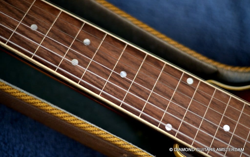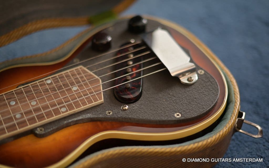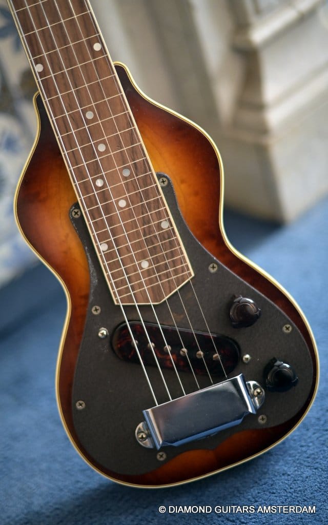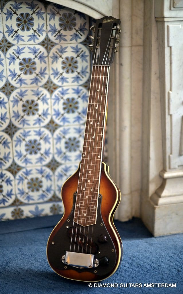 The earliest documented performance with an electrically amplified guitar was in 1932, by Gage Brewer. The Lap Steel, Dobro and Pedal Steel guitar are associated most closely with Hawaiian music, country music and bluegrass, though some players have used them in rock music, jazz, blues, and other musical genres. Go check out John Paul Jones HERE, and Davil Gilmoure HERE. Back in the days the original retail price was…185 USD. Here condition is great, and she is in full functioning order