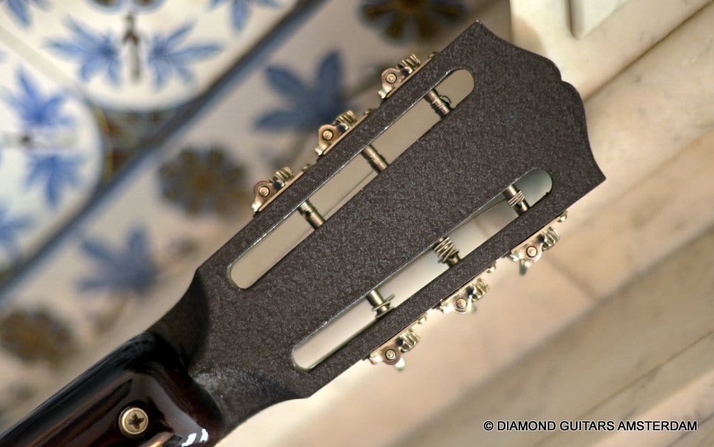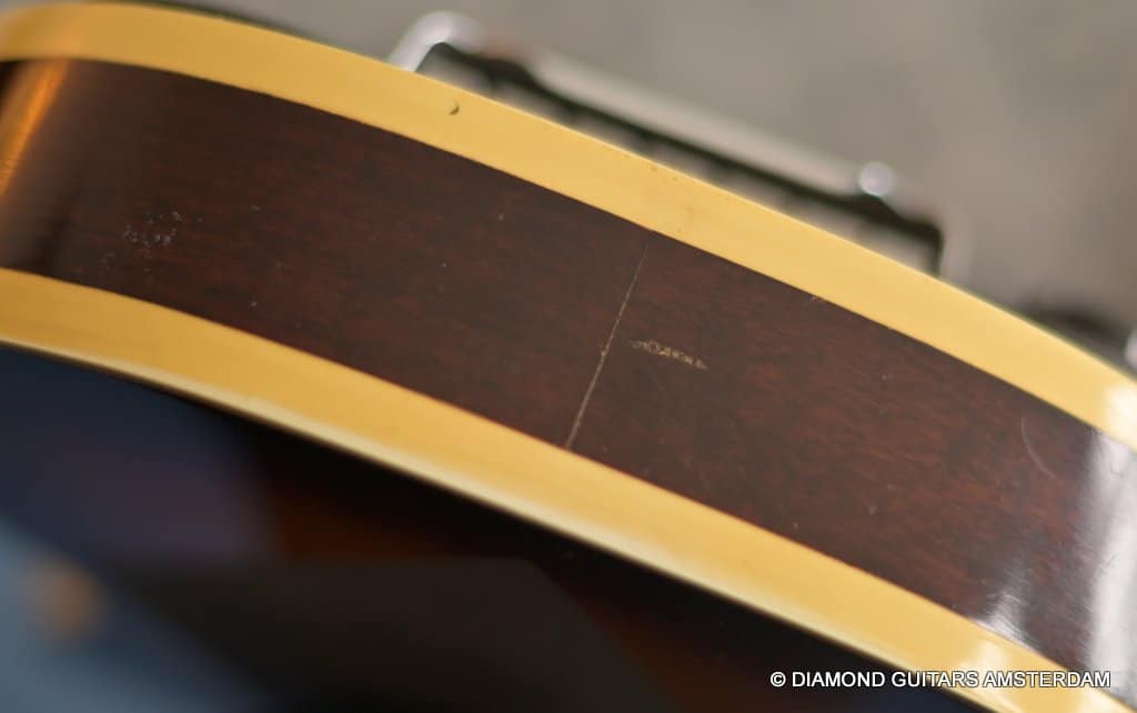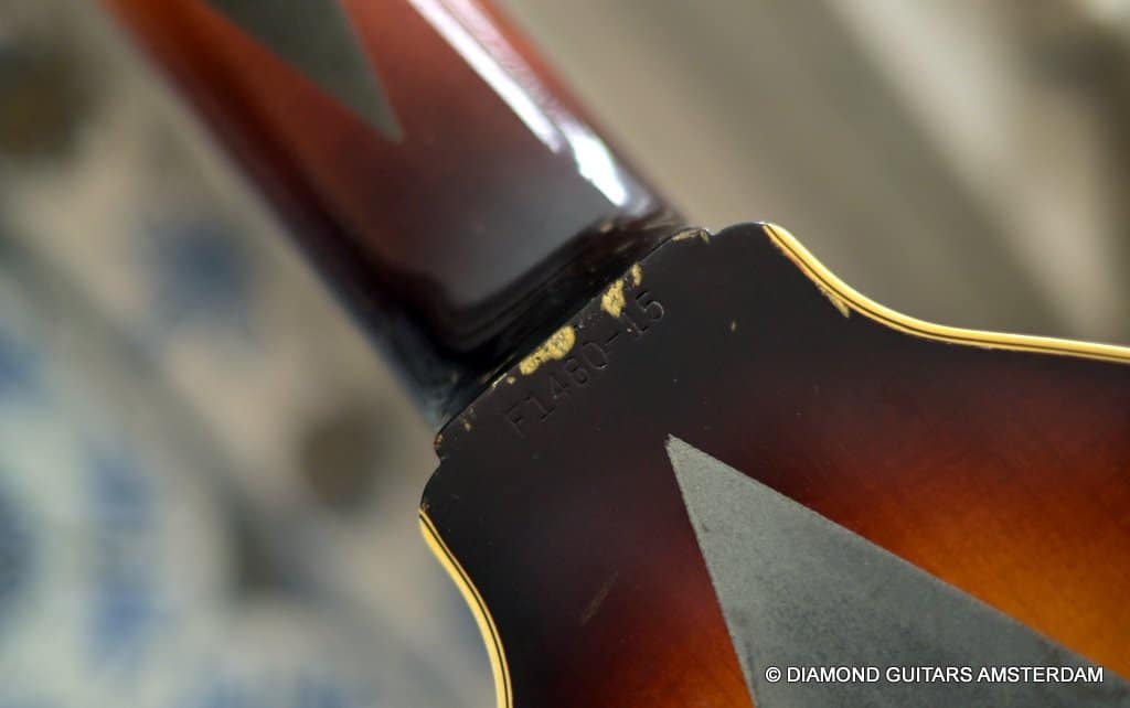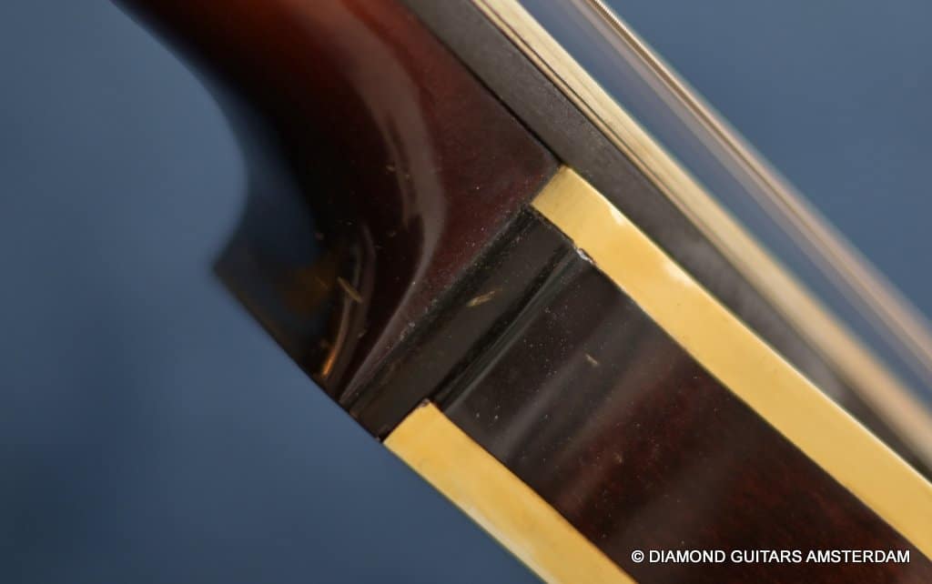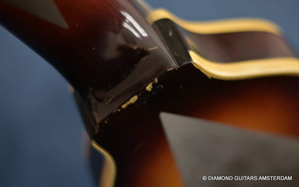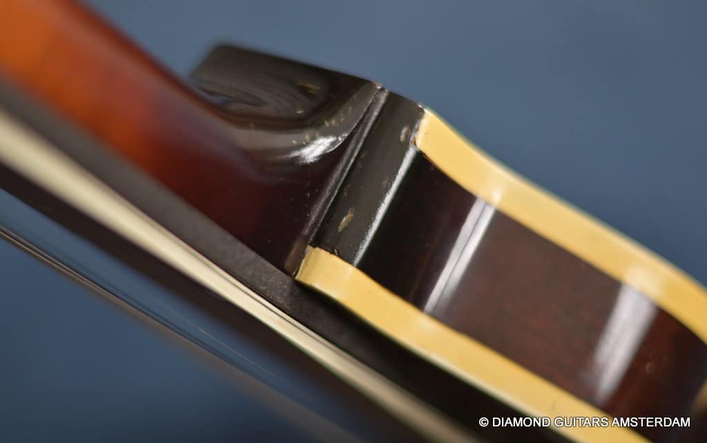 This sweet Gibson EH-185 2nd version Lap Steel Guitar or ‘Hawaiian’ guitar the first electric stringed instrument and hit the market just a few years before Les Paul and Charlie Christian modified their instruments. Gibson stated that this Lap Steel ‘had the quality and tone that players have dreamed about, but have never been able to find in an electric guitar before’, while highlighting ‘its great sustaining power’. The Gibson logo is cut-out of metal and mounted onto a solid cast piece. Original Kluson tuners are mounted on the side. For those of you that encounter EH-185 tuners, they are specific to vertical mounts…thus, they will not fit onto regular EH-150’s. More info on Gibson Lap Steels HERE