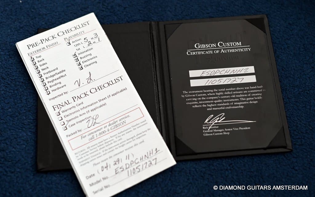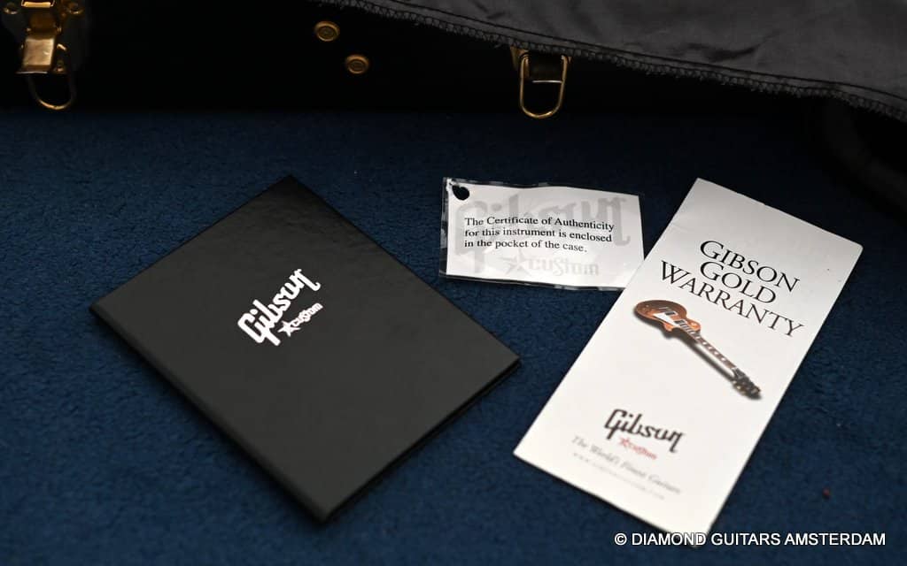 The guitar includes the Gibson Custom case and Custom Shop COA. The ’57 Classic pickups give a clear, deep growl that’s as authentic as you’re ever going to find this side of a real ’57. This is a fantastic instrument that you’ll be proud to own and play for years to come. Her condition is excellent. She shows light play wear and minor blemishes.