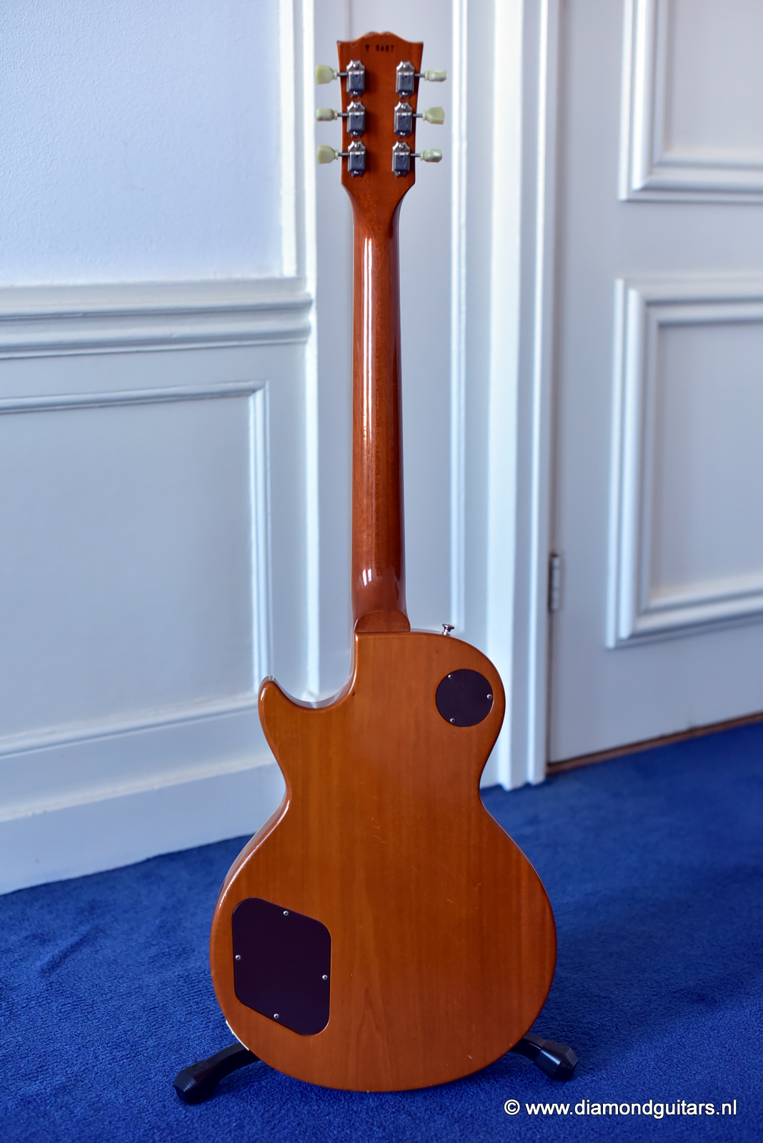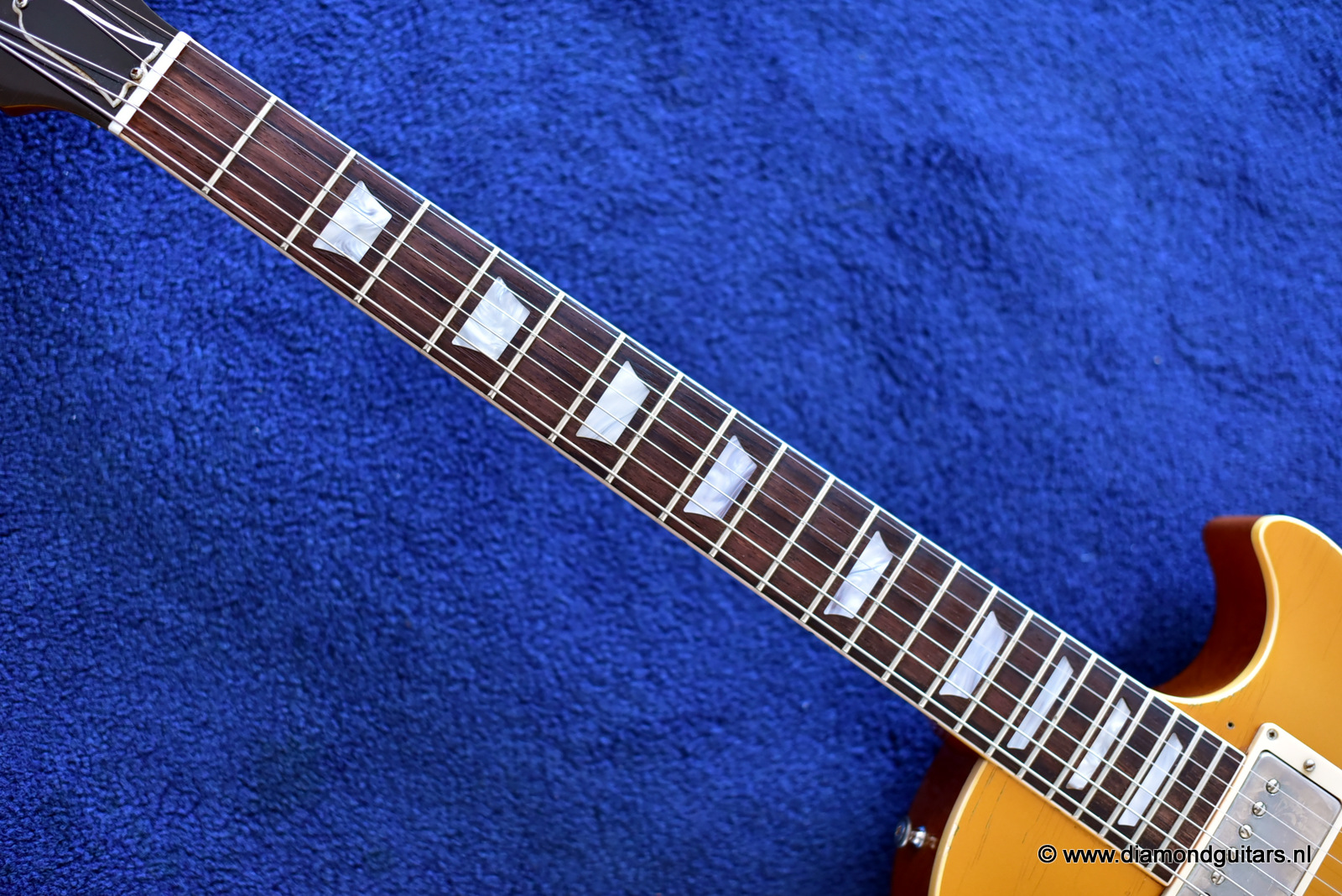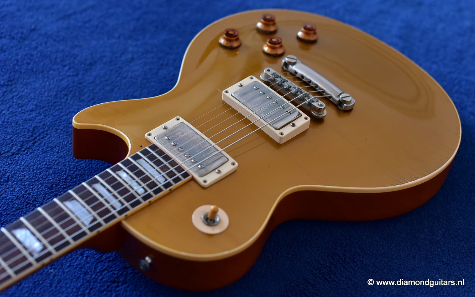 This guitar comes alive with the great sounding sets of Gibson’s PAF style BurstBuckers Style 2 & 3. She sounds woody, throaty and clear with a balanced midrange. Instantly recognizable as the emblematic sound of the 50s. Huge, deep Honduran Mahogany sound enhanced by a the Maple cap that gives the instrument top-end chime and sparkle. This axe sings! Tuned down with a set of 13th and a slide…wooaw!!.