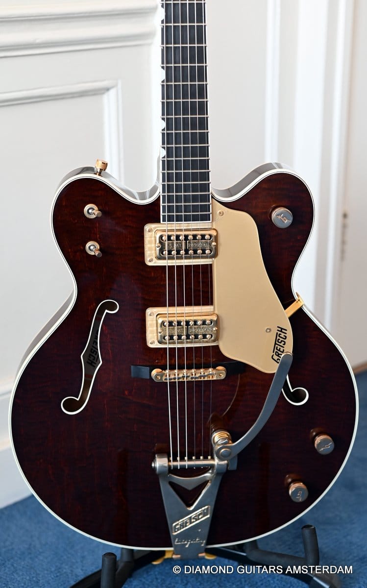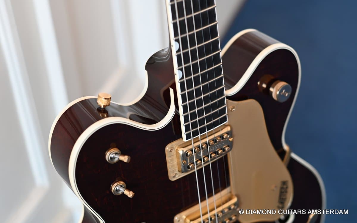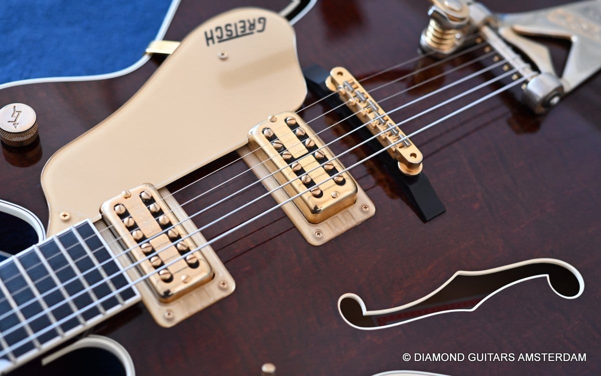 Gretsch 6122ii Chet Atkins Country Gentleman (2010) is constructed in the style of the classic “Gents” of the 1960s with just a few modern appointments, including an Adjustomatic bridge and a neck joined to the body at the 18th fret.