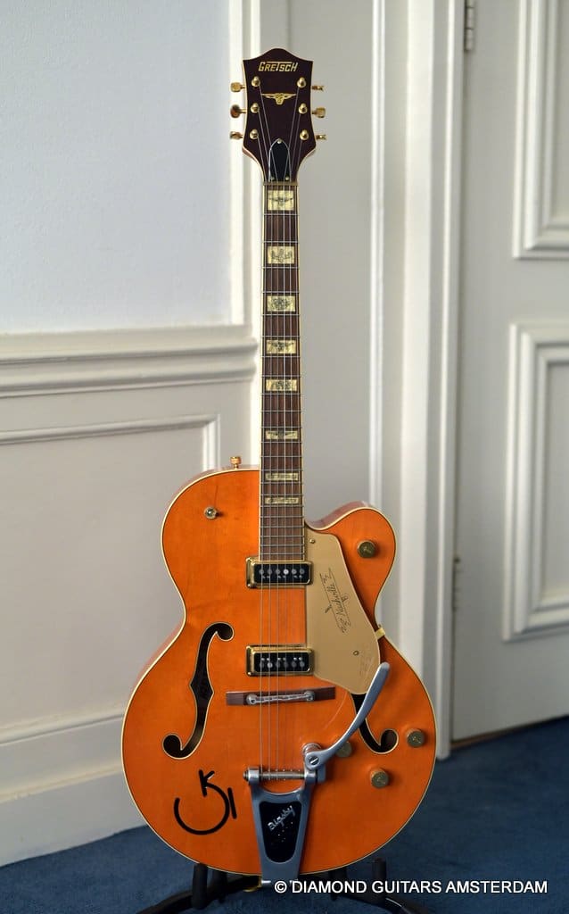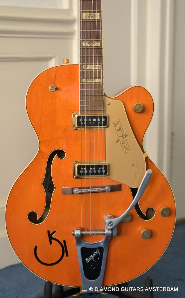 Eye catching Gretsch G6120DSW Nashville hollow body archtop guitar built by the excellent craftsman of the Terrada factory in Japan.
