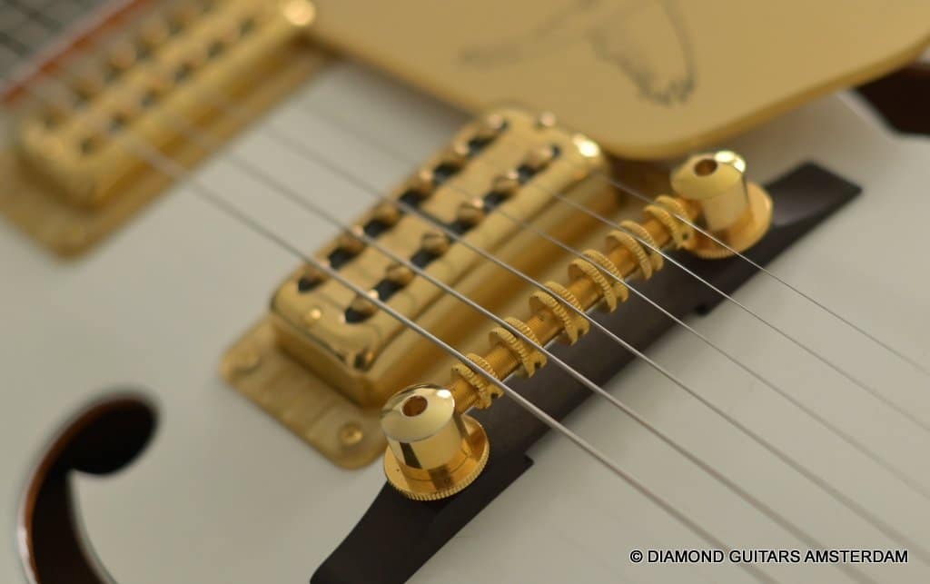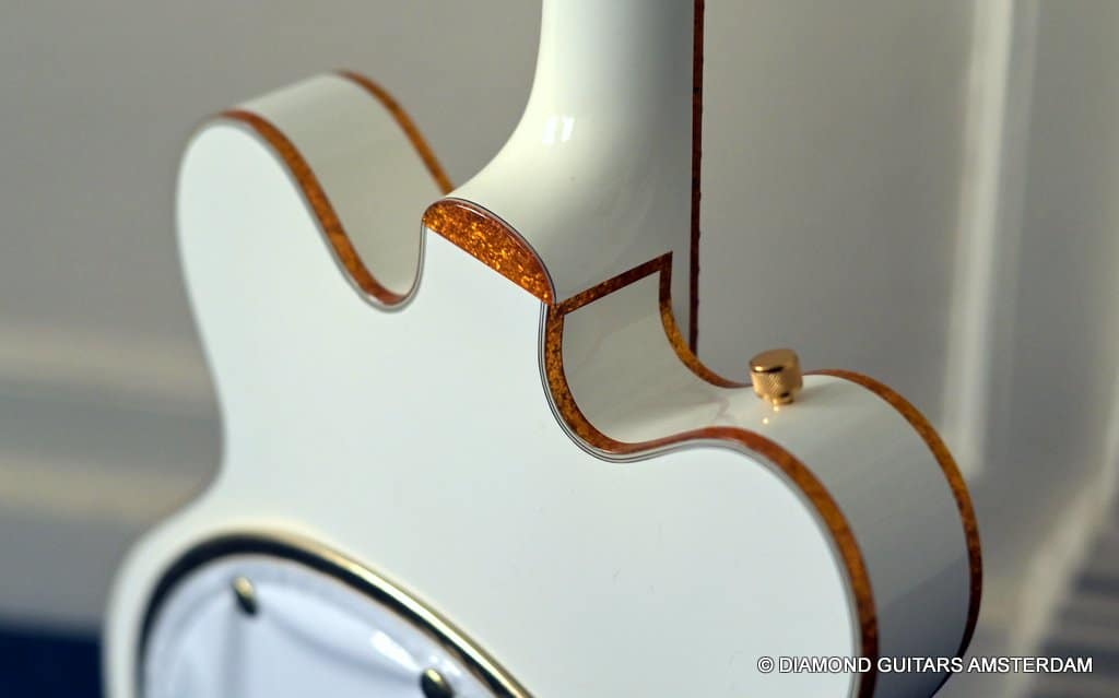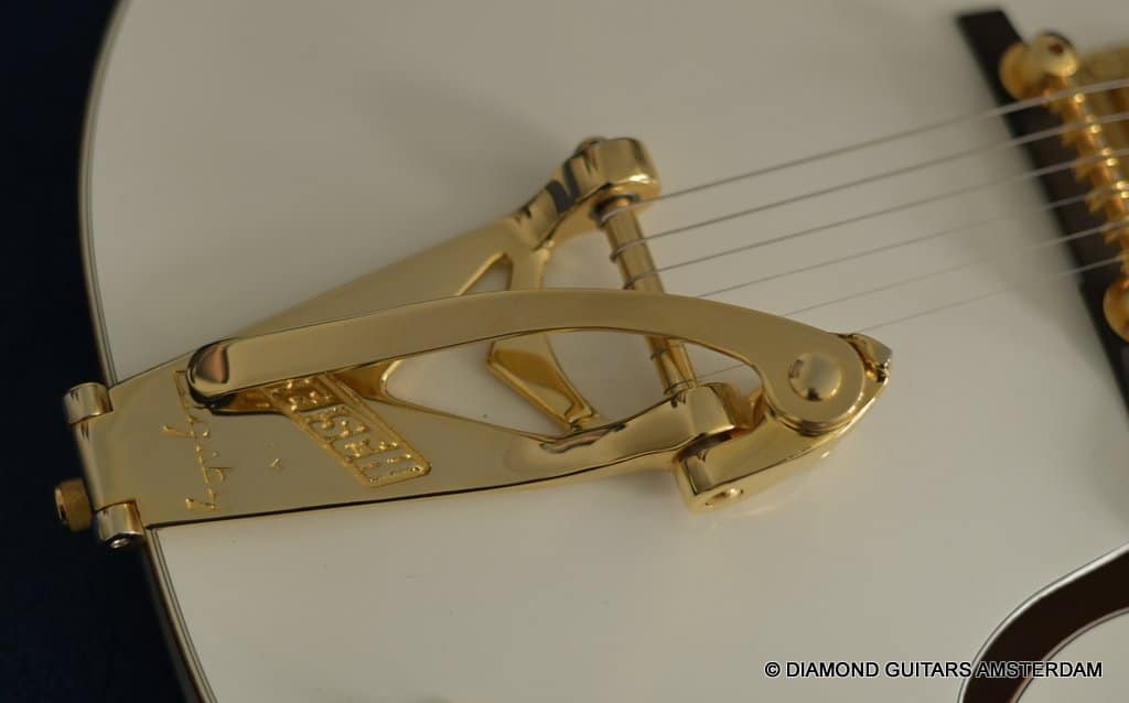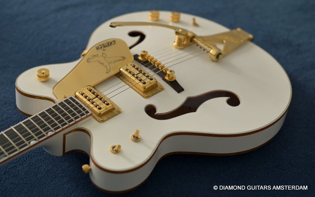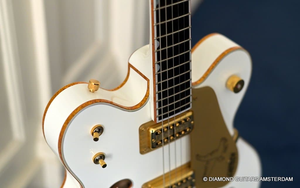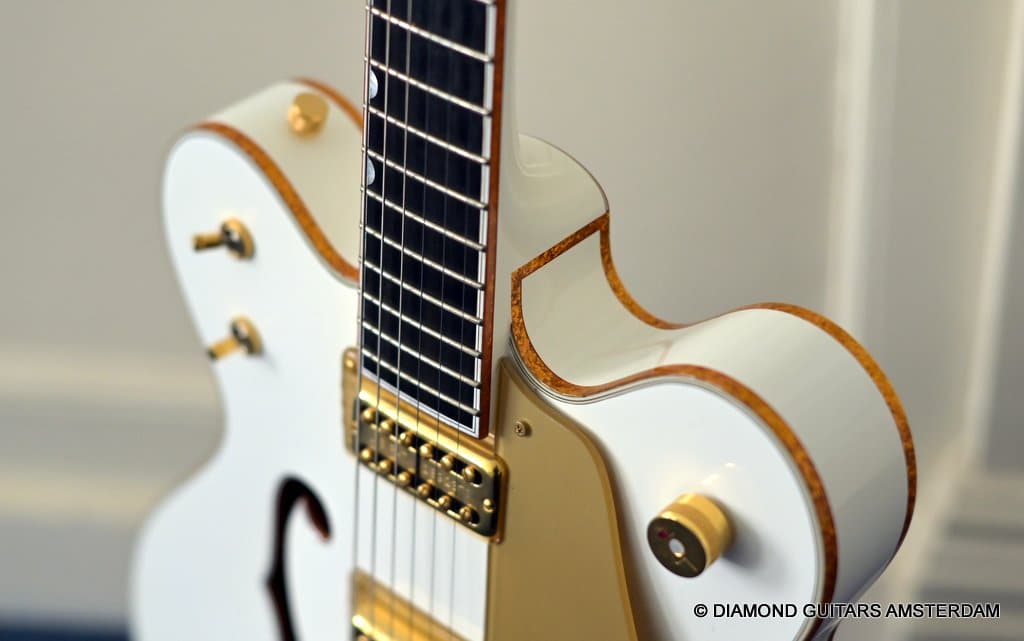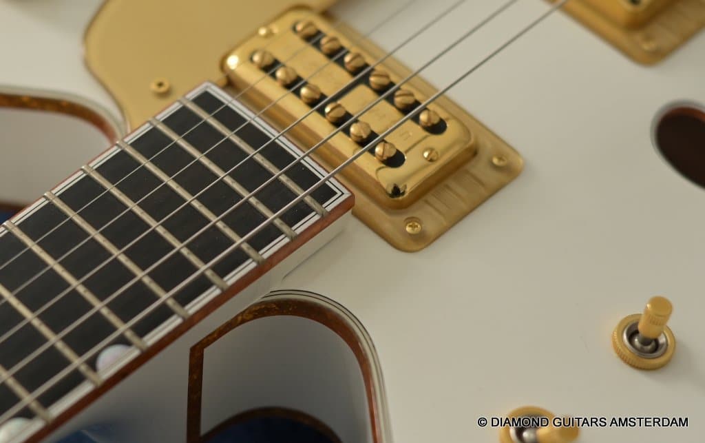 The White Falcon is an iconic Gretsch and for many years these beauties were quite rare. This is an example of an updated design, sharing an eminently practical feature with the Country Gentleman II where the neck joint is considerably shorter. This gives significantly more access to the upper frets than on previous or single-cutaway models. It’s a very comfortable guitar to play, and really sounds great.