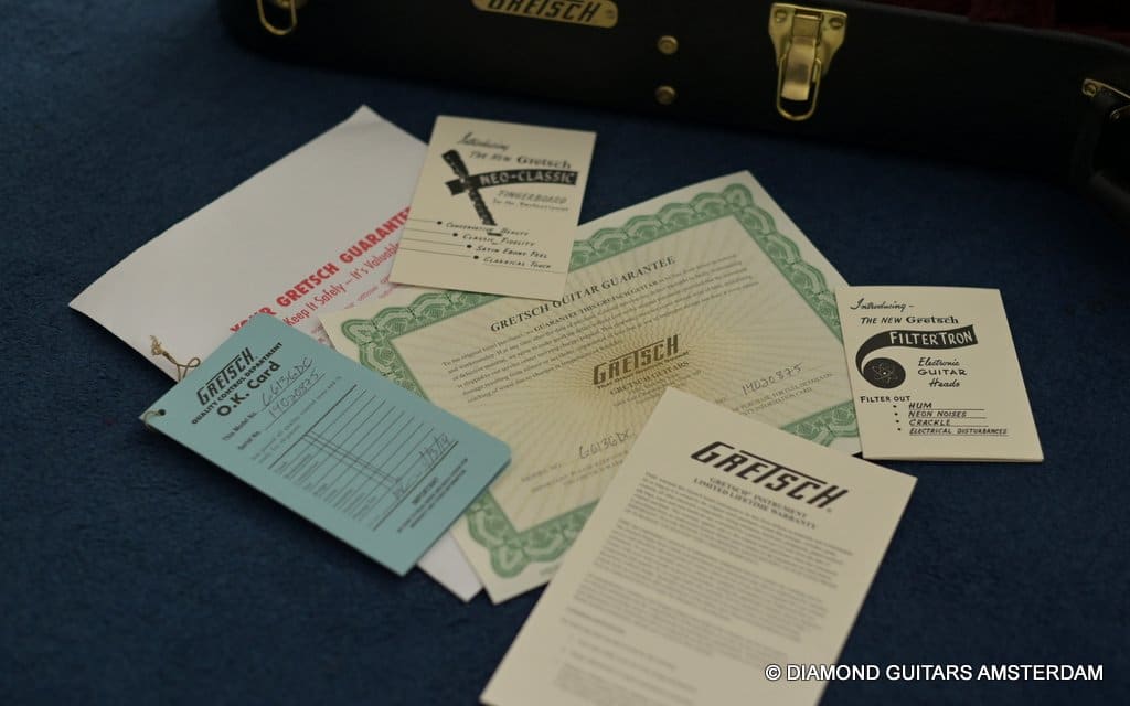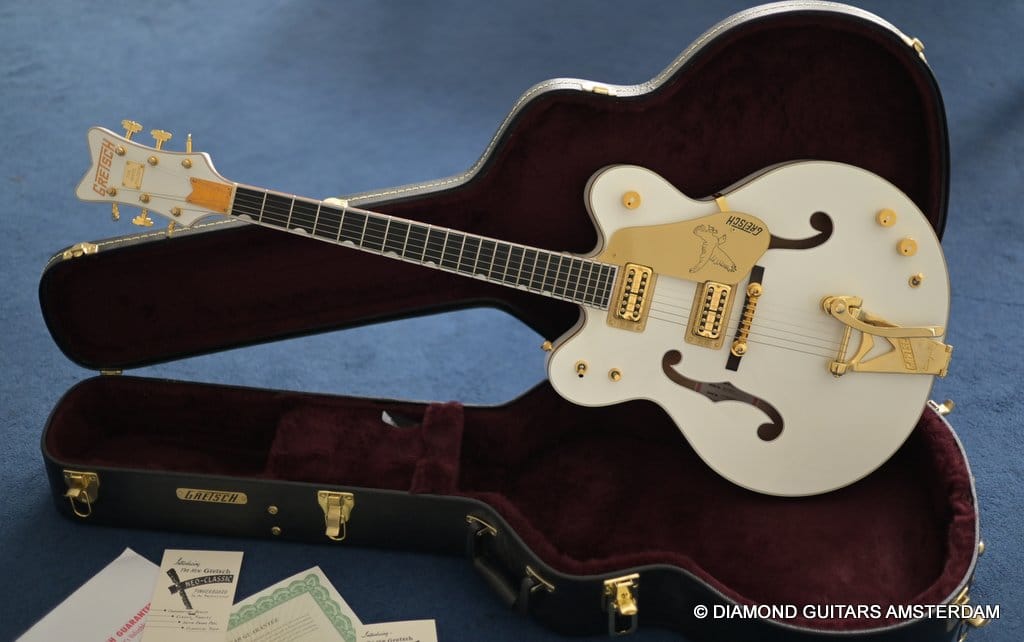 Eye catching Gretsch G6136DC White Falcon hollow body archtop guitar from the Pre-Fender era built by the excellent craftsman of the Terada factory in Japan.