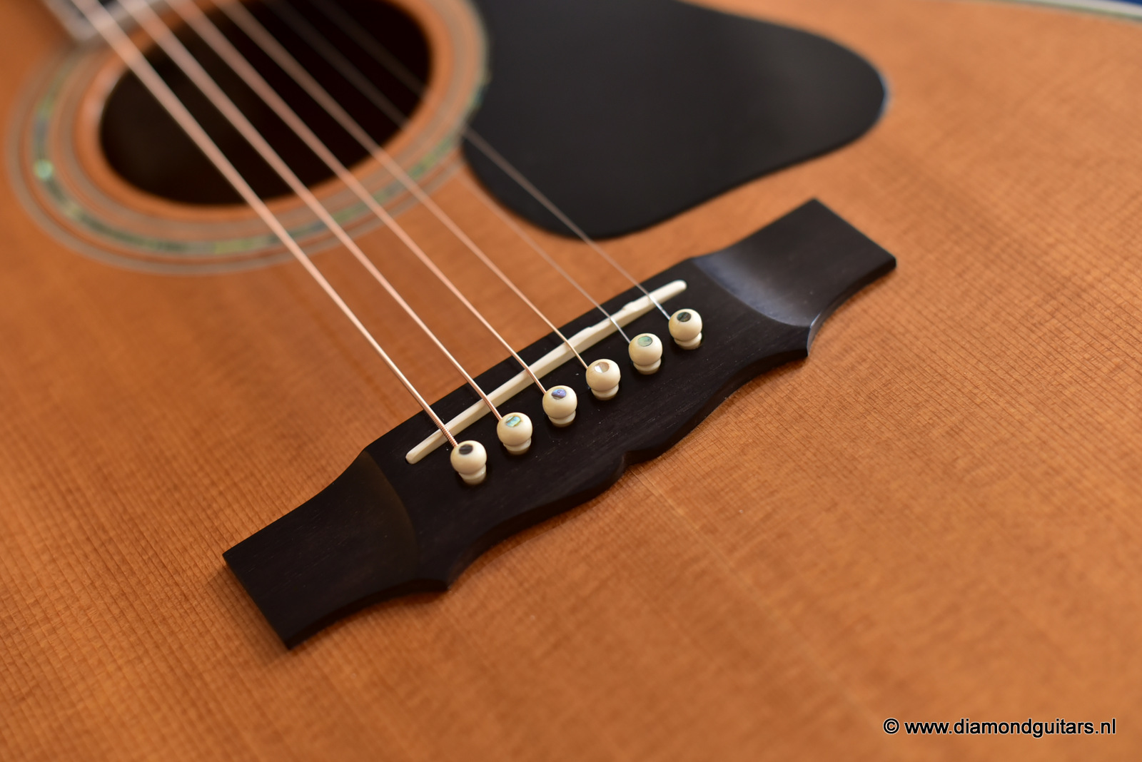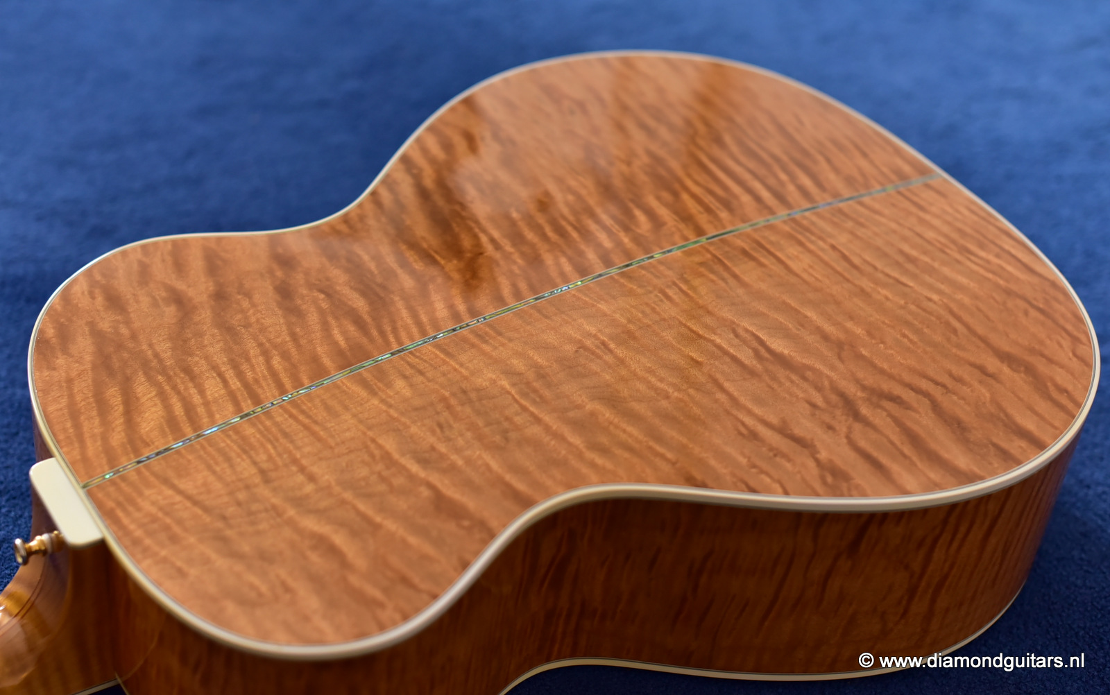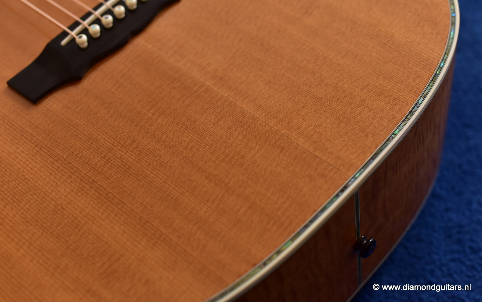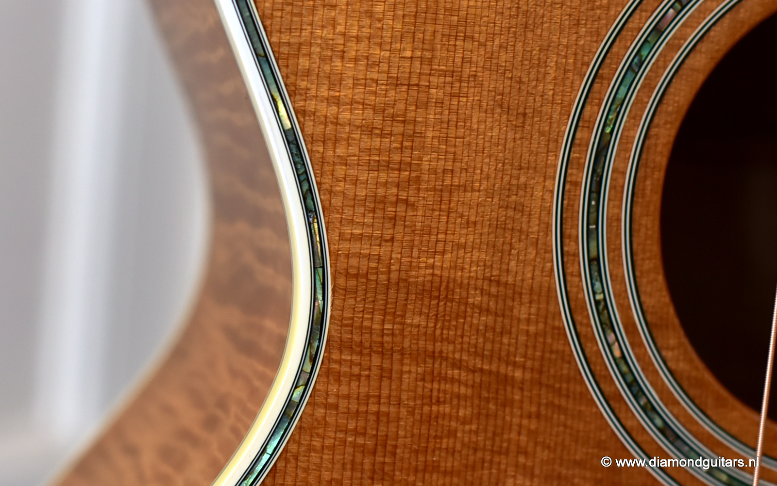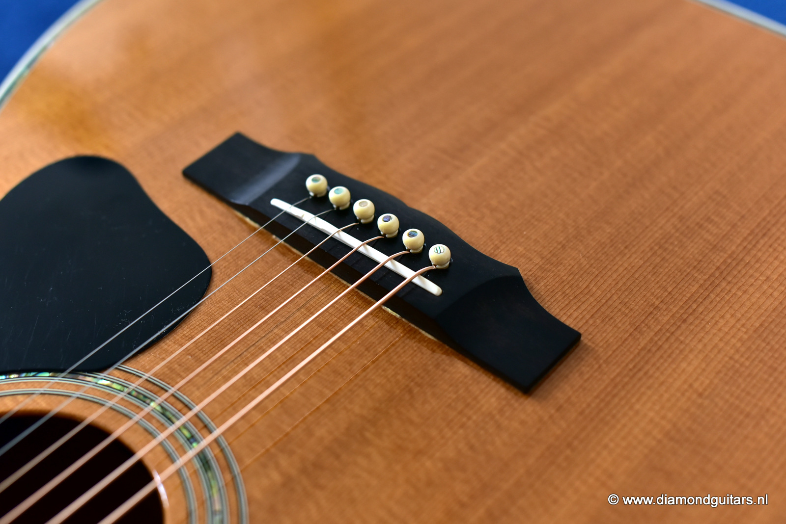 From a tonal point of view this is a strummers and fingerpickers dream. Delicate and creamy tones come forward when strings ar touched with hand or pick. Really nice and warm. Decent bass tones, strong mids and sparkling highs. Delicious!! The guitar is in excellent condition and was played (as I would certainly advise!). Some minor fretwear, minimal dings and a fine laquer crack running along on the top from bridge to end block where the bookmatched Sitka parts meet. Really cool and great sounding guitar!