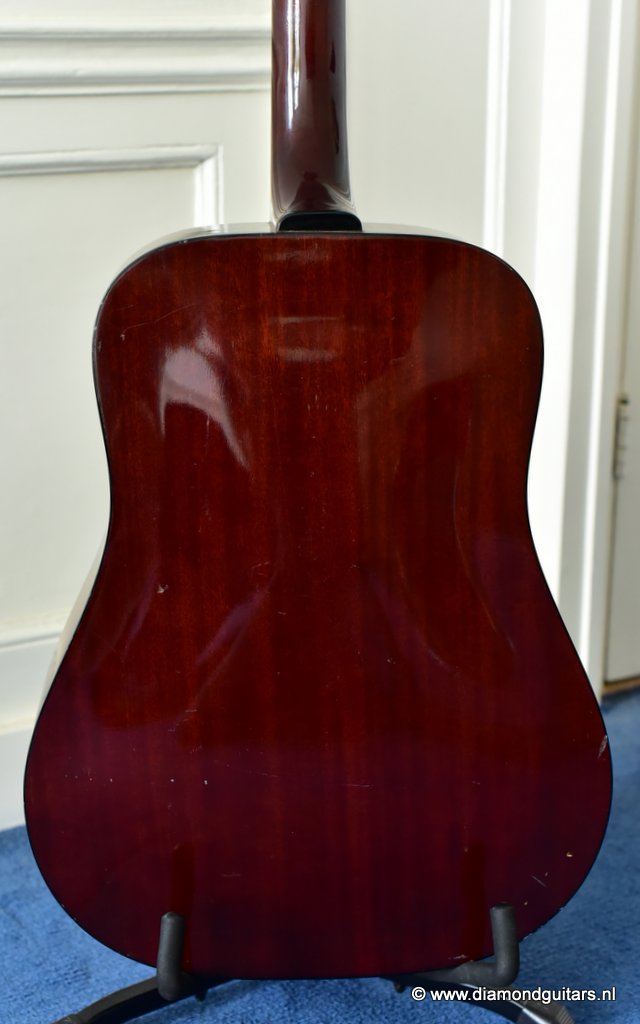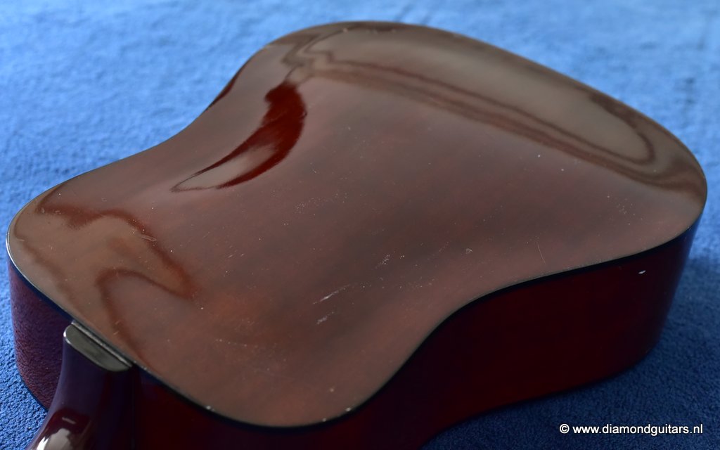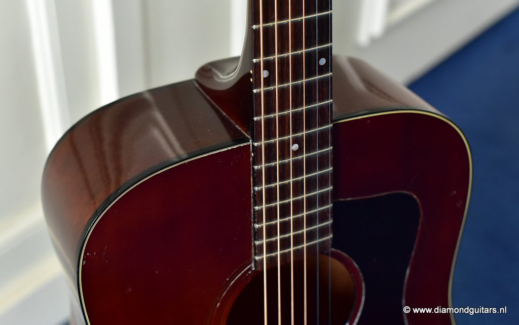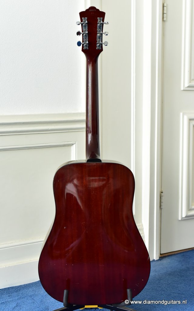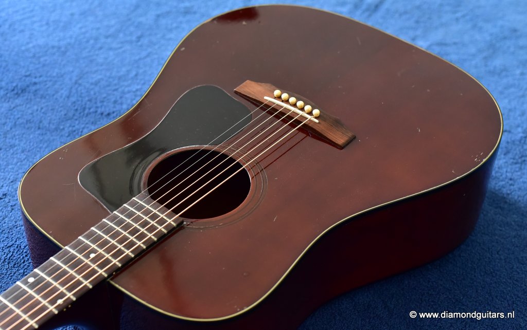 Thie Guild D-25 Dreadnought was introduced in 1968 as the Bluegrass D-25. The model remained a budget-friendly mainstay of the Guild acoustic lineup for decades, with major changes coming in 1975 when a Spruce top (dyed to look like Mahogany was introduced). The D25 came with the arched back design. The carved arch like back of the old Guilds is partially a nod/holdover from the old New York Epiphone organization which formed the core of the Guild organization as Epiphone was going under and being bought out by Gibson. Epiphone in its heyday made some of the finest archtop jazz guitars ever produced.