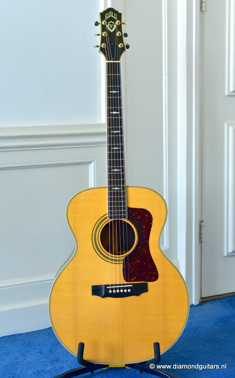 Vintage 1987 Guild GF60 in excellent condition! This was Eric Clapton’s favorite back in the days. I can imagine that because this guitar is so sweet. It must be the Engelman Spruce top that rings like a bell. Really beautiful!