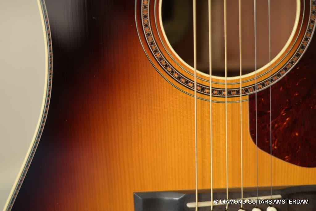 This pretty Guild Orpheum D-14 is a tonemachine extraordinaire build with mastergrade Adirondack en Mahogany. Beautifully crafted and rich-sounding in all registers. Her design is based on the golden age of U.S. acoustic guitar design and construction. Guild set out to build a pre-war guitar with that indescribable, but very appealing tone as Guild would have built them when they would have been around in the twenties and thirties. The hired Ren Ferguson to overlook the extremely limited production at their old New Hartford workshop in Connecticut.