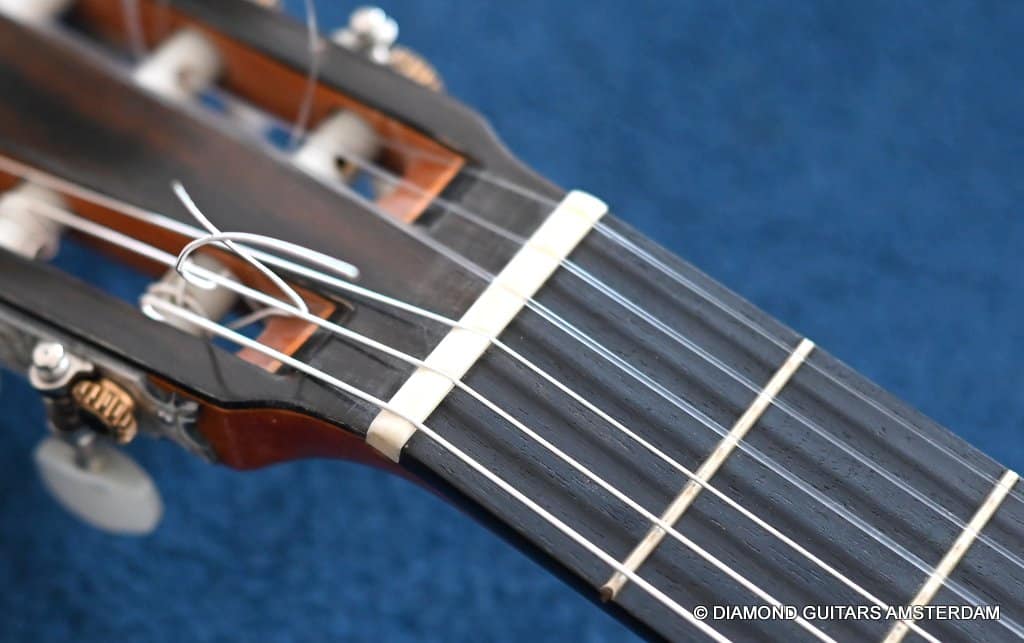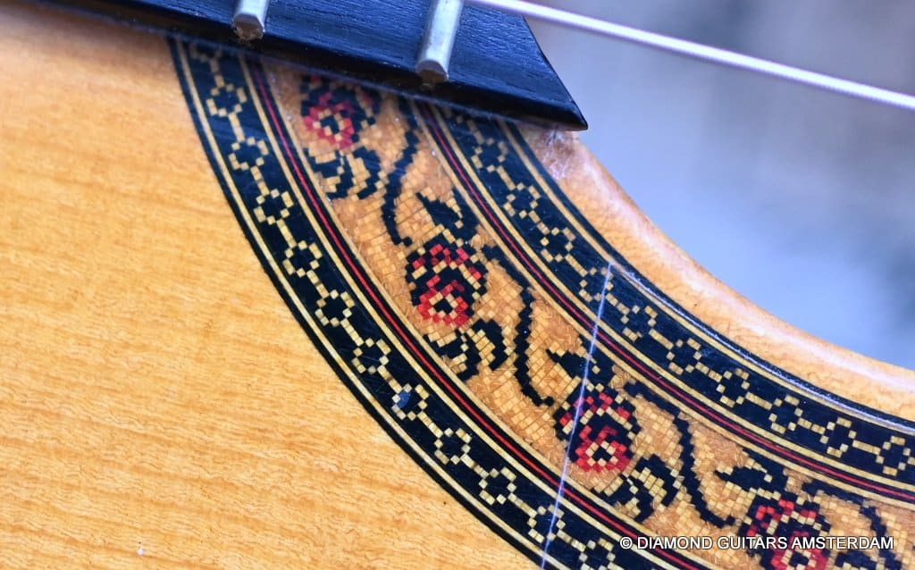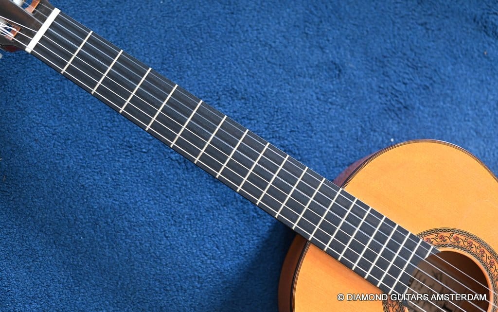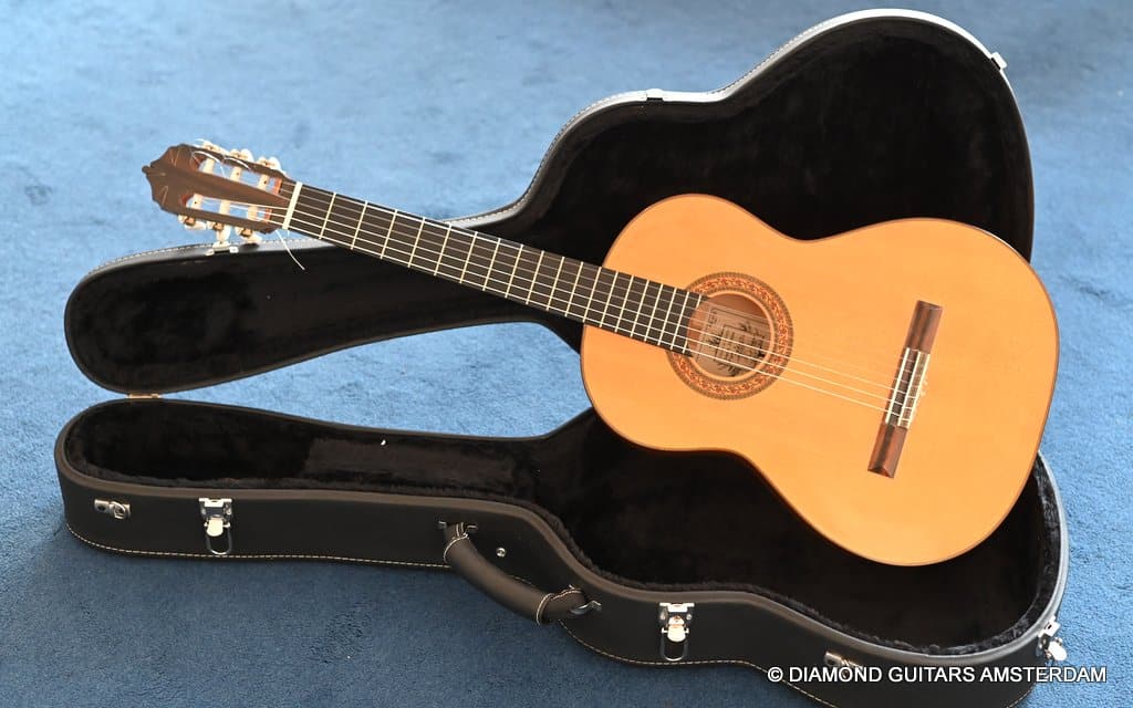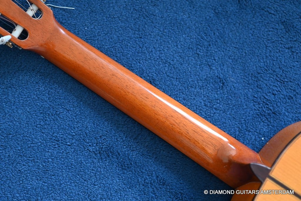 She stands out due to her lightness (only 1.32 kg) and beautiful flamenco timbre. Her condition is excellent and all original, without any cracks or repairs whatsoever. Listen to a sound sample by played by Alberto Fernández below: