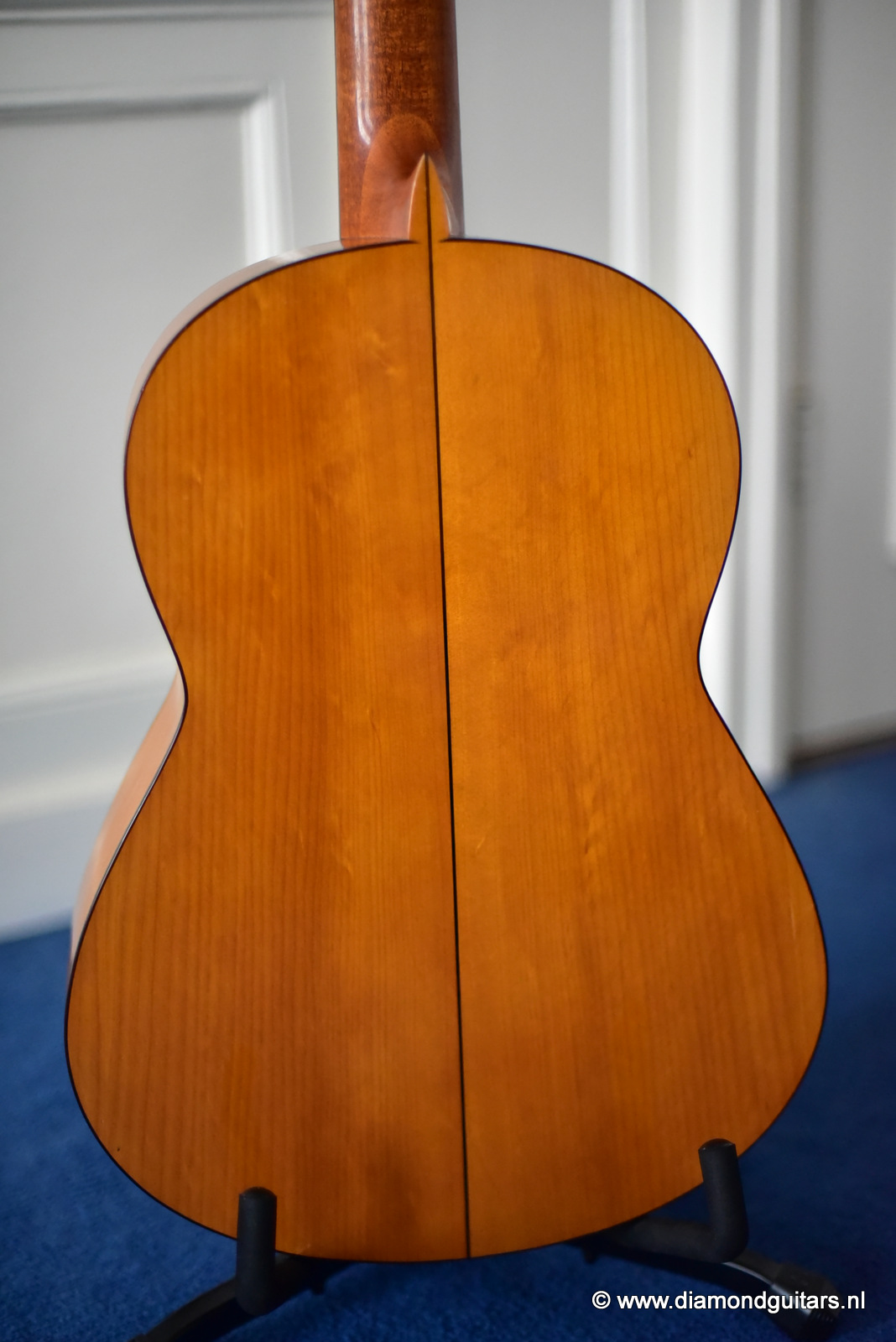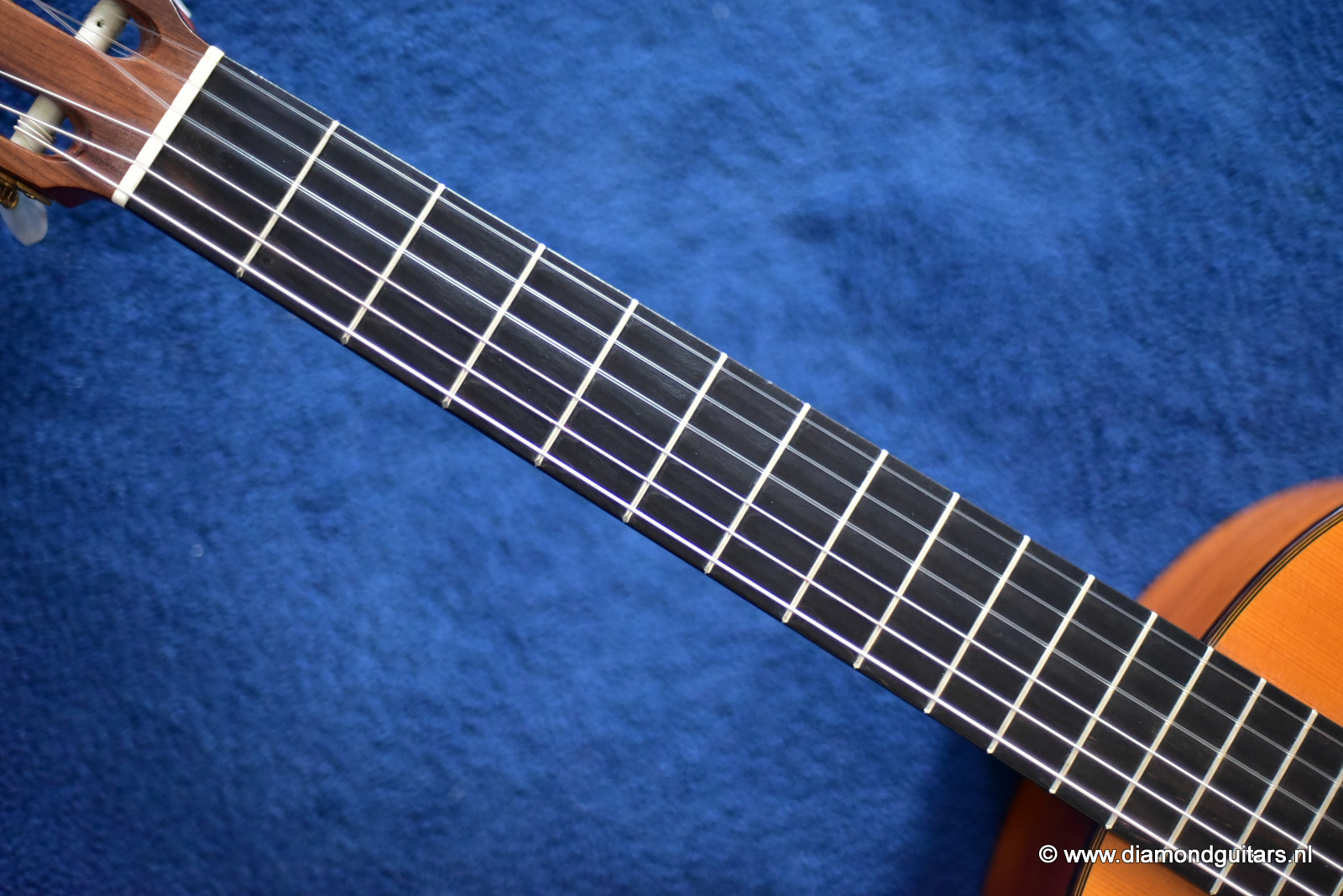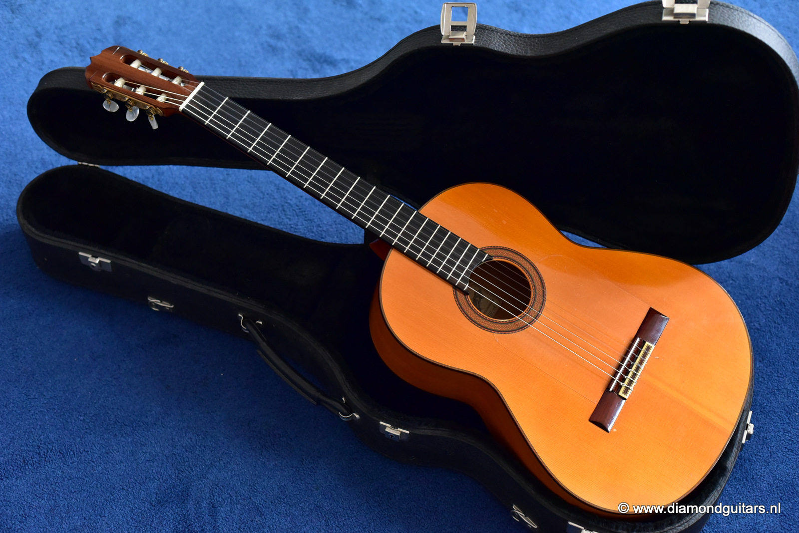 The sound emerging from this guitar possesses some special features and nuances, where the flamenco touch from this signature can be definitely found. The basses are very strong, with a very particular percussive sound. The trebles is just crystalline and well-defined and with an amazing scope, all of which makes quite a balanced set of features. The height of strings in saddle and fingerboard is perfectly balanced, providing the player with a high degree of comfort for both hands. The condition of this flamenco guitar is excellent and completly original, only has a small crack in the upper bout of the Cypres back. We had this spot stabilized and the lacquer repaired by Jeroen Hilhorst.