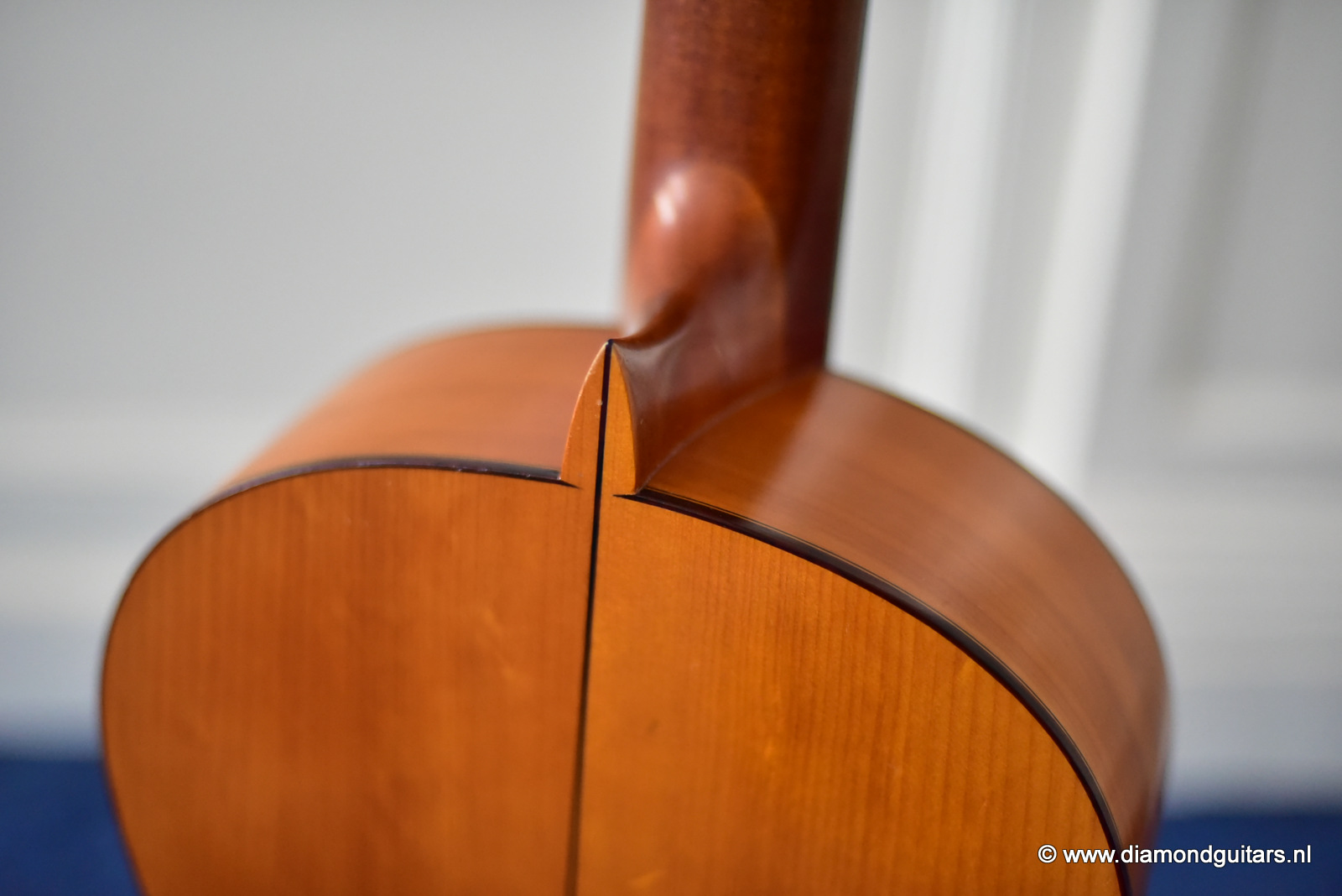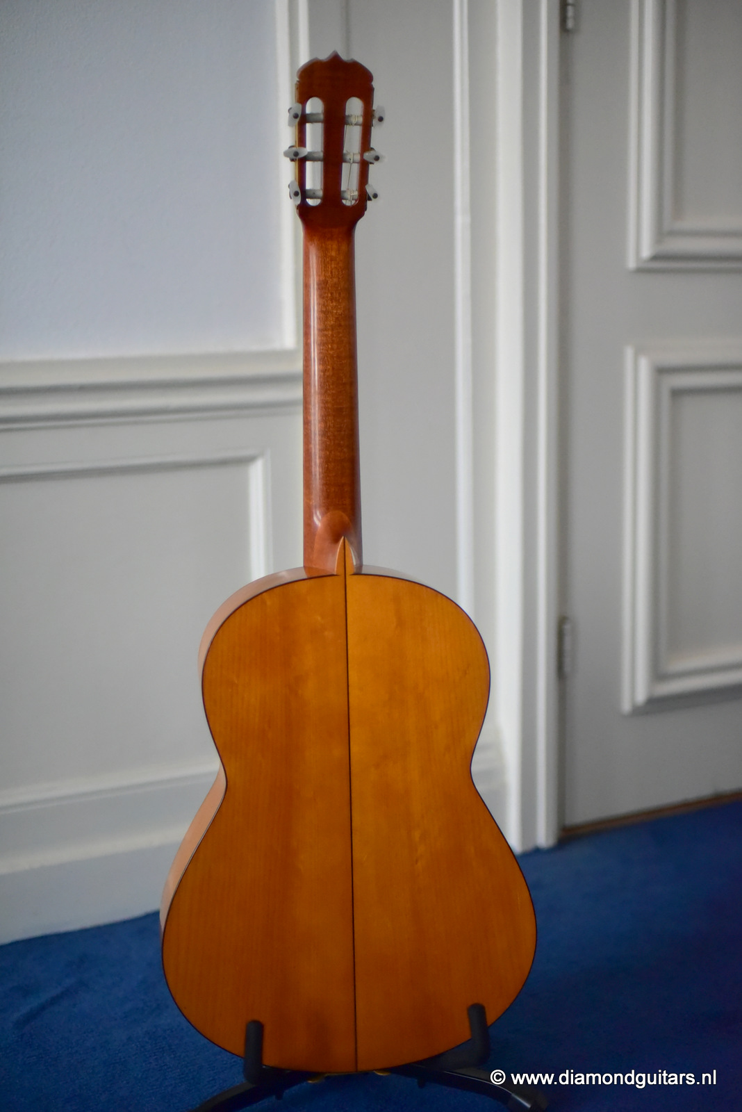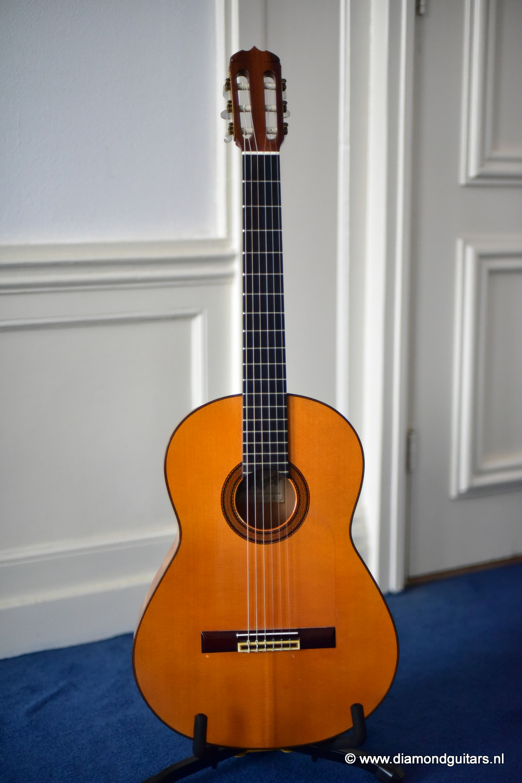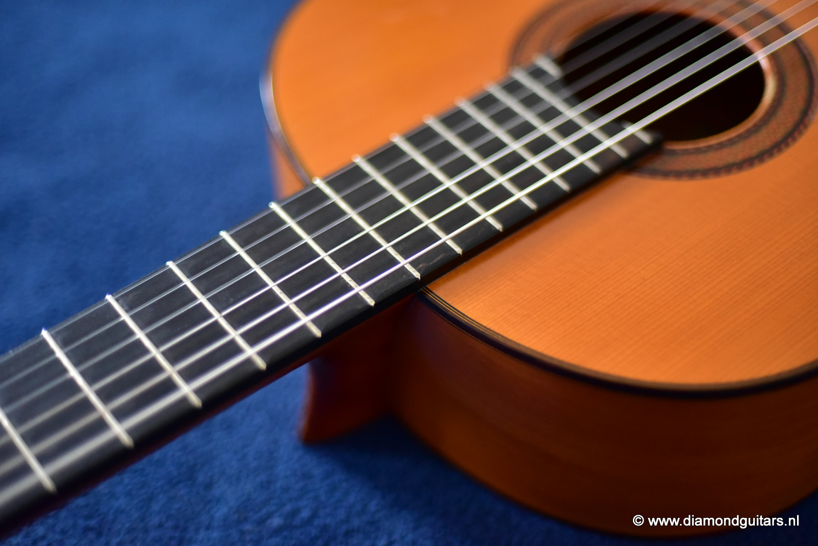 The sound emerging from this guitar possesses some special features and nuances, where the flamenco touch from this signature can be definitely found. The basses are very strong, with a very particular percussive sound. The trebles is just crystalline and well-defined and with an amazing scope, all of which makes quite a balanced set of features. The height of strings in saddle and fingerboard is perfectly balanced, providing the player with a high degree of comfort for both hands. The condition of this flamenco guitar is excellent and completly original, only has a small crack in the upper bout of the Cypres back. We had this spot stabilized and the lacquer repaired by Jeroen Hilhorst.