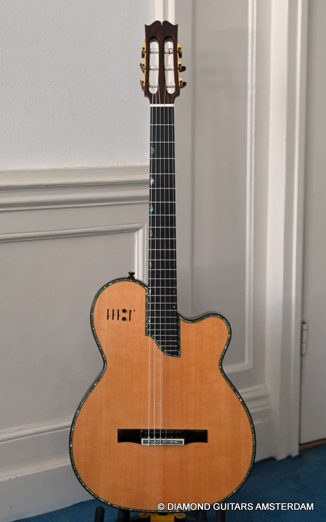 This Kirk Sand Electric Nylon was Chet Atkins’ most favorite nylon electric guitar, offering light weight, professional amplification and easy playability combined with the finest craftsmanship.