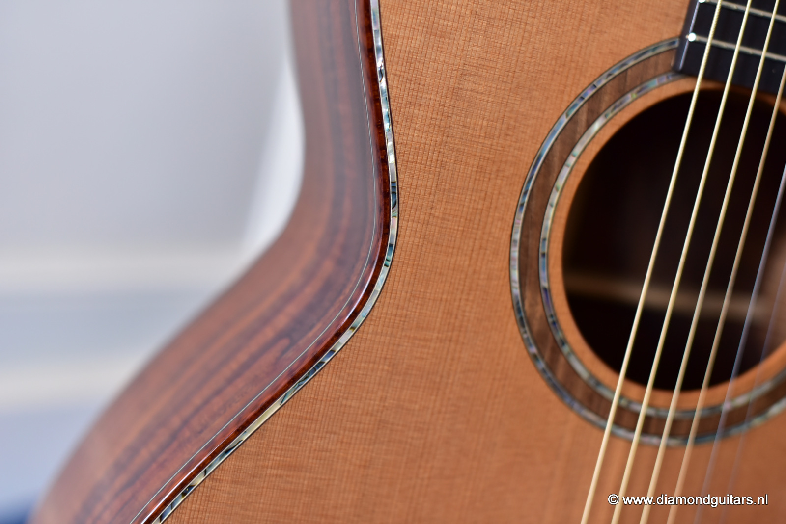 The sound of this guitar is magic. Excellent string separation, great projecten and strong notes on every string and every position. Click the Soundcloud logo for a sound impression. She is in mint condition and comes with an original Lakewood branded Hiscox case.