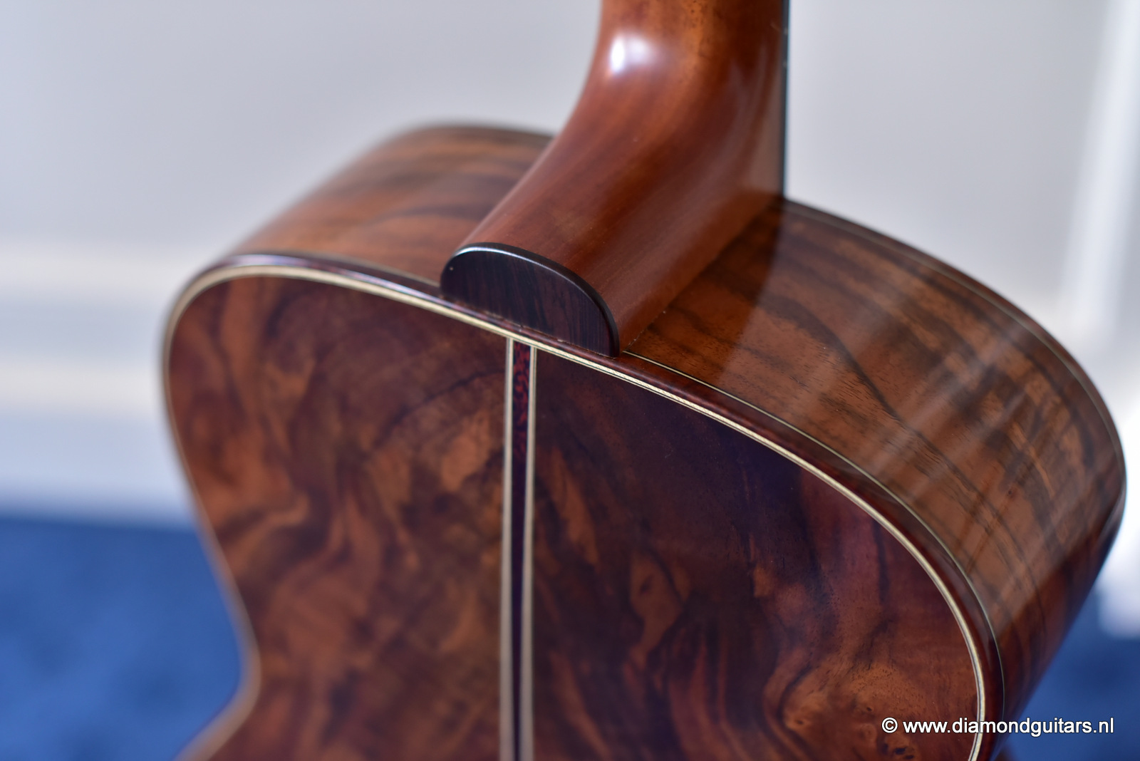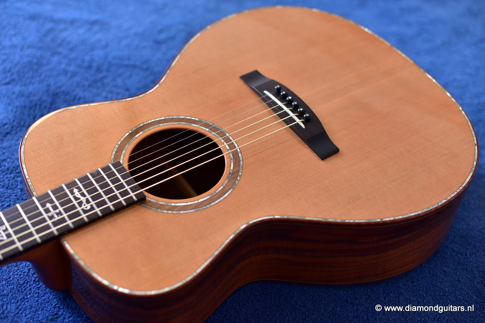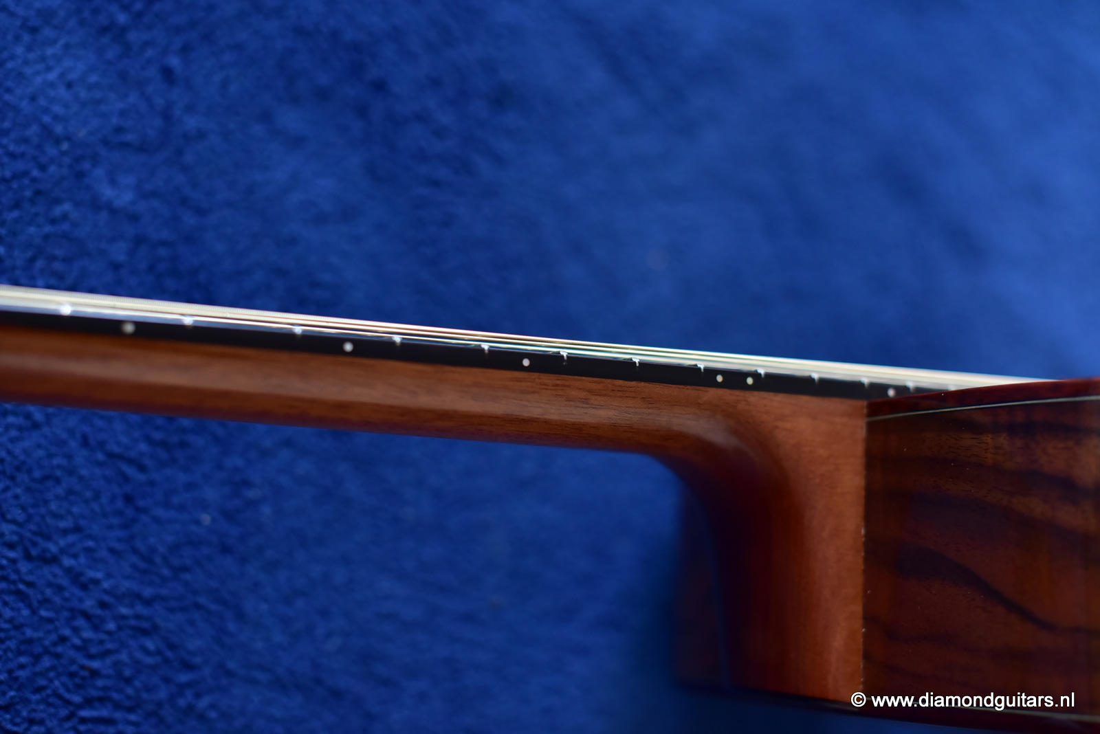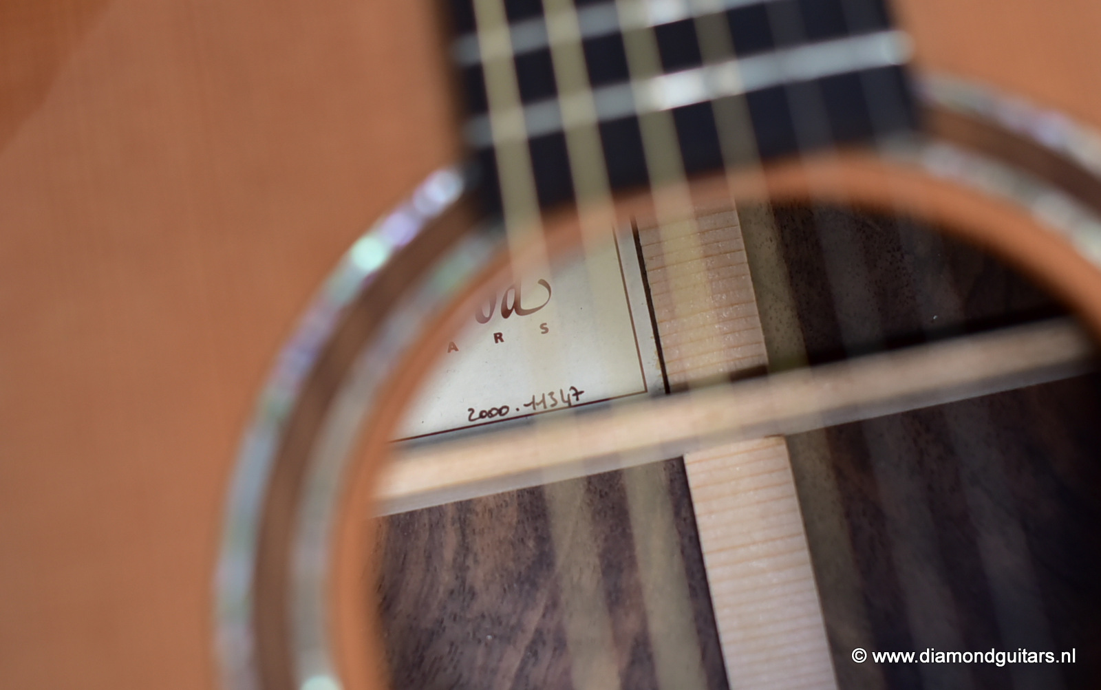 This rare Lakewood M-24 Custom Millenium is not only very pretty but a most of all a fantastic tone machine. Very easy to play too with its 45mm nut width, medium thin neck, low action en comfortable OM size-ish body. Cool inlay work and bindings. Abalone purflings and ultra thin Nitro Cellulose coating complete this beaty. Lakewood Guitars are build in Giessen near Frankfurt since 1986. Check out the YouTube vid about the company. The original retail prices for this beauty is 4.950 Euro.