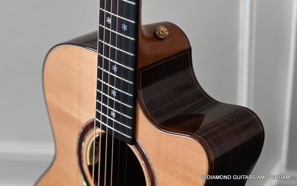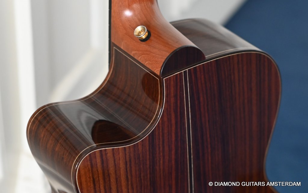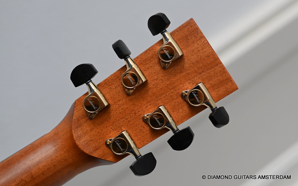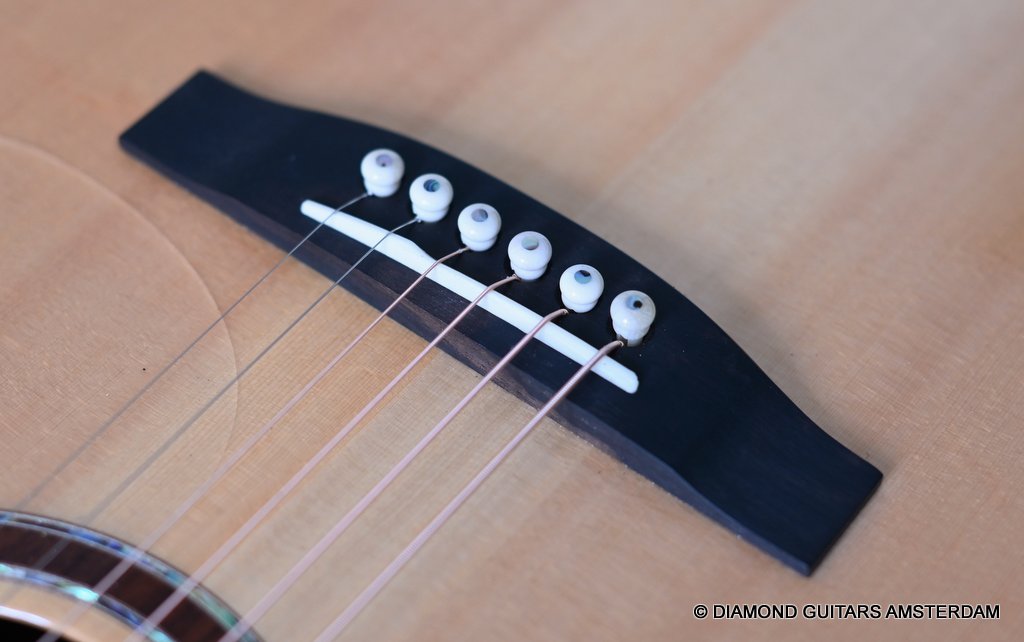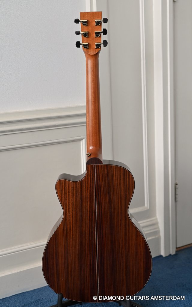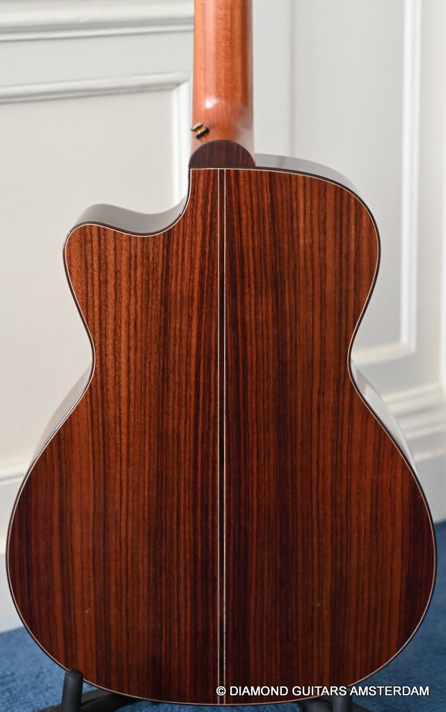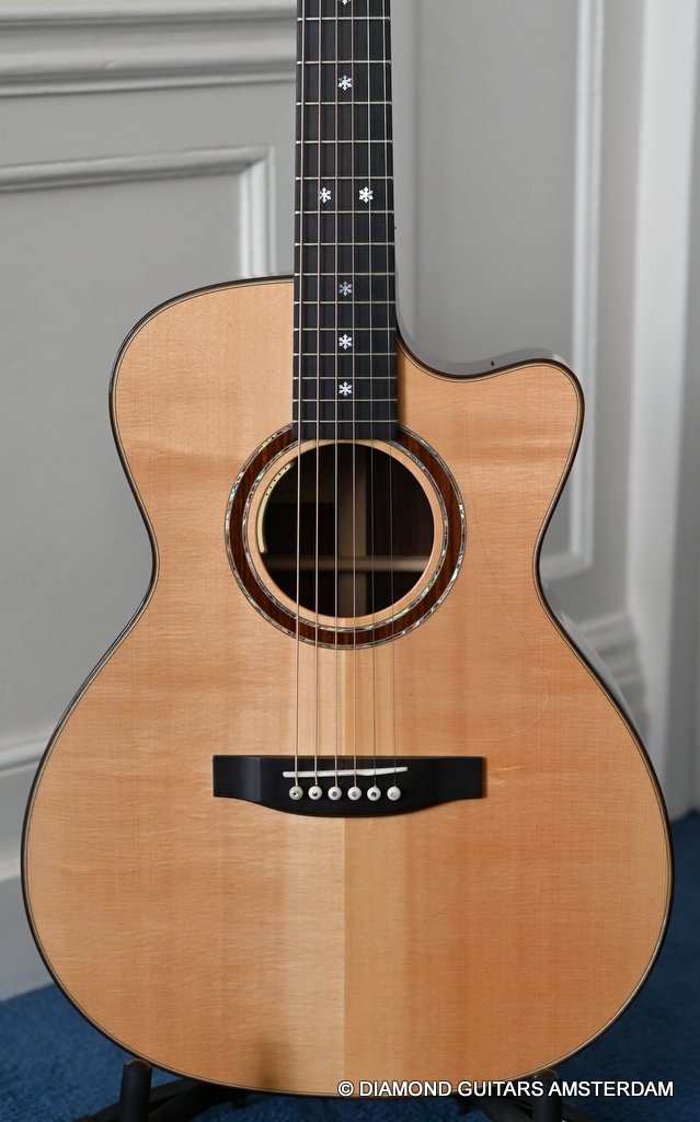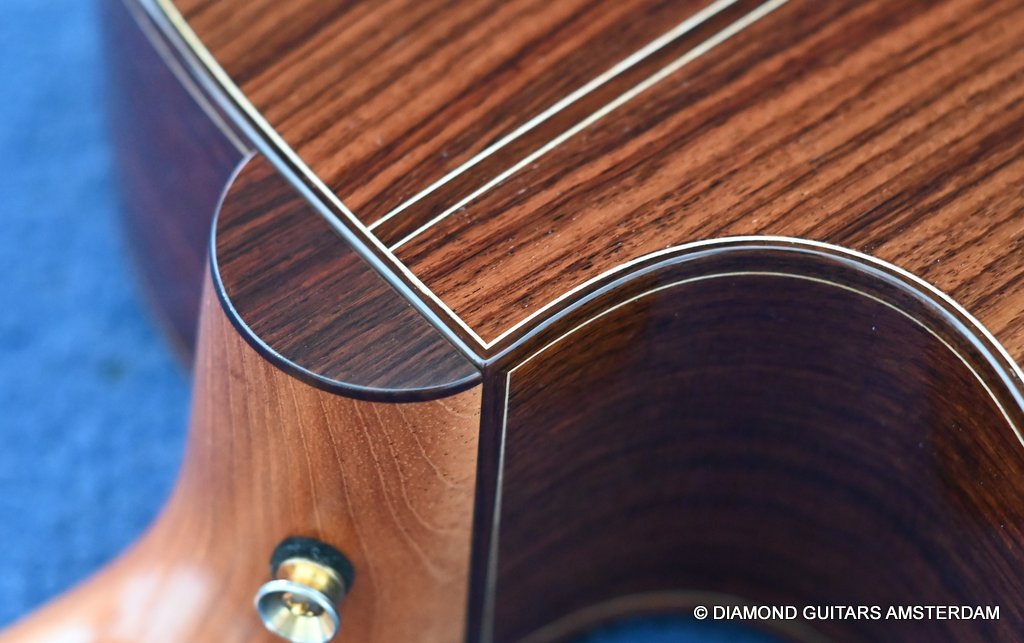 Acoustically this instrument is a dream. Martin Seelinger and his Lakewood crew know how to achieve great tone. And how to choose tonewood. Just take a look at the AAA graded European Spruce top. Combined with Indian Rosewood this is the classic combination that works well delivering an ideal mix of tonal flavor. She is in excellent condition with only some minor play marks and a tiny ding in the back binding. Superb guitar! Listen to a sound impression here: