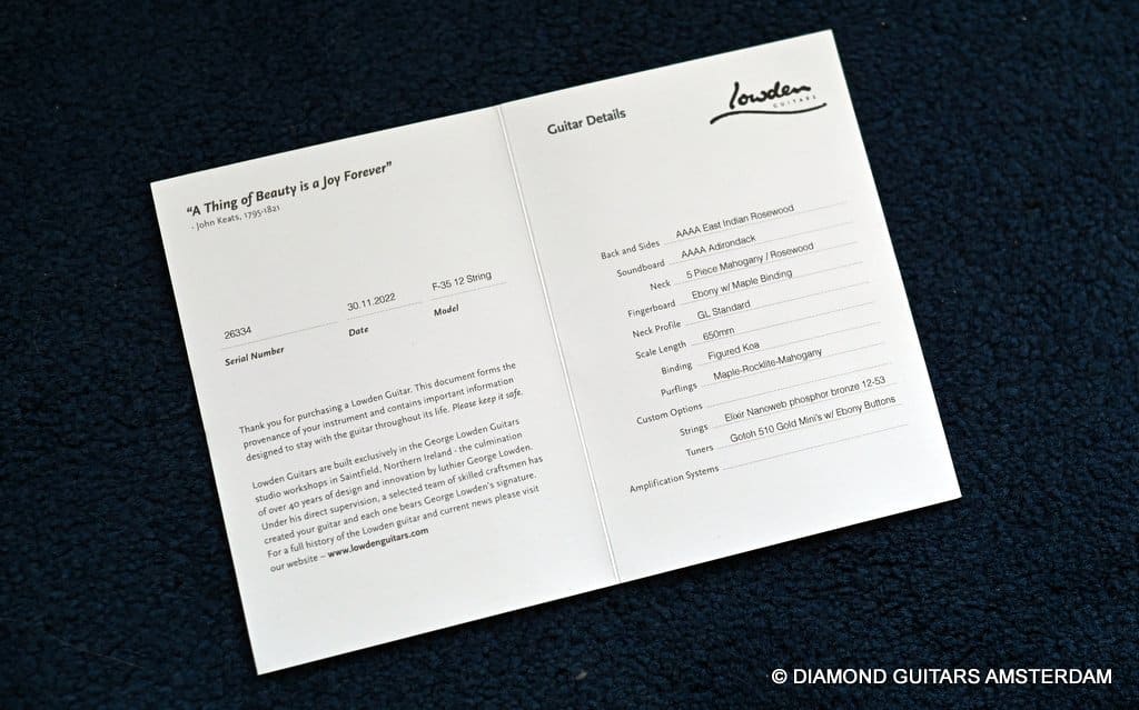 - Lowden Limited lifetime warranty.