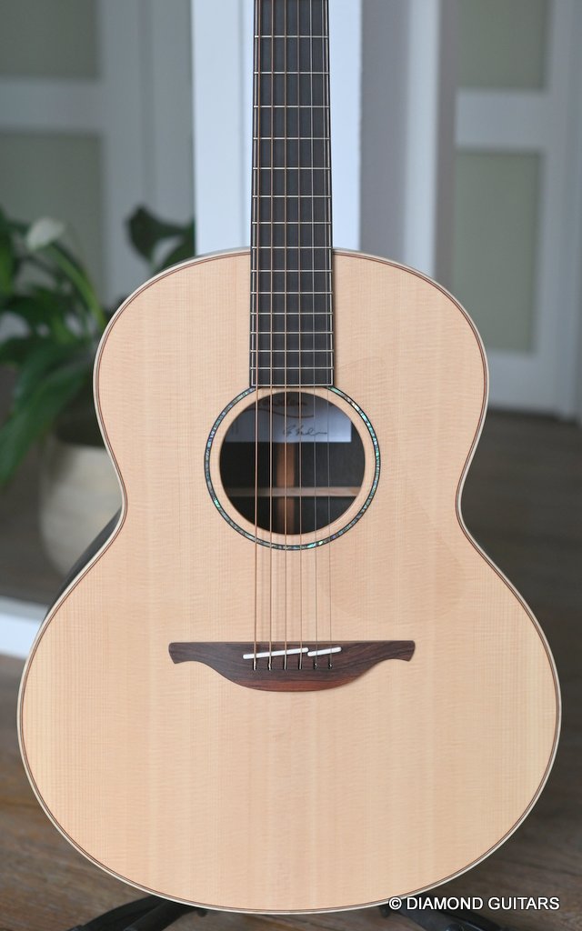 The tonal characteristics of Lutz Spruce sit between those of Sitka and Adirondack. It’s more responsive and sensitive than Sitka and has more headroom and richer overtones and can handle aggressive playing. Compared to Adirondcak it has more warmth. If you’re seeking a guitar that isn’t just an instrument but an heirloom that carries the soul of ancient forests and the voice of modern Irish luthiery this is you ultimate choice. She tells stories with every note. Also, she’s in near mint condition. Listen to a sound impression here: