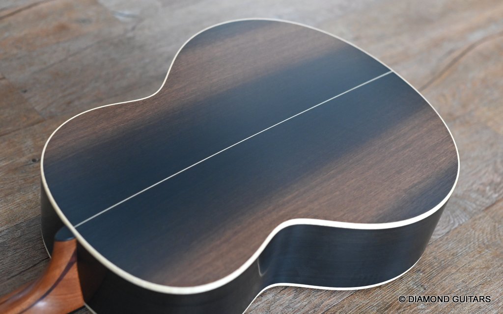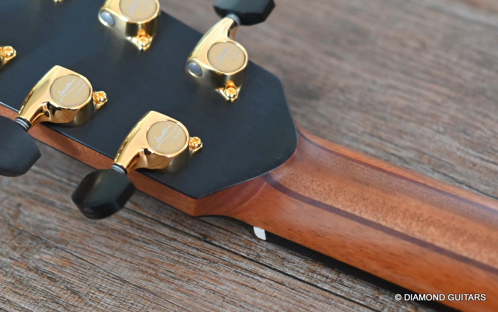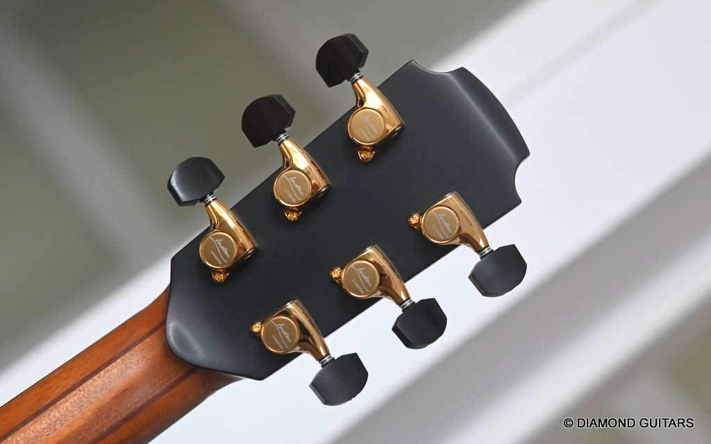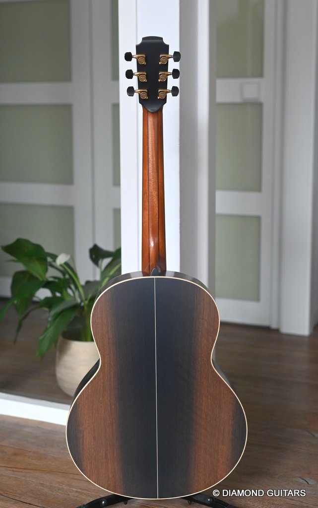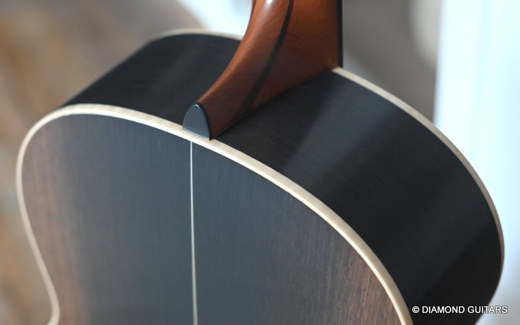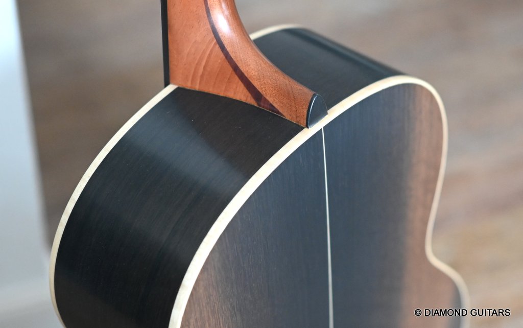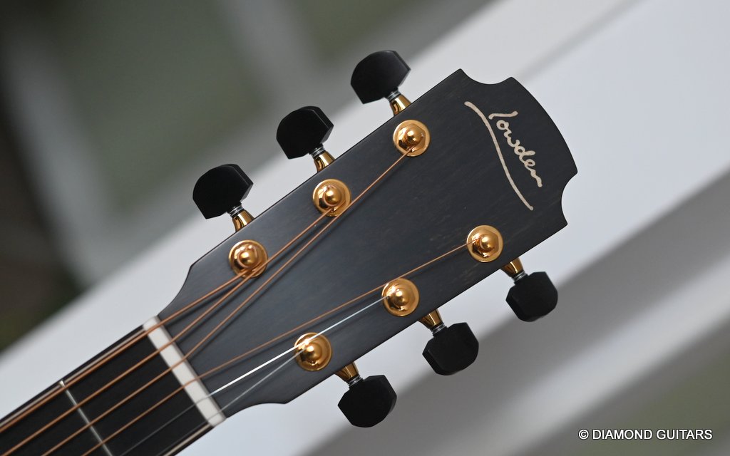 Wonderful Lowden F35 Bog Oak – Lutz Spruce build with ancient Bog Oak back and sides paired with an AAAA Lutz Spruce soundboard. The Bog Oak itself has been carbon dated to an astonishing 5300 years old.