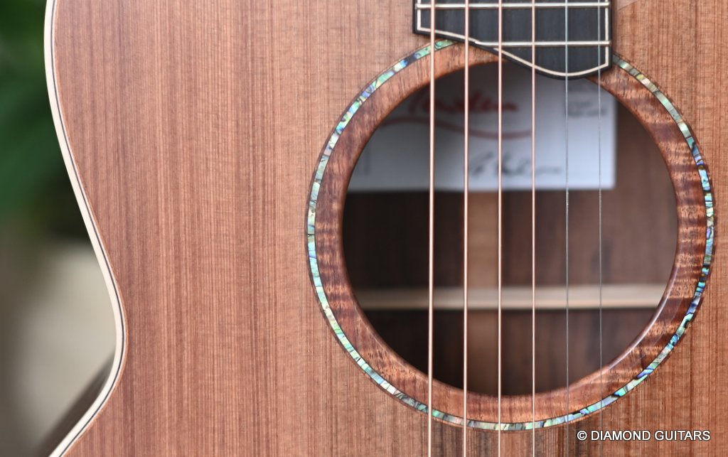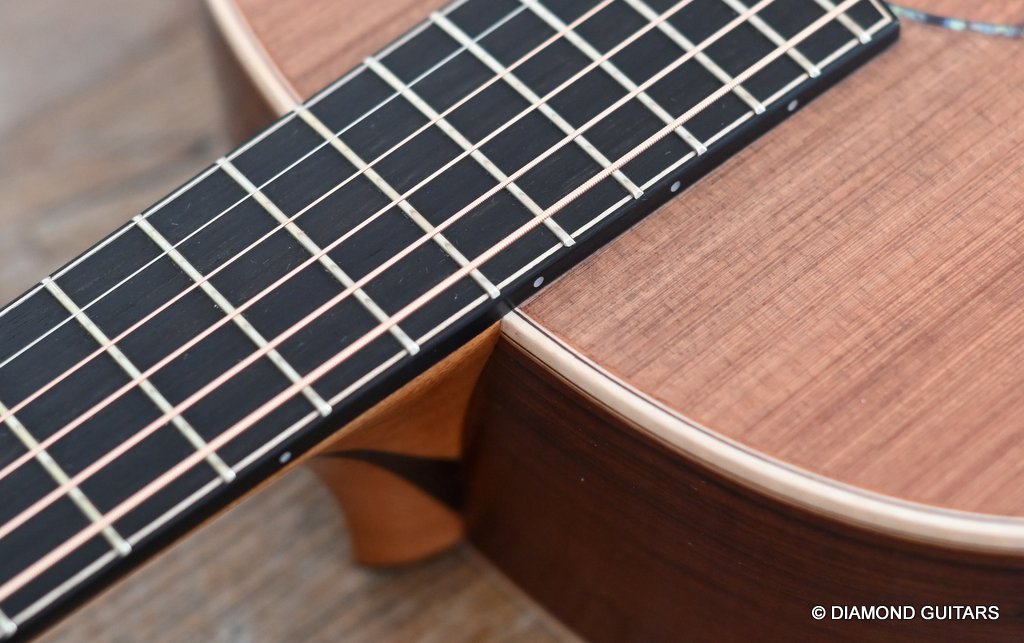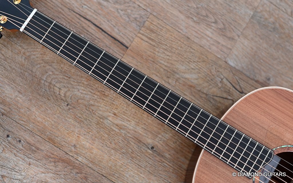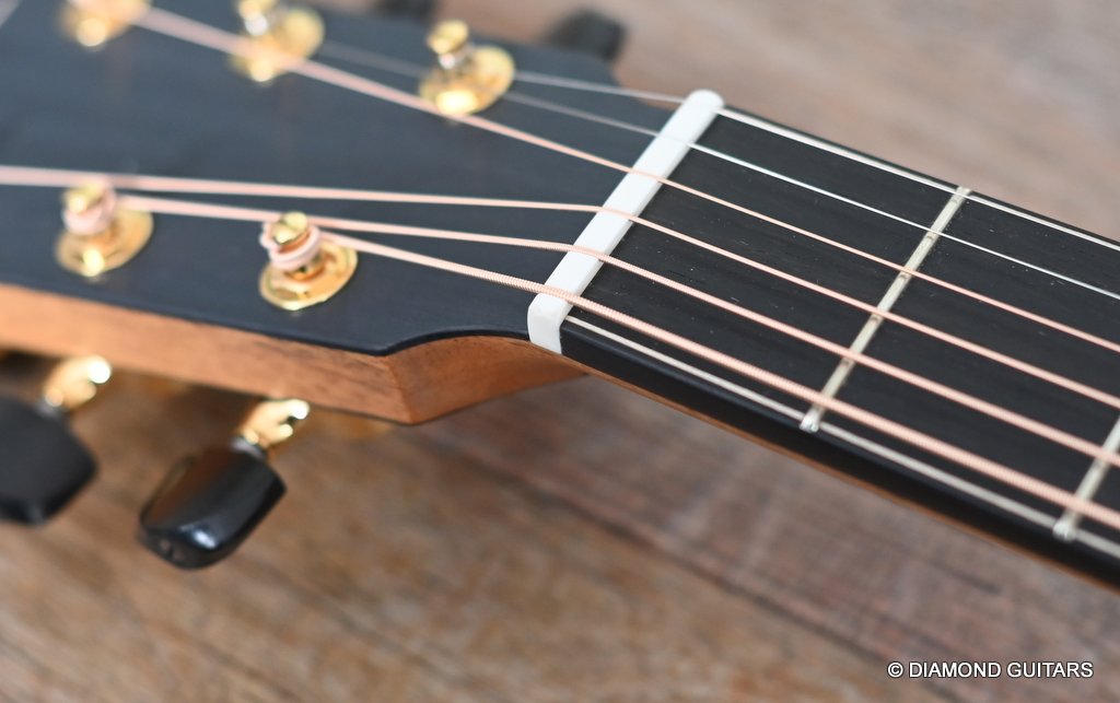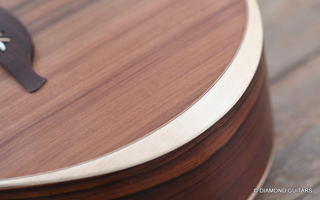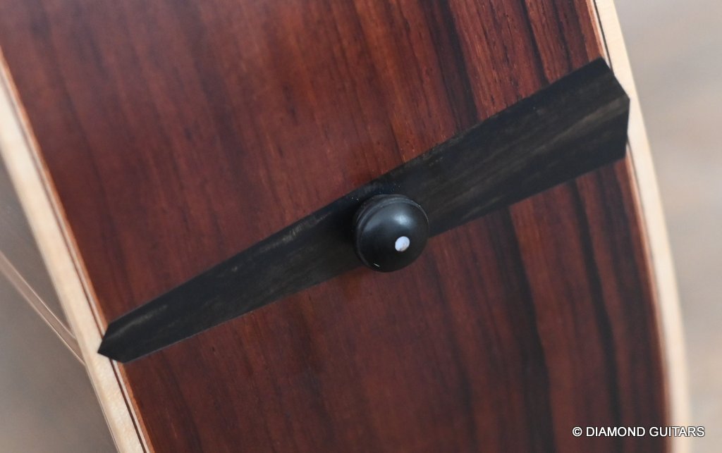 The classy figured Sinker Redwood gives her a classy look. The top is made from Mastergrade Sinker Redwood. These tops typically display a rich optical spectrum as the result of colors uniquely imparted from silt and the mineral-rich water. The age and size of these trees translates into a tight grain with nice cross-grain stiffness and offers a fairly bold response, with a brilliance complemented by warm overtones similar to Cedar but with extra brightness and headroom. Sinker Redwood trees originate from California and are often 1000 to 2000-year-old. These trees are only used when they have fallen naturally. The ‘Sinker’ designations tells you it’s been hidden under the mus on the banks of the Californian rivers for at least 100 year. Combined with the mastergrade Rosewood set, she gives you an instrument that excels in every way.