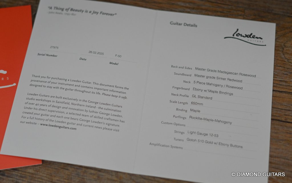 - Lowden Limited lifetime warranty