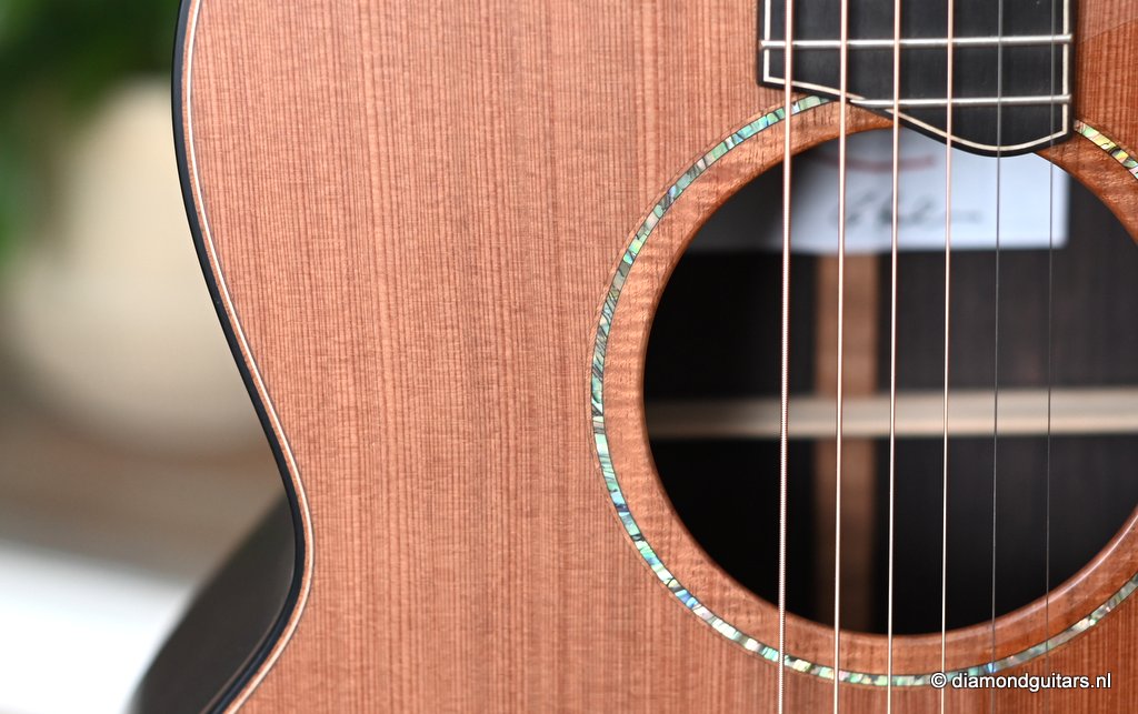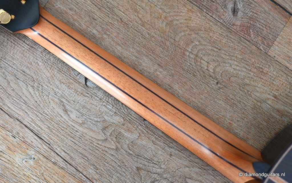 Sinker Redwood is known for its good balance from bass to mids to trebles. Click the YouTube link to hear George Lowden’s words on this model. The sound of Sinker Redwood is ‘complex’ because of the richness of its overtones. Pluck a string in a quiet room and listen carefully. It is as if a choir shows up and is singing along. It has rich and strong overtones similar to Western Red Cedar and crisper, punchy treble frequencies reminiscent of Spruce. Because of its light weight, this magnificent tonewood is very responsive. Check out Youngso Kim in this YouTube video where he drives this model to impressive heights. Sublime player, ditto guitar!