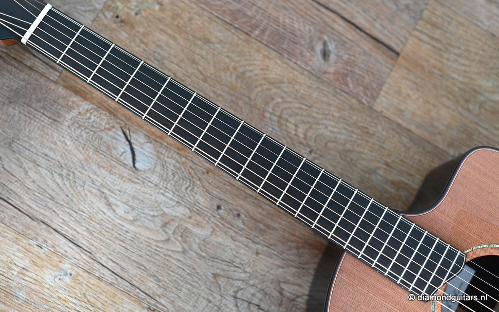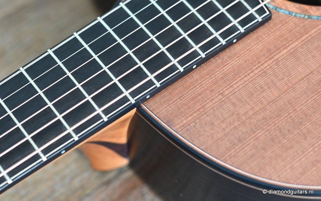 This Lowden F50c African Blackwood – Sinker Redwood is built with mastergrade tonewoods. African Blackwood is an outstanding tonewood. It has long been recognized by classical guitar builders as the “holy grail” of tonewood. With a strong responsive tap tone that surpasses even Brazilian Rosewood, it contributes great volume, power, and brilliance to this phenomenal guitar. Because of its structural stability, it provides an incredibly strong basis for any top and provides clarity and sustain. George started using this powerful wood about five years ago and the combination with any top is superb. Combined this wood with Sinker Redwood and you get magical notes all over the fretboard with a superb sustain. Very well-balanced, gentile, and responsive