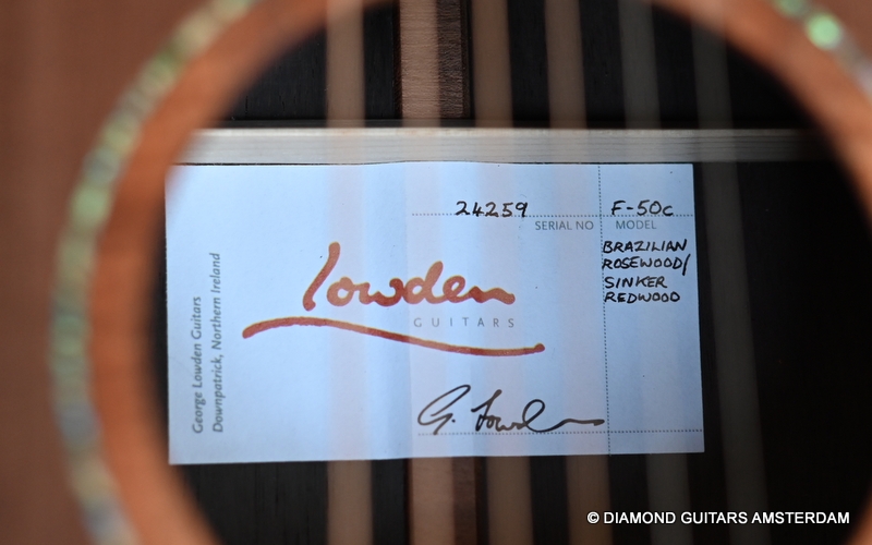Awesome full option Lowden F50c Brazilian Rosewood and Sinker Redwood. A Brazilian Lowden is the crème de la crème tonemachine one can have build by the Lowden team. She comes with a comfortable soundbox bevel and delivers oh so sweet notes all over the fretboard!