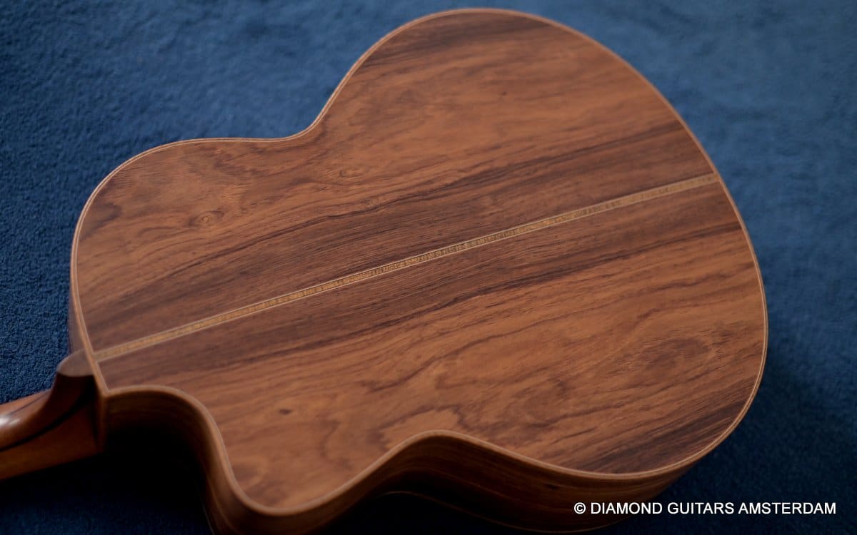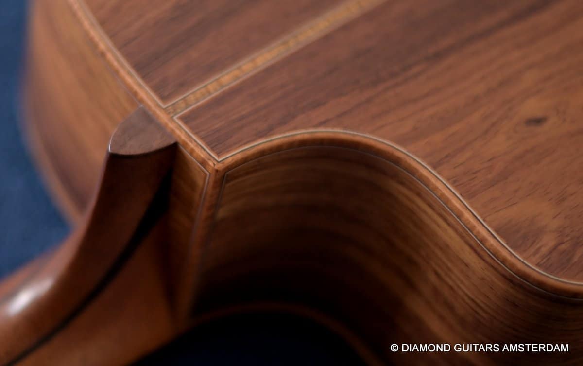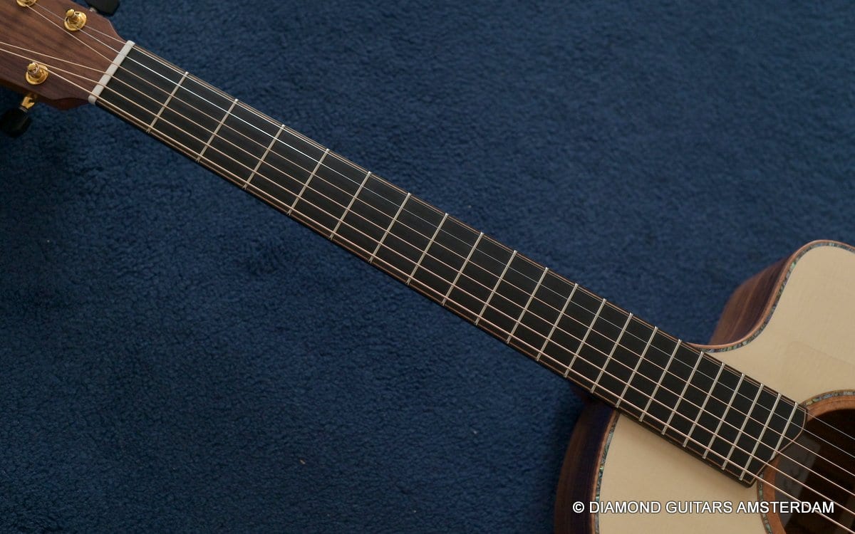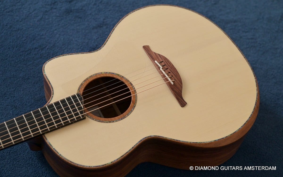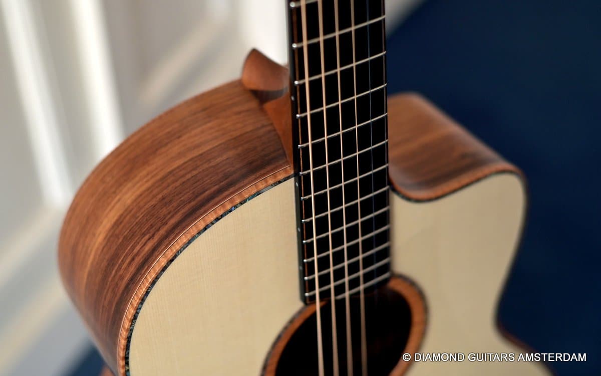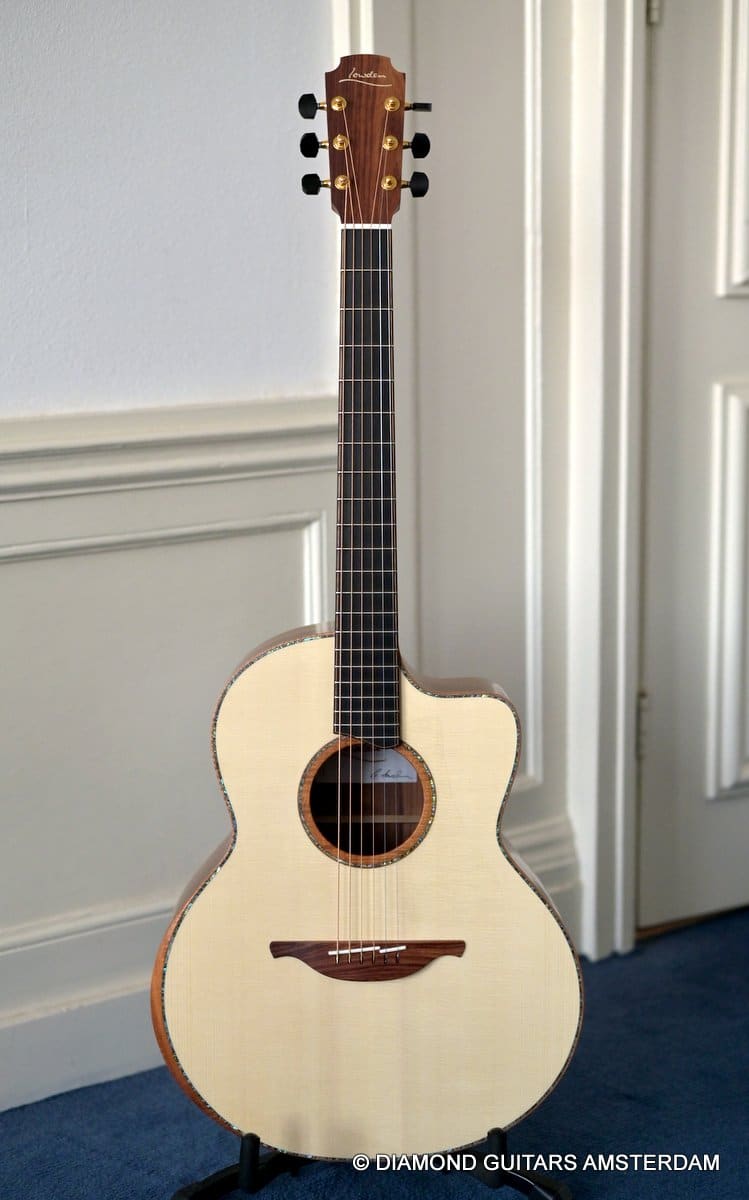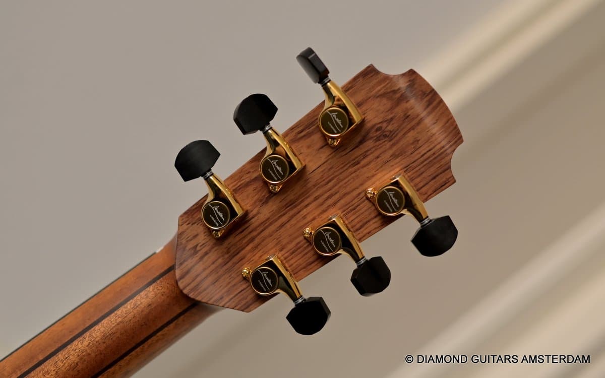 This Lowden F50c Winter Limited 2021 is built with mastergrade tonewoods. The Sinker Honduran Rosewood is chocolate colored and with beautiful figuring. Hand-picked by George Lowden and thus chooses the best quality. The volume, the complexity of the tone, the overtones and clarity hit you immediately! She is an instant responder to light finger touch, including fantastic overtones. Superb clarity of the treble notes. After you hit the bass strings and move up to the trebles, you are taken by the fullness of the notes. Brilliant guitar!