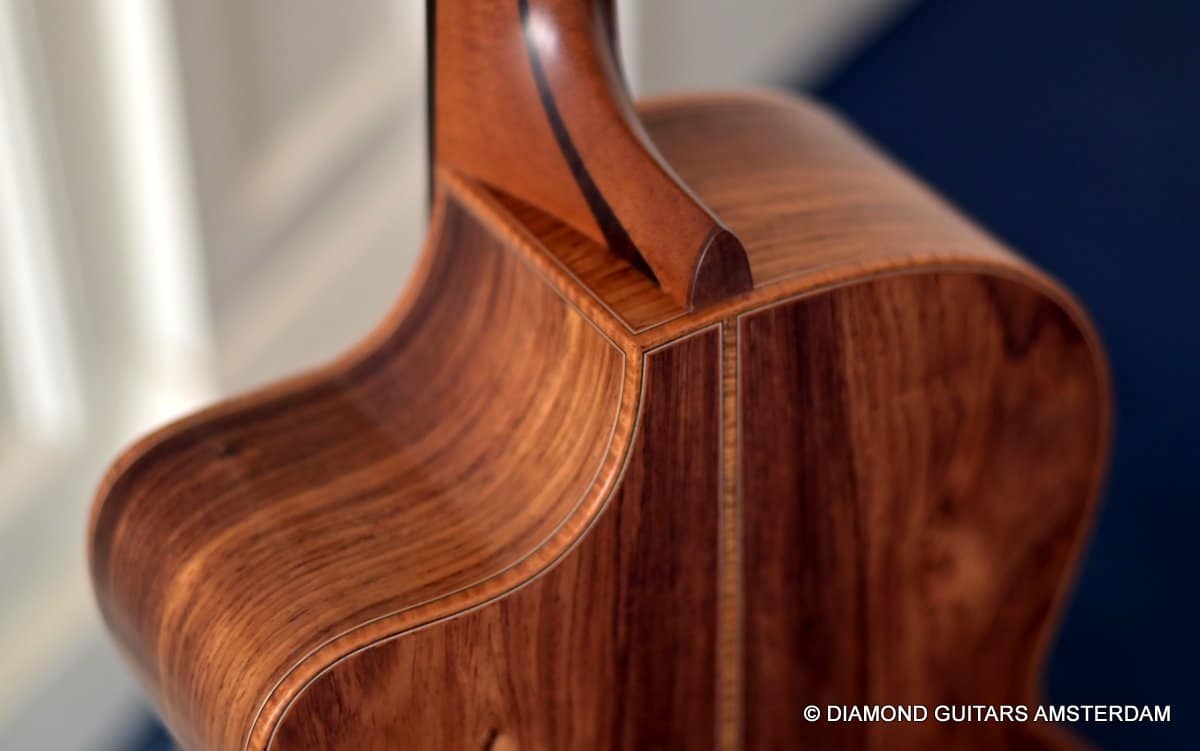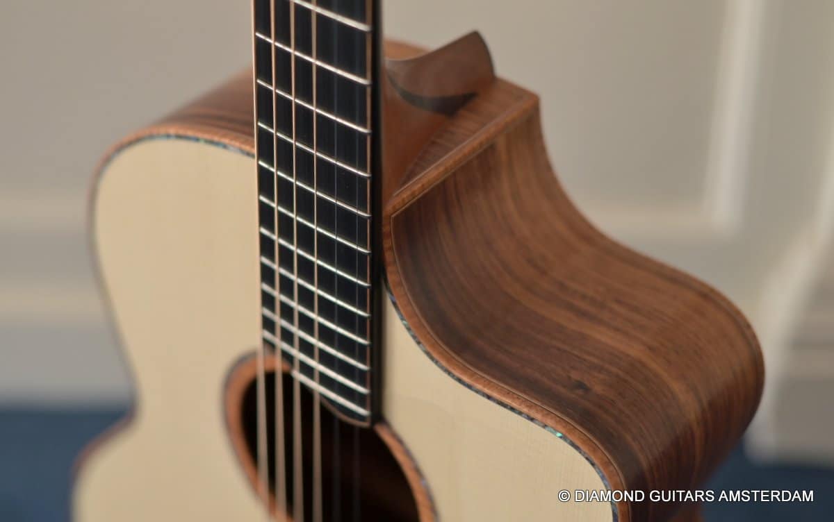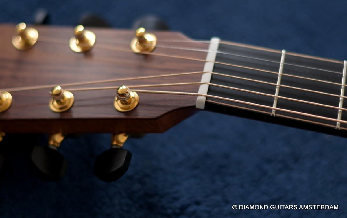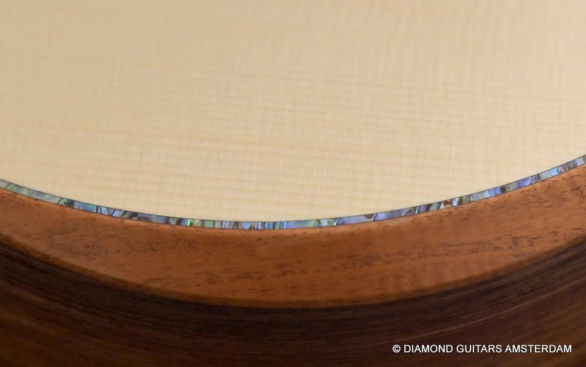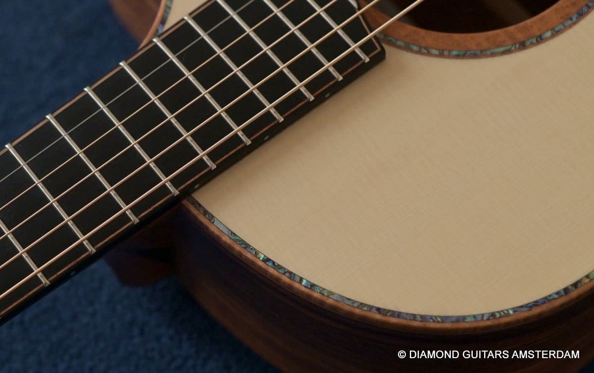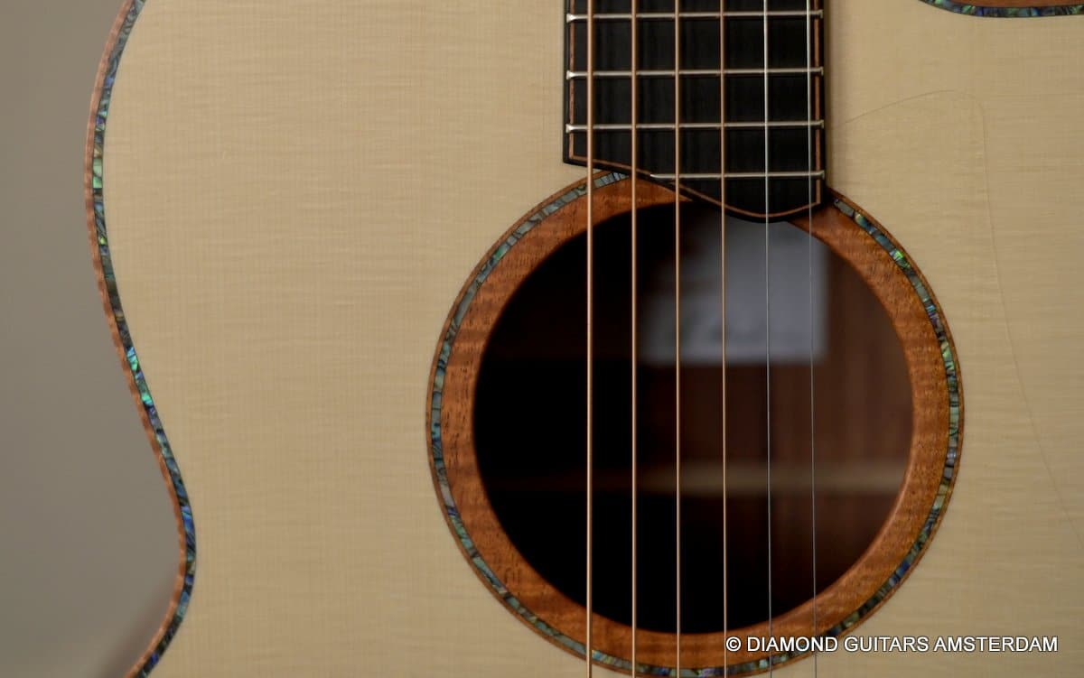 This Lowden F50c Winter Limited 2021 is built with mastergrade tonewoods. The Sinker Honduran Rosewood is chocolate colored and with beautiful figuring. Hand-picked by George Lowden and thus chooses the best quality. The volume, the complexity of the tone, the overtones and clarity hit you immediately! She is an instant responder to light finger touch, including fantastic overtones. Superb clarity of the treble notes. After you hit the bass strings and move up to the trebles, you are taken by the fullness of the notes. Brilliant guitar!