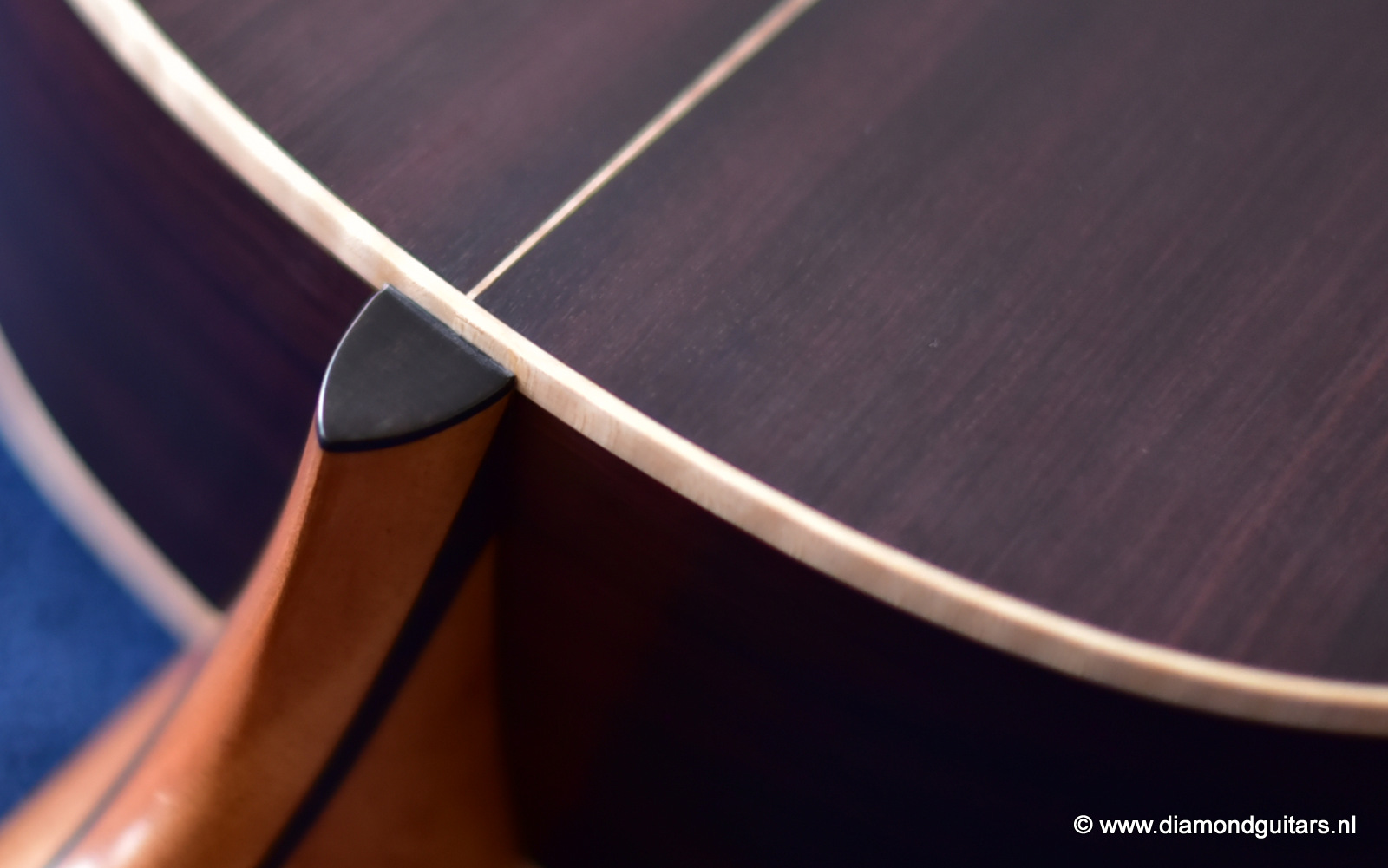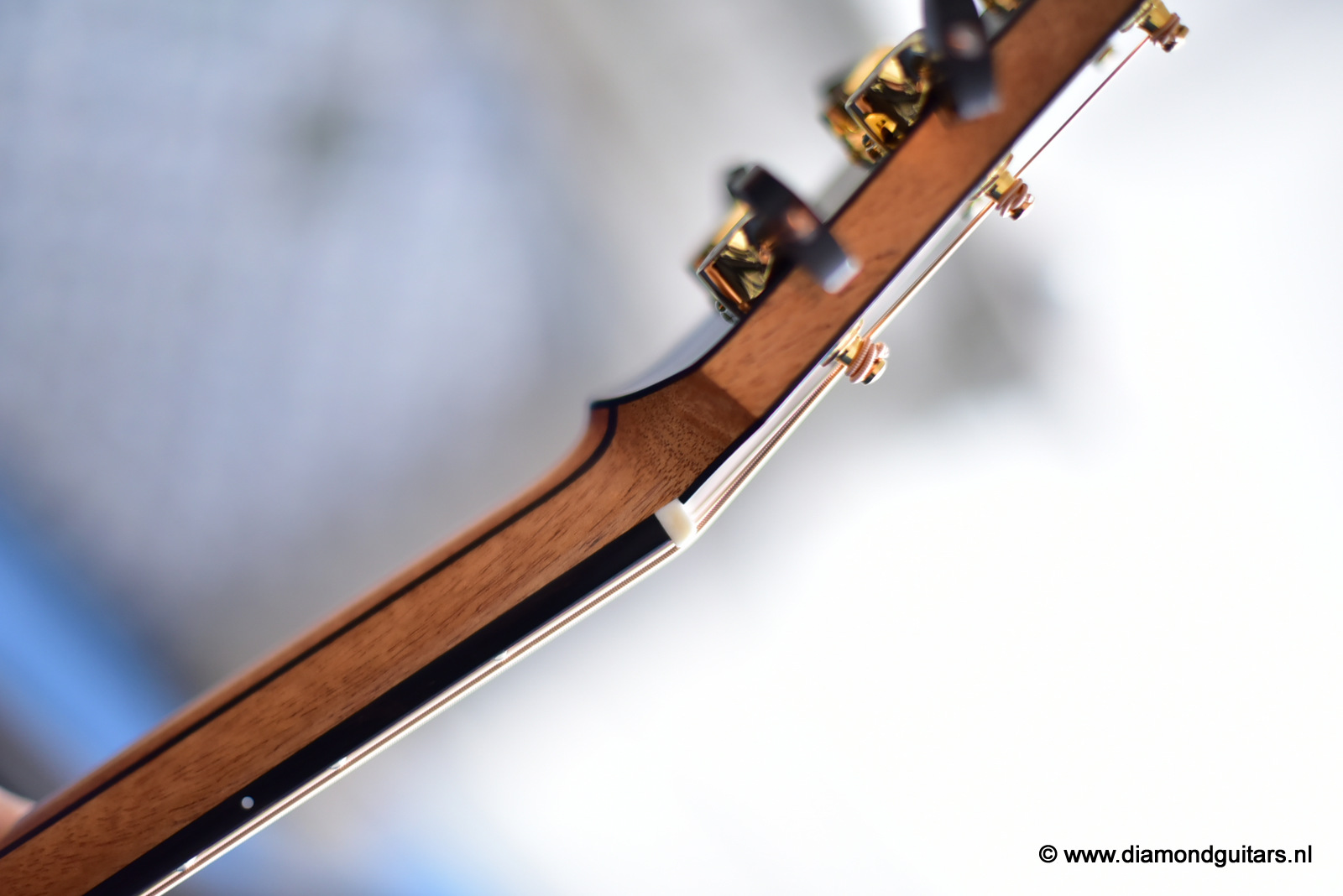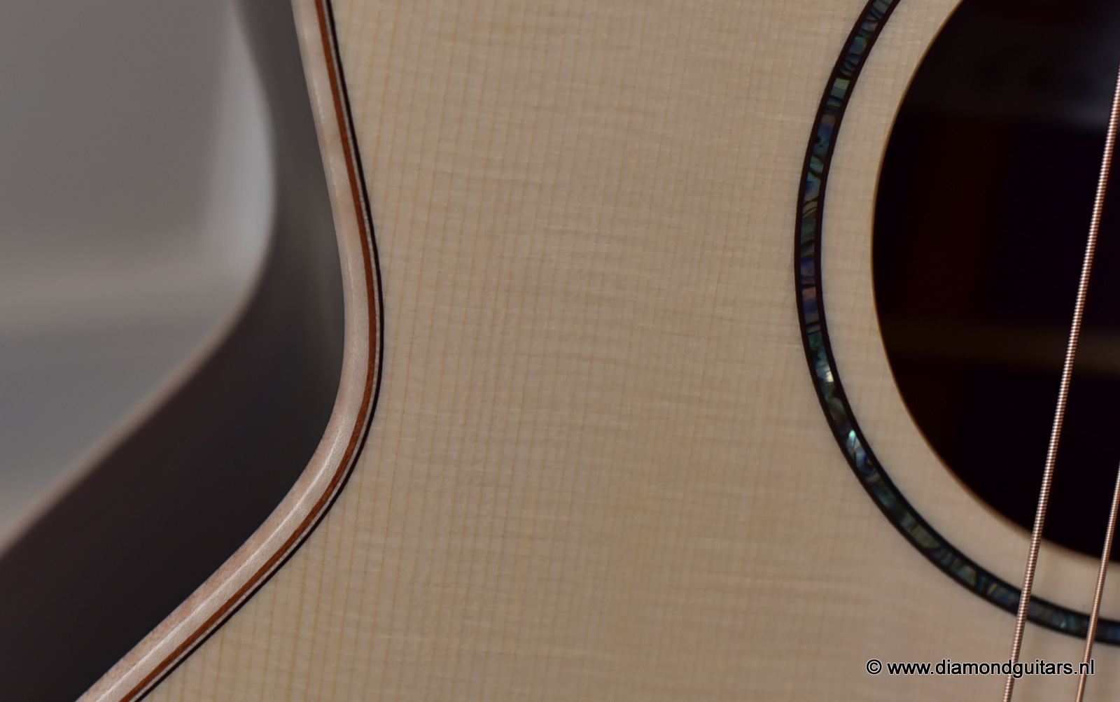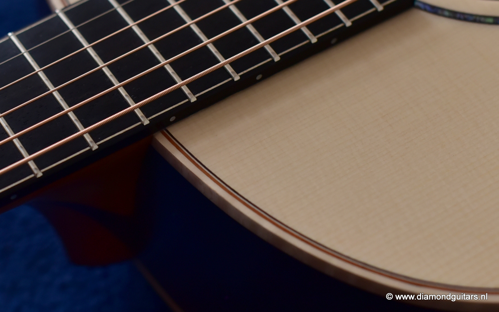 This Lowden FM35 has that special, delicate voice by the AAAA Alpine Spruce top. Her soundbox is a tad smaller (105 mm) than the standard F model (120 mm) and comes with a narrow neck (43.5 mm). This neck gives a more electric guitar feel to the left hand. Very easy to play and when one switches from a Les Paul to this babe it just goes natural. Fun to play with delicious tone and lots over overtones and complexity.