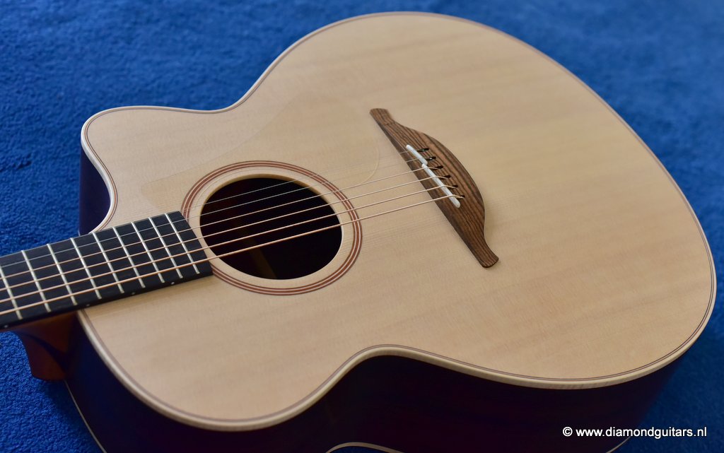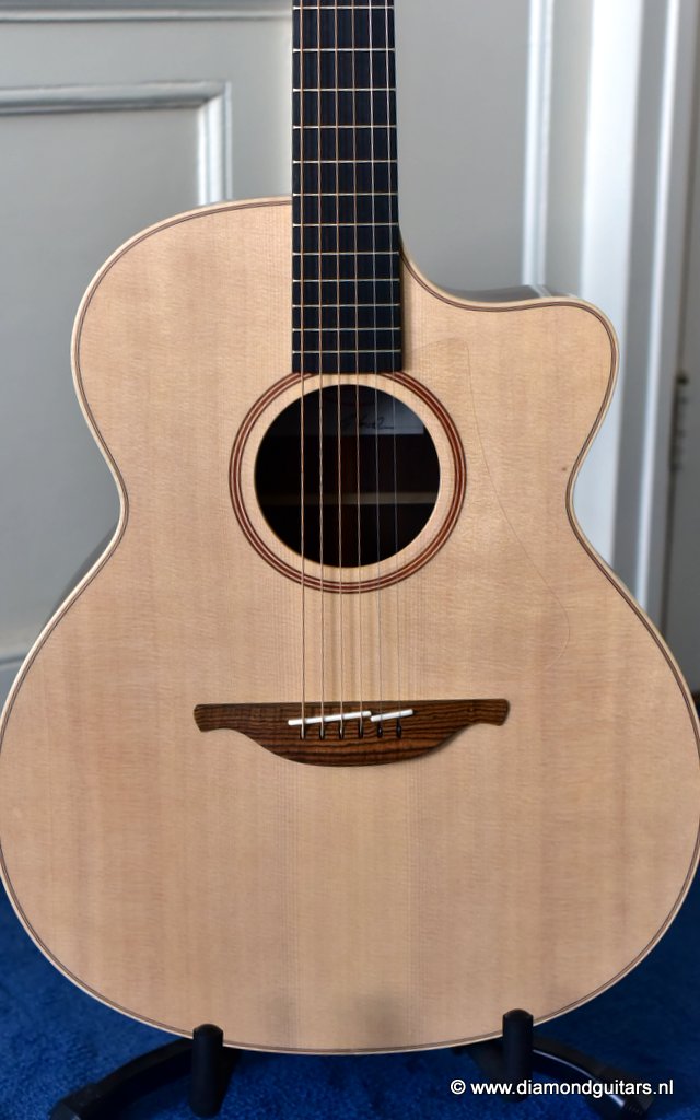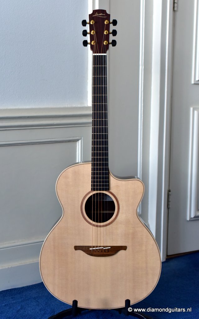 This Lowden O32c is George’s original Lowden body design, dating back to 1976. She has a sweet and clear tone with a deep and resonant voice. A timeless classic Lowden model at an excellent price point. Great for fingerstyle, picking and strumming. With the optional cutaway, easy access to the upper regions is also guaranteed. Hear and see George talk about this model HERE and listen to the sound impression.