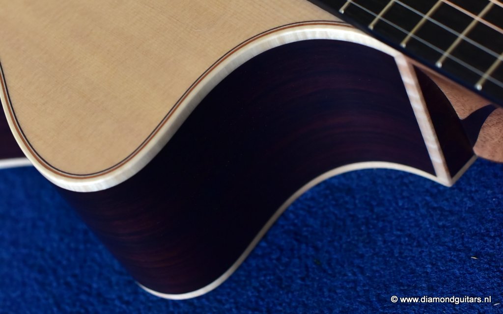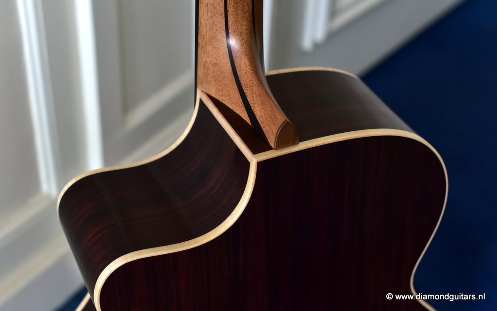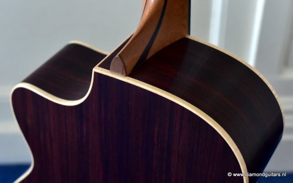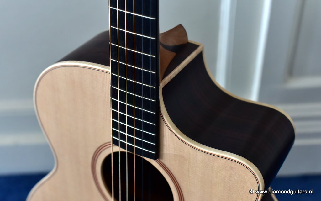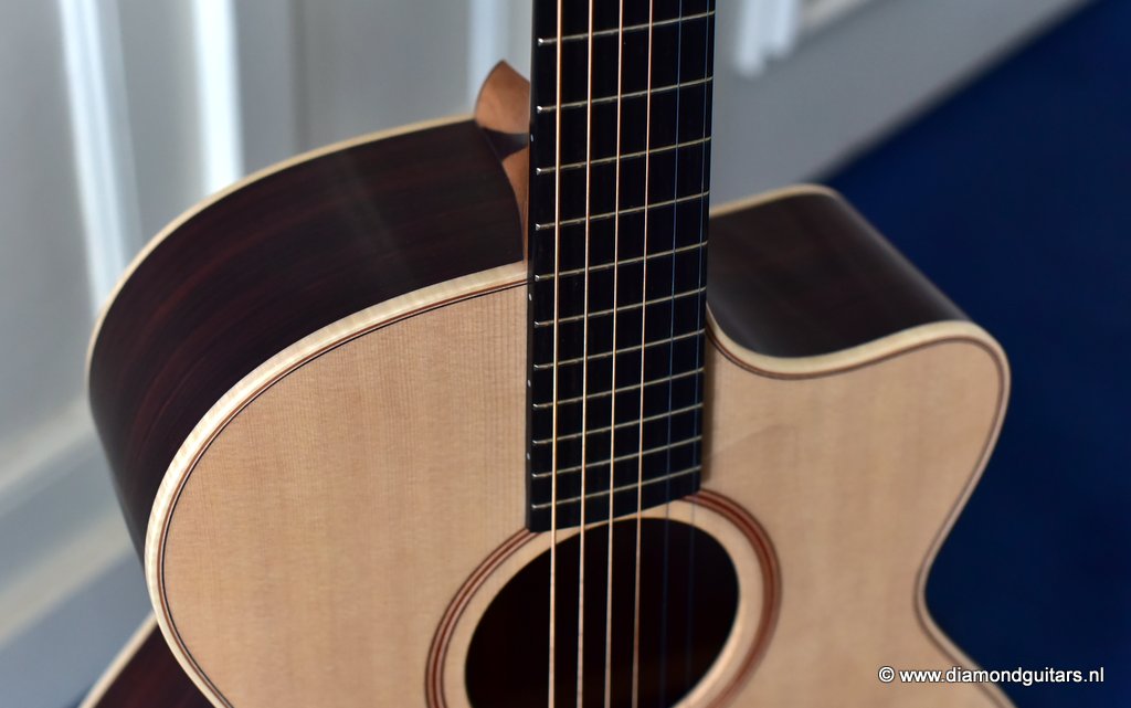 A Lowden O32c has her own distinctive voice and are definitely a class in their own next to the old Martins and Gibson’s. Clarity, sustain, articulation and definition are all what you will find in a George Lowden Guitar. This O32c has a gorgeous Sitka Spruce top with a nicely figured Indian Rosewood back and sides. The Lowden luthiers also added a cutaway for easy access to the superb sounding upper regions of the fretboard. Or like John Gomm says it: ‘She’s been my only company when I’ve been alone and desperate, she’s the place I go when I need to say something important.”